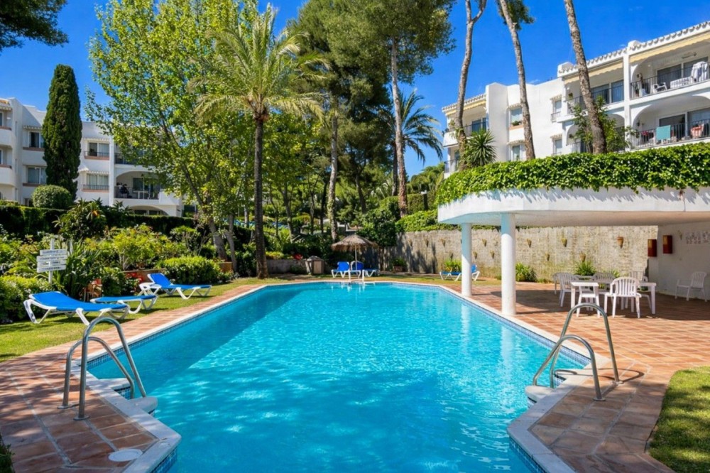 - Charming Ground Floor Studio Apartment in Miraflores with South-Facing Terrace and Garden This delightful ground floor studio apartment, built in 1983, is located in the highly sought-after area of Miraflores and offers a perfect blend of comfort, convenience and attractive surroundings. Set within well-maintained gardens, the property enjoys peaceful garden views and a quiet residential setting. The apartment has a built area of 66 m² and is thoughtfully laid out. It comprises an entrance hallway, bathroom and a practical kitchenette. The sleeping area features fitted wardrobes providing ample storage and benefits from air conditioning, while flowing naturally into the main living space. A charming split-level lounge and dining area on the lower level creates a bright and comfortable living environment, ideal for both relaxing and entertaining. Large patio doors allow plenty of natural light to fill the room and lead directly onto the private south-facing terrace, which has glass curtains and opens onto the communal gardens. Located just 500 metres from the beach, the apartment enjoys easy access to the vibrant Miraflores community and its excellent local amenities, making it an ideal holiday home, rental investment or comfortable year-round residence.