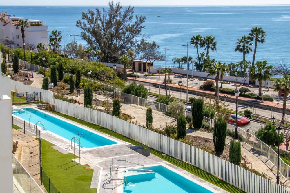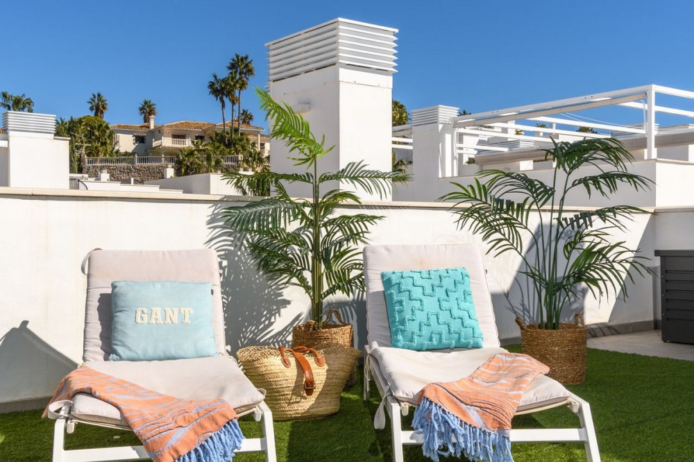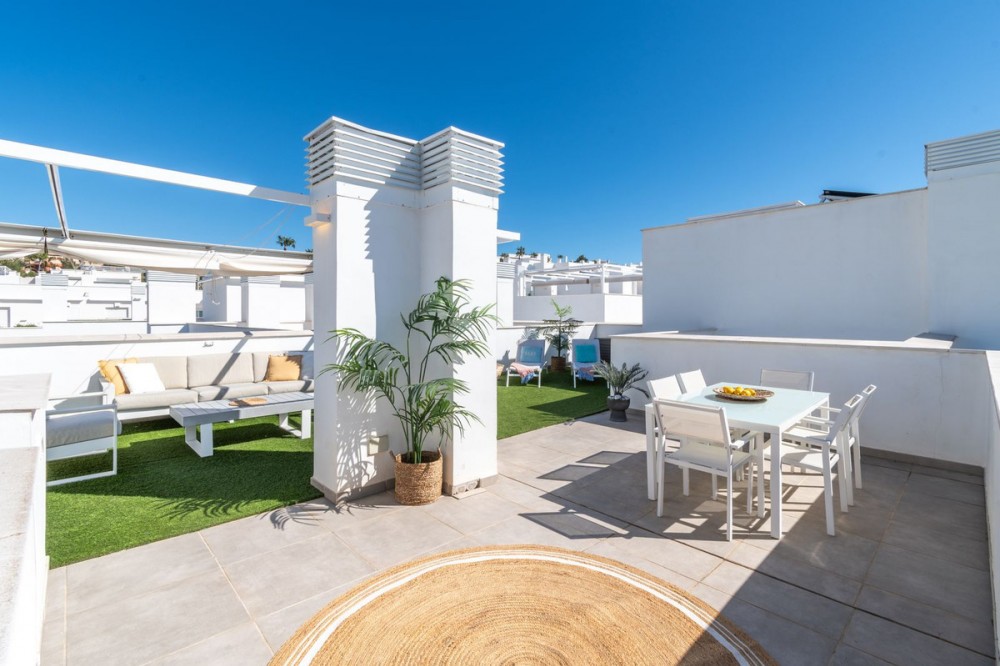 - Stunning Penthouse with private roof top terrace for sale in Benalmádena Torrequebrada ☀️ With touristic rental license and 3 bedrooms & 3 bathrooms this is a great option for your new (holiday)home or investment property. Open-plan kitchen connected to the living room. Spacious west facing afternoon/evening sun terrace with access from the living room and two bedrooms. Private rooftop terrace with sun all day with stairs leading up from the main terrace. Beautiful communal pool area and private parking space in the underground garage with elevator access directly to the apartments floor. Storage room. The location is excellent. Only 400 m from the beach, Yucas café-restaurant & casino. Lidl and some restaurants in 500 m. Trocadero restaurant in 1 km. Torremuelle train station – 2.1 km and Málaga Airport – 16 km. Contact us and let's view this great penthouse where you can enjoy the Mediterranean climate and views to the fullest.