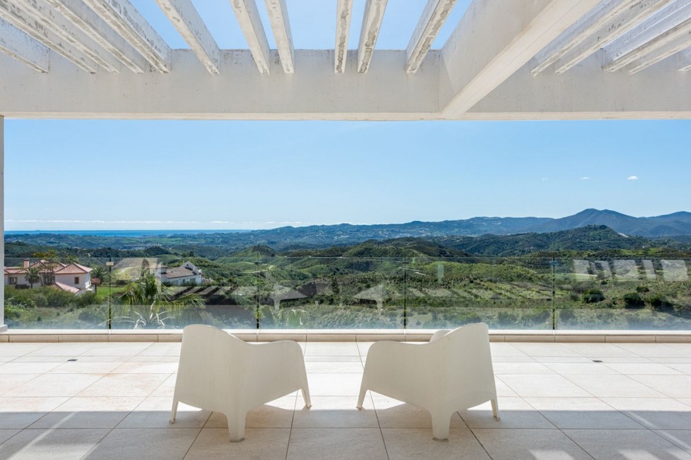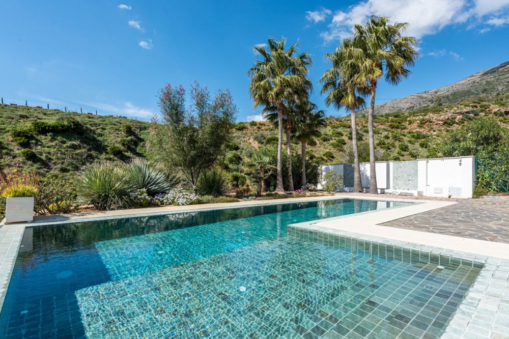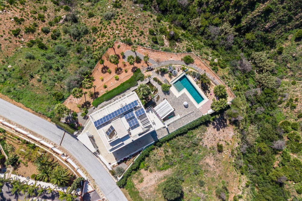 - Detached Villa in Prestigious Valtocado, Mijas – with Panoramic Views of the Mountains and the Mediterranean Discover this unique villa in the highly sought-after residential area of Valtocado – just minutes from the charming whitewashed village of Mijas Pueblo and the renowned golf courses of Alhaurín el Grande. This is a home that perfectly blends elegance, comfort, and an exceptional lifestyle. Set on a generous 1,718 m² plot, the villa welcomes you with a sense of harmony and exclusivity. A lush Japanese garden with a serene pond provides complete privacy and a peaceful retreat. Thanks to its privileged southwest orientation, the property enjoys spectacular sunsets and breathtaking views of both the mountains and the Mediterranean Sea. The outdoor area is designed for relaxation as well as entertaining, featuring a refreshing swimming pool, spacious terraces, a pergola, a fully equipped outdoor kitchen with barbecue, and a cozy lounge area. A charming wine cellar adds the perfect touch for memorable evenings with family and friends. On the entrance level, you will find 4 spacious bedrooms, all offering wonderful views of the surrounding landscape. Three of the bedrooms have direct access to the terrace, and there are 3 elegant bathrooms with underfloor heating, one of which is shared between two bedrooms. This level also includes a practical utility room with laundry facilities and access to the parking area, as well as a convenient lift connecting to the upper floor. The top floor is the heart of the villa, designed to maximize light and panoramic views. Here you are greeted by an impressive living room with soaring ceilings and an abundance of natural light, a modern open-plan kitchen that flows seamlessly into the dining area, and a large terrace from which to enjoy unforgettable sunsets. This level also features a guest bathroom and a staircase leading to the rooftop terrace, where the solar panels are located. The driveway offers a covered parking space for two cars, while an electric gate ensures both security and a grand entrance into the private grounds. Built with high-quality materials and carefully considered details, the villa provides both style and comfort. It is the perfect choice whether you are looking for a permanent residence or a luxurious holiday retreat. A truly exclusive home in a peaceful and natural setting – with close proximity to village life, golf courses, the mountains, and the coast. Contact us today for more information or to arrange your private viewing!