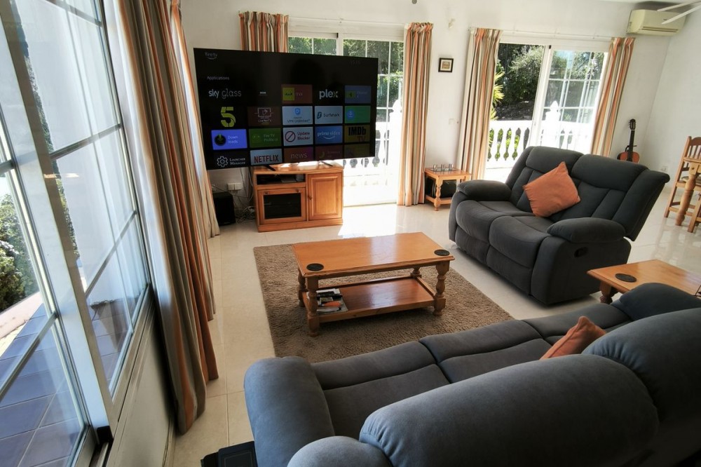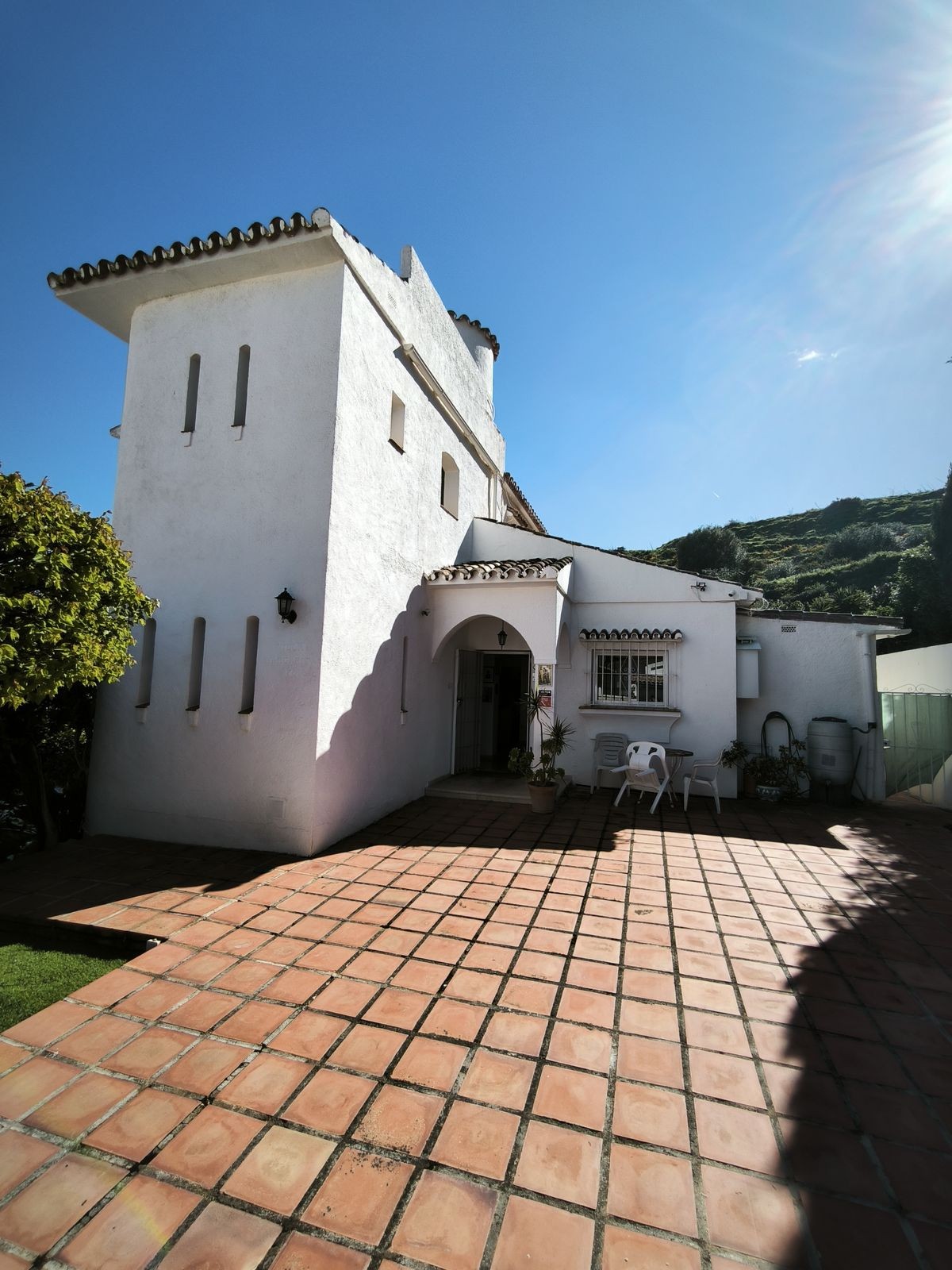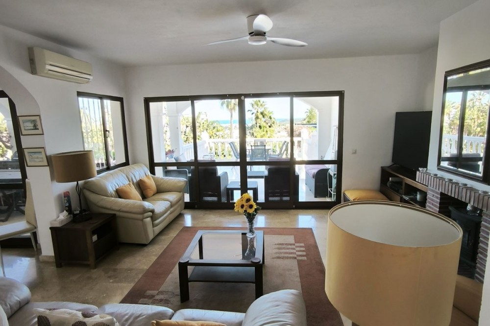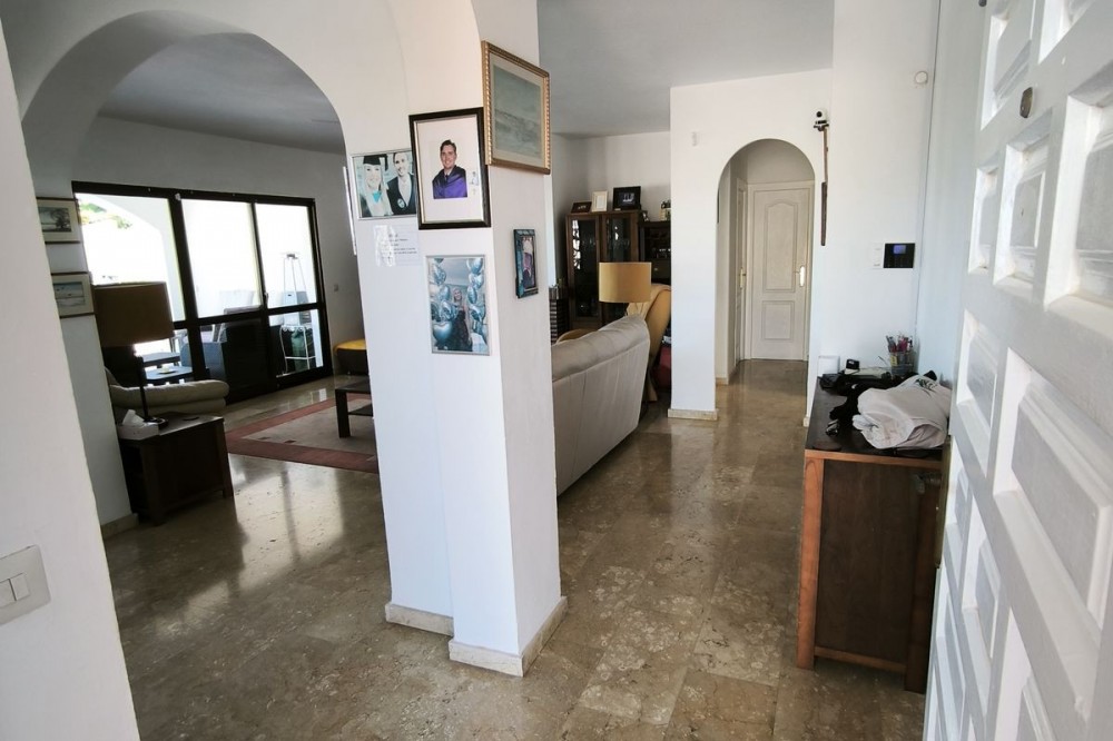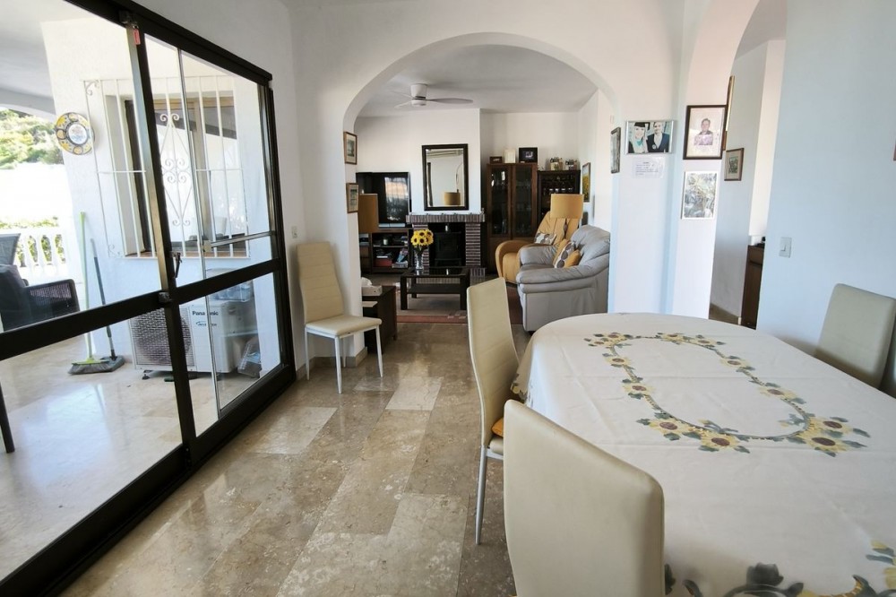 - Elegant Villa with Panoramic Sea, Mountain and Countryside Views in Cerros del Águila Set in the sought-after urbanisation of Cerros del Águila, this impressive villa combines space, privacy and stunning surroundings, with beautiful panoramic views of the Mediterranean Sea, the mountains and the open countryside. The property offers 5 generously sized bedrooms, with 3 bedrooms on the ground floor and 2 on the upper level, making it an ideal home for families or for those seeking generous guest accommodation. There are 3 well-appointed bathrooms, including 1 en-suite. On the main level, the villa features a modern kitchen that flows into a bright and spacious living room with direct access to a large terrace. This is the perfect setting for al fresco dining, entertaining guests, or simply relaxing while enjoying the breathtaking sea views. Upstairs, you will find a second expansive living area, currently used as a TV lounge and bar, offering a wonderful additional space for leisure and socialising. From here, there is access to a private terrace overlooking the beautiful garden and swimming pool, creating a tranquil and intimate retreat. The outdoor areas are equally impressive, with a large terrace surrounding the swimming pool, ideal for enjoying the Mediterranean lifestyle, whether sunbathing, dining outdoors or spending quality time with family and friends. The location is excellent, just 10 minutes from the beaches of Fuengirola and only 5 minutes from the newly opened Gran Parque de Mijas, a fantastic recreational area offering a wide variety of leisure activities for all ages. This is a wonderful opportunity to acquire a spacious and beautifully positioned villa in one of the area’s most desirable residential locations.