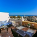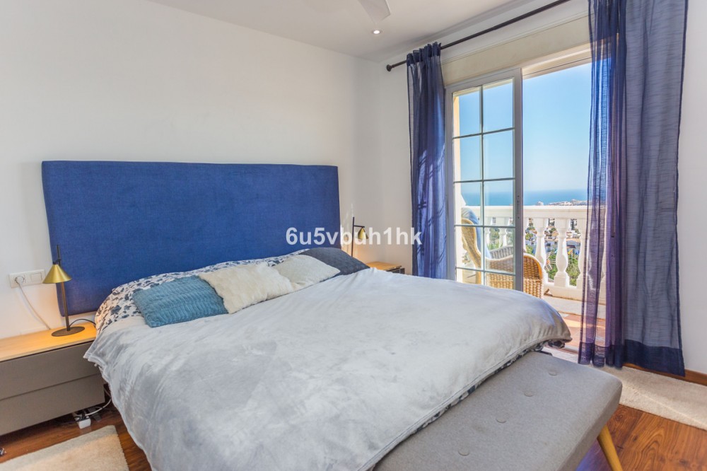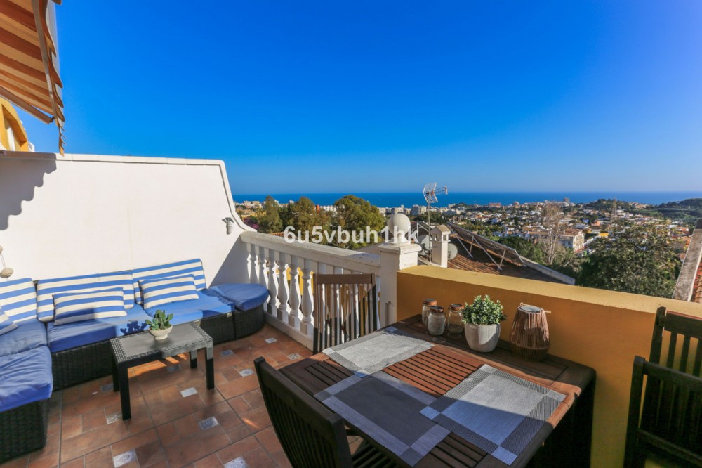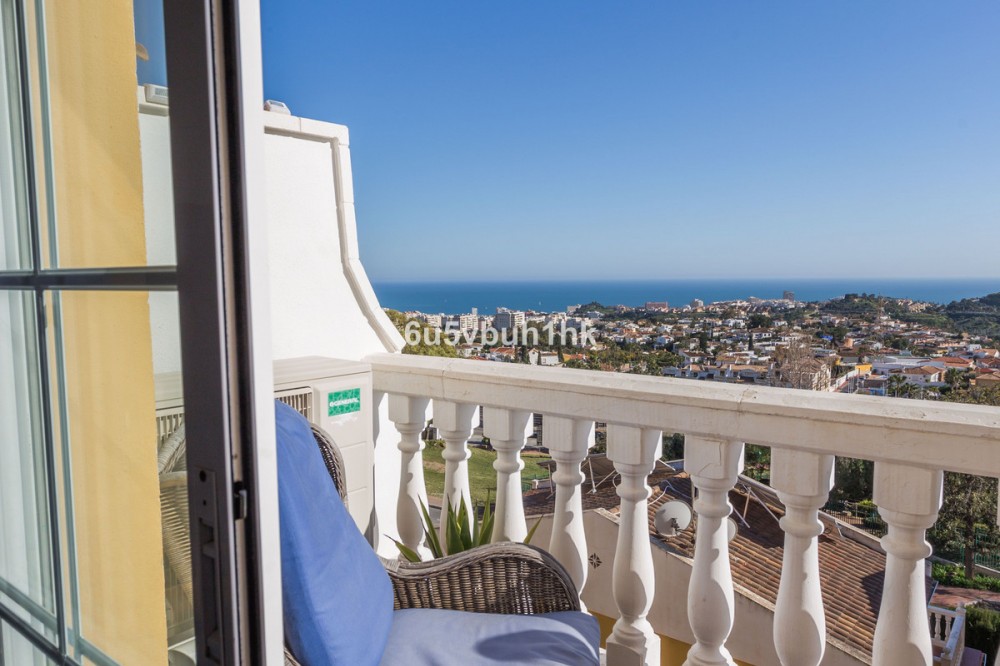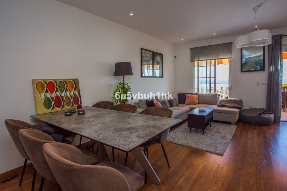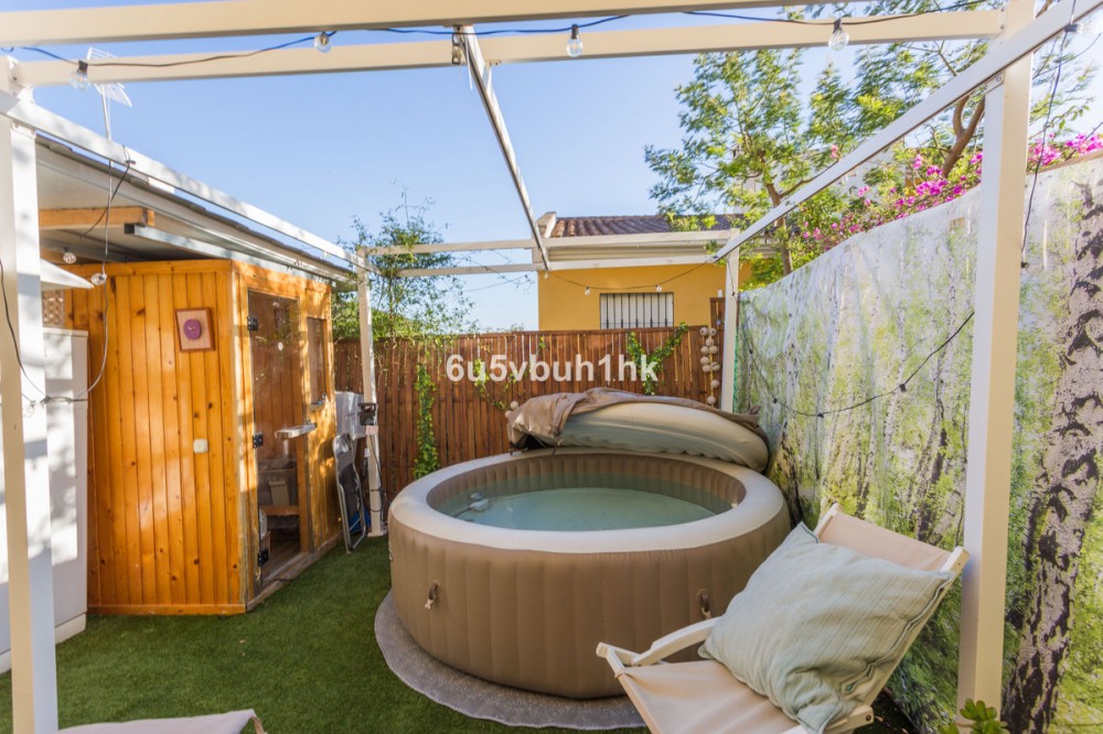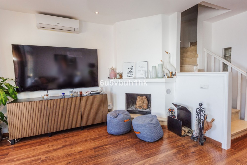 - Discover this beautifully renovated 4-bedroom townhouse next to Arroyo de la Miel in Benalmádena, located in one of the Costa del Sol’s most desirable elevated areas with stunning views over the Mediterranean. Set on a quiet, park-like avenue, the home offers both peaceful surroundings and excellent proximity to everyday amenities, including supermarkets, cafés, and restaurants nearby. The motorway can be reached by car in just a few minutes, and Málaga Airport is only about 15 minutes away. Entering from the street, you arrive at a spacious private front patio leading to the main floor. Here, an exceptionally large entrance hall opens into a stylish living space featuring a high-quality open-plan kitchen and dining area, a cozy living room with fireplace, and a wide balcony terrace with breathtaking panoramic views over the Mediterranean Sea and coastline. The property has been tastefully renovated with great attention to detail, featuring elegant flooring, modern kitchen fittings, and beautifully designed bathrooms that add a touch of everyday luxury. The upper floor offers three bright bedrooms, while the lower level features a private guest suite with bedroom and living area, opening directly onto a charming rear patio with jacuzzi and sauna, creating a perfect space for relaxation. The home includes three bathrooms and one guest toilet. The location also offers excellent lifestyle benefits, with sports parks, dog parks, and public transport nearby, making daily life easy while enjoying the vibrant atmosphere of Benalmádena and the Costa del Sol. A rare opportunity to own a fully renovated home with spectacular sea views in one of the area’s most sought-after residential locations.