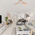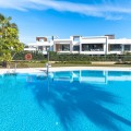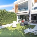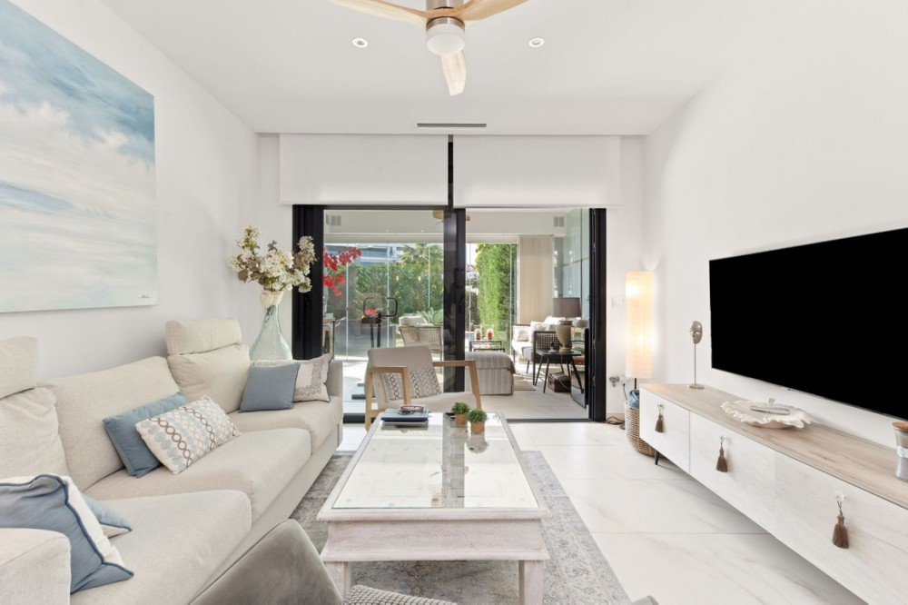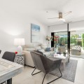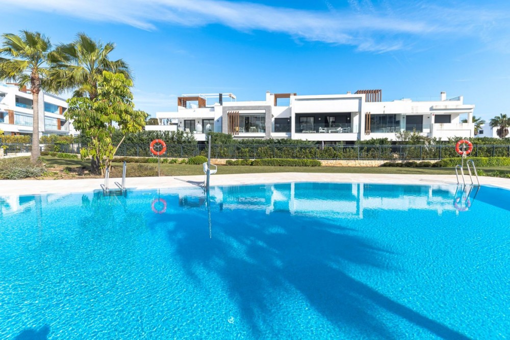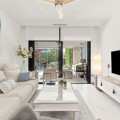 - Beautiful ground-floor apartment built in 2020, offered fully furnished and ready to move in — ideal both as a permanent residence or a holiday home. The property features a modern and functional open-plan layout, combining kitchen and living area. The fully equipped kitchen has direct access to an east-facing terrace, perfect for enjoying sunny mornings. One of the highlights is the bright glass-enclosed terrace, creating an additional living space that can be comfortably used all year round. From here, you access a private garden, offering a great sense of space and privacy. The apartment offers two bedrooms and two bathrooms, ideal for both family living and hosting guests. The price includes two storage rooms and a private parking space, adding significant value. Located in a quiet, well-maintained, high-quality urbanisation, within walking distance to the beach, shops, and a wide range of sports facilities, including golf and padel. Just 10 minutes from Estepona and 15 minutes from Marbella. A turnkey property in excellent condition, ready to enjoy from day one.