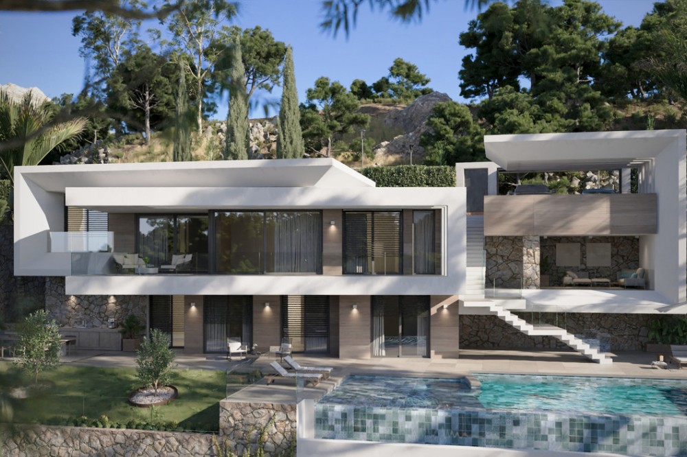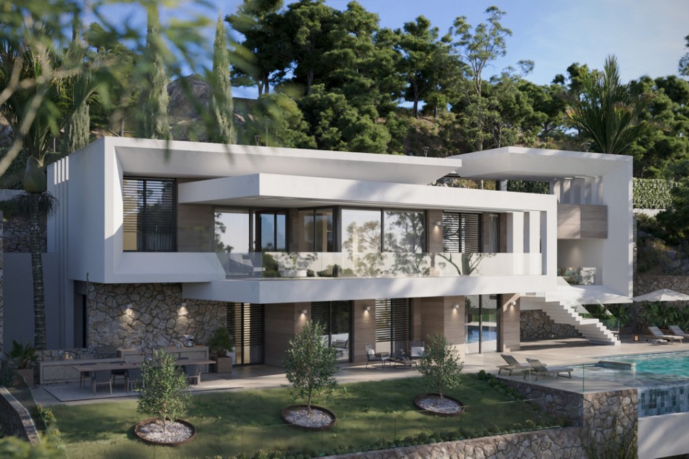 - New Development: Prices from €2,650,000 to €2,650,000. [Bedrooms: 4] [Bathrooms: 4] [Built size: 544m2]. Set within the natural surroundings of Europa Golf in La Cala Golf, Mijas, this villa offers an elegant interpretation of the contemporary Mediterranean lifestyle, where architecture, nature and privacy blend harmoniously. La Cala Golf stands out for its combination of golf courses, natural landscapes and proximity to the sea, offering a peaceful residential setting with excellent links to Marbella, Fuengirola and Málaga Airport. Designed to make the most of natural light and unobstructed views of the surroundings, the villa features contemporary architecture with clean lines and natural materials, with large glazed areas connecting the interior spaces to terraces and outdoor areas with a private swimming pool. This villa sits on a 1,201 m² plot, with a total built area of 544 m² spread over three levels, comprising four bedrooms, four bathrooms and a guest toilet. The villa offers a way to enjoy Mediterranean luxury in a privileged setting on the Costa del Sol.