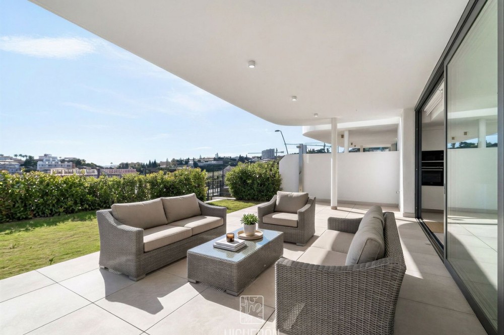 - Ground-floor apartment with garden and sea views in Higuerón West – Direct access to the pool Exclusive ground-floor apartment with 238 m², garden, featuring 3 bedrooms and 2 bathrooms, situated in one of the most sought-after areas of the Costa del Sol: Higuerón West. The property stands out for its spaciousness and its two large terraces, which allow you to enjoy the outdoors all day long. The main terrace, facing south-west, blends seamlessly with the living room thanks to its large sliding windows, creating a unique indoor-outdoor space, ideal for enjoying the Mediterranean climate all year round. From here, there is direct access to the communal swimming pool, a real privilege within the development. At the rear, there is a second large terrace situated opposite the three bedrooms, where you can enjoy the morning sun and pleasant natural light. The property features: 238 m² total floor area Underfloor heating throughout Home automation system Electric blinds in the living room Charging point for electric vehicles Also includes: 2 adjoining underground parking spaces (one with an electric charger) Private storage room of 8.66 m² Direct access from the property to the communal swimming pool Prime location Higuerón is renowned for its peaceful surroundings, landscaped areas and strategic location between Benalmádena and Fuengirola. Residents enjoy easy access to beaches, restaurants, sports facilities, the Higuerón Spa and the Curio by Hilton hotel. The property offers easy access to the Sport Club, Beach Club and extensive green spaces featuring footpaths, cycle lanes, children’s play areas and dog-friendly zones. Carvajal Beach, the train station and the main transport links to Málaga, Marbella and Málaga International Airport are just a few minutes away. Approximate costs: Service charges: €230/month Property tax: approx. €500/year (awaiting first bill) Rubbish collection: approx. €50/quarter (awaiting first bill) An ideal property both as a primary residence and as an investment in one of the most promising and sought-after communities on the Costa del Sol.