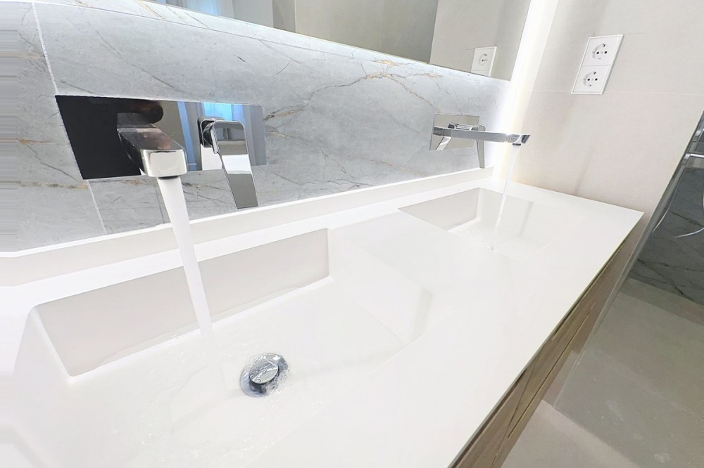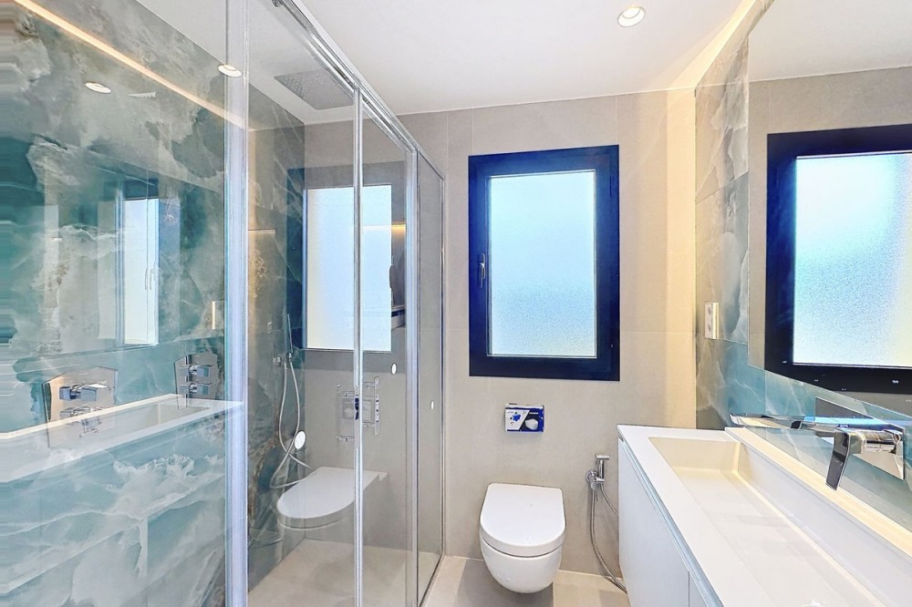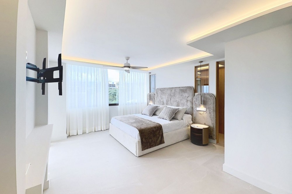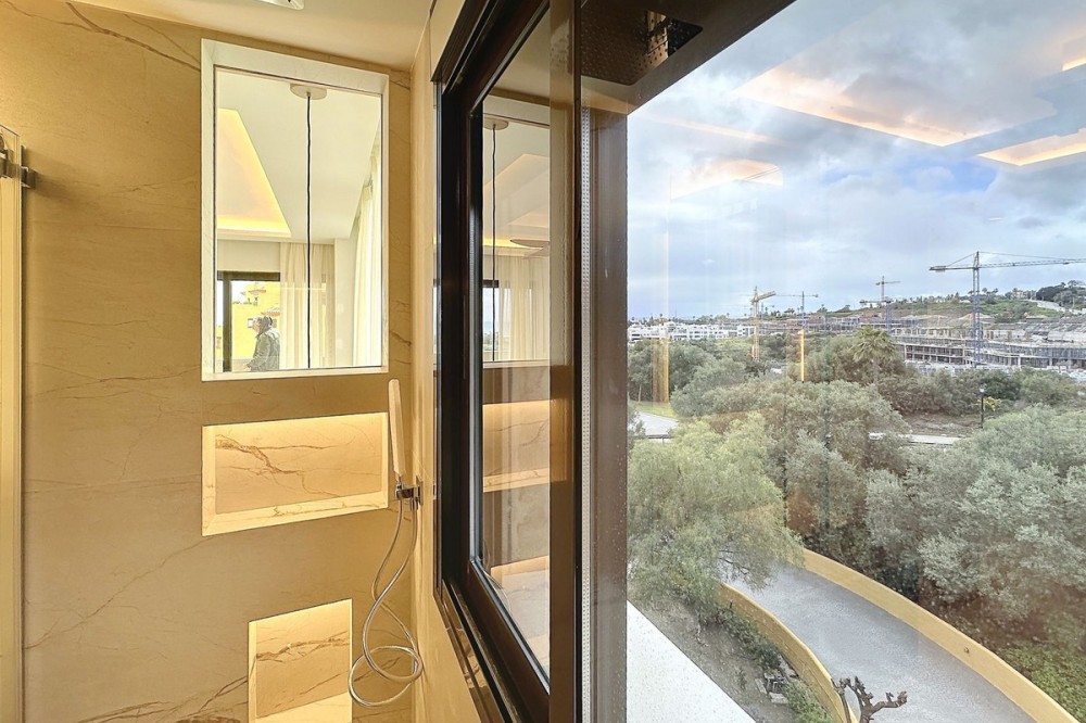 - Imagine waking up each morning to soft Mediterranean light streaming through the windows, the calm of a beautifully maintained community, and the sea breeze accompanying your first coffee of the day. All of this from a spacious glass-enclosed terrace with sea views, designed to be enjoyed year-round. This is the lifestyle offered by this elegant corner apartment located on the prestigious New Golden Mile in Estepona. With 170 sqm built, the property stands out for its generous space, natural light, and privacy. Being a corner and fully exterior apartment, every room connects with the surroundings, creating a constant sense of openness and well-being. It features three bedrooms and two bathrooms, offering a comfortable and functional layout, ideal for families or those seeking a spacious residence on the Costa del Sol. The property has been fully renovated throughout to a modern, refined standard, using top-quality materials and meticulous attention to detail. The current owners, who are interior design professionals, created this home for their own personal use, resulting in a flawless finish where no expense was spared. The outcome is a stylish, functional, and timeless living space. The 47 sqm terrace, fitted with an elegant Lumon glass enclosure system, becomes a truly versatile and privileged area: an additional living room flooded with natural light, perfect for enjoying the winter sun, relaxed dining in spring and autumn, or long evenings overlooking the sea in total comfort. A space designed to make the most of the Costa del Sol’s exceptional climate all year round. The residential complex, surrounded by landscaped gardens and featuring a communal swimming pool, offers a peaceful and secure environment. The property also includes air conditioning, central heating, a lift, underground parking, and an intercom system, ensuring everyday convenience. The location completes the appeal: just minutes from the beach, surrounded by renowned golf courses, and close to the new Atlas International School, making it an excellent choice for families. With easy access to Málaga and Gibraltar airports, it allows for an international lifestyle without sacrificing proximity and convenience. More than just a property, this home represents a way of living where light, the sea, and quality of life define every day.