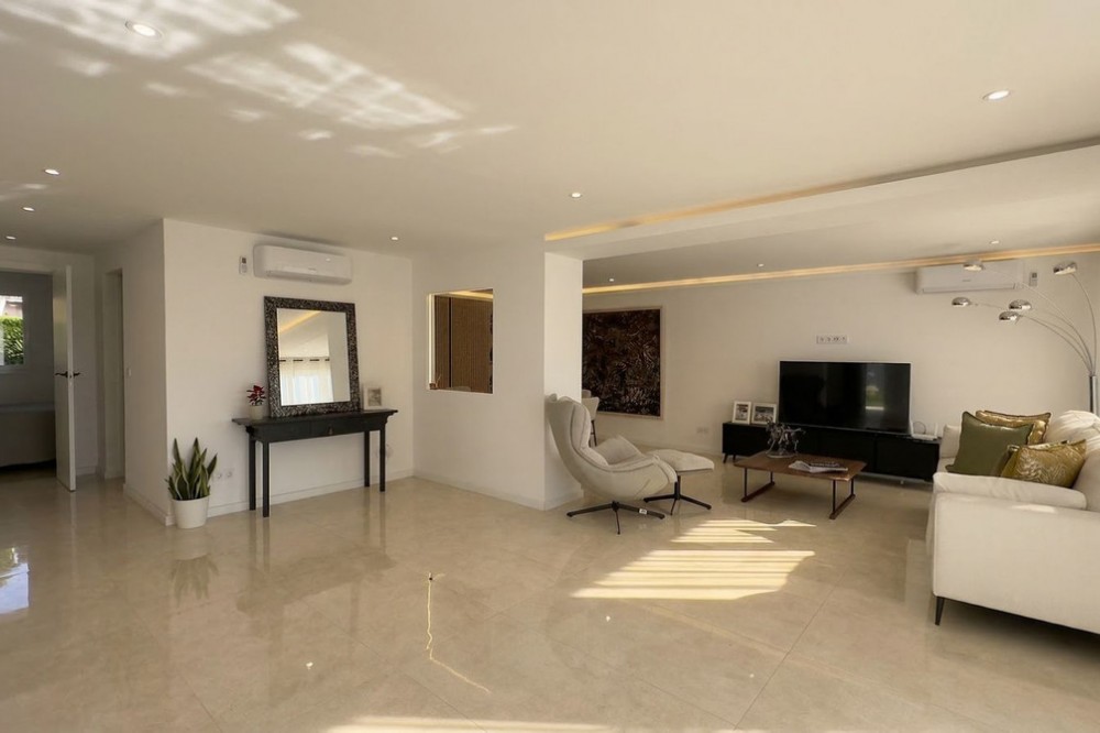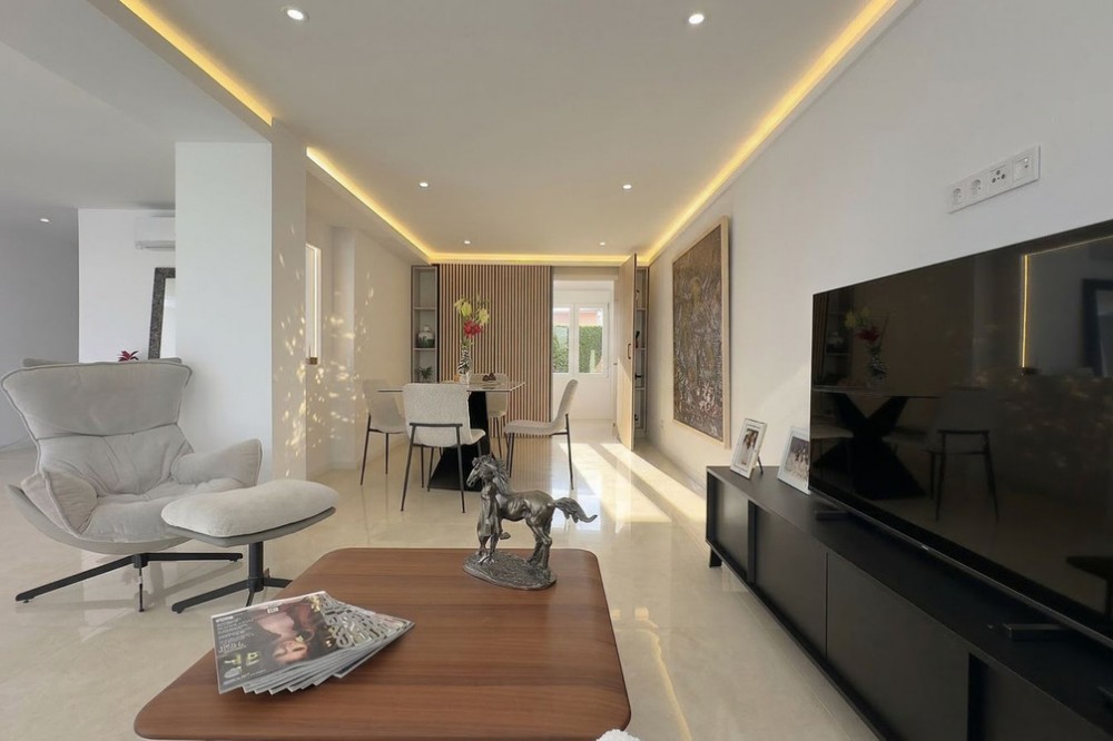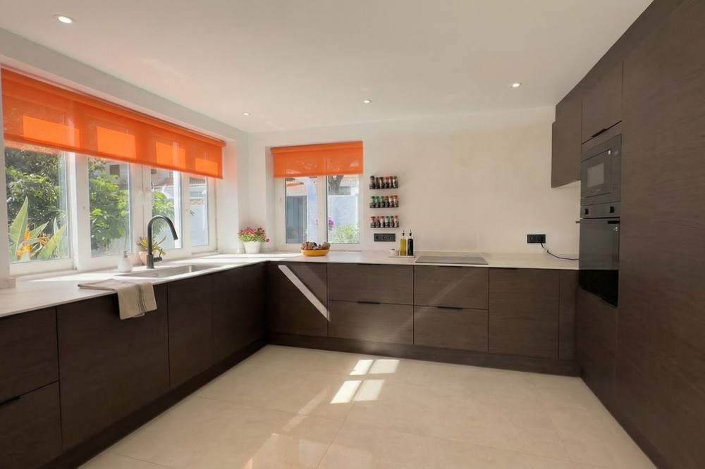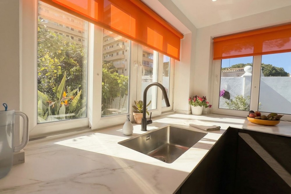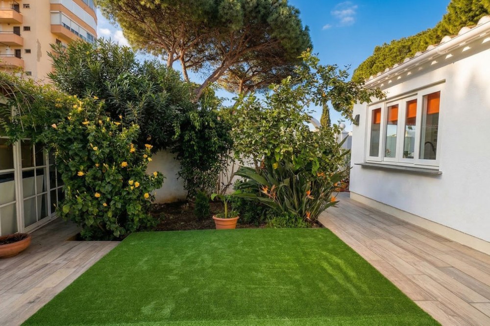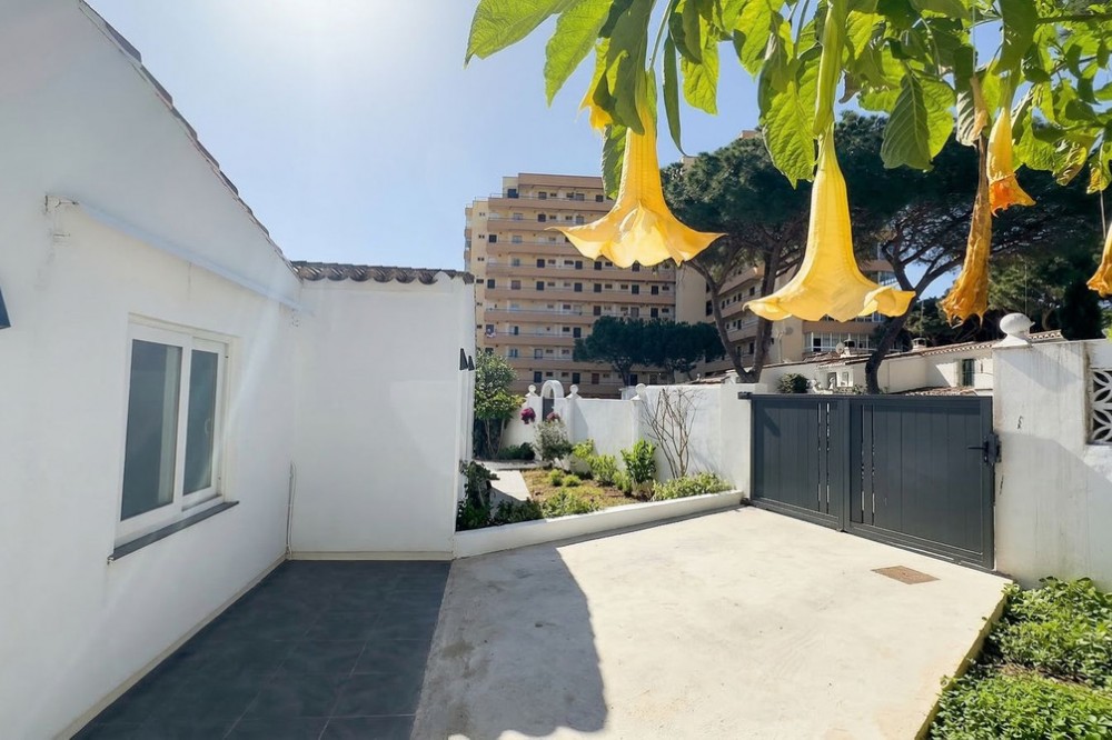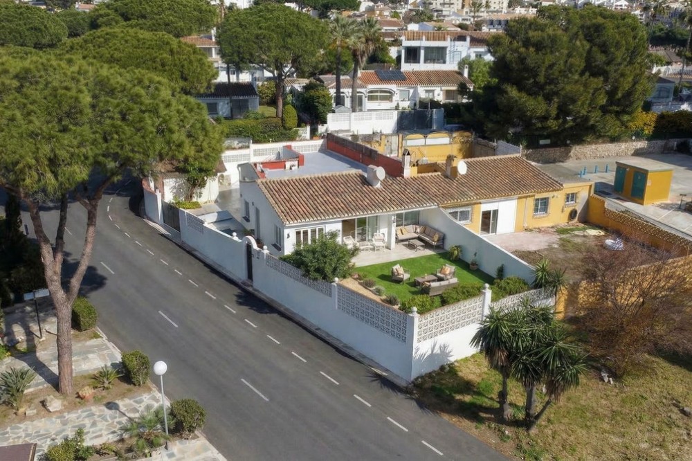 - • 300 meters from the beach • Completely renovated • With garden and roof terrace Located in the popular area of Calahonda in Mijas Costa, this charming single-level villa sits on a generous plot of approximately 387 m². The property offers a pleasant combination of privacy, comfort, and an excellent location on the Costa del Sol, within close proximity to all amenities and the beach. With a built area of around 137 m² and a practical layout, this home is ideal for both permanent living and holiday use. The villa has been recently fully renovated and meets modern standards of comfortable living. Careful attention has been given to both finishes and functionality, resulting in a move-in ready home with a contemporary feel. The property features a bright living room, an entrance hall, a kitchen, a utility/storage room, three bedrooms, and two bathrooms. Its single-level layout ensures easy accessibility and makes the home suitable for a wide range of buyers. Surrounding the property is a garden with ample space to create multiple terraces and fully enjoy the Mediterranean climate. An additional highlight is the spacious rooftop terrace/solarium, where you can enjoy sunshine throughout the day and make the most of outdoor living on the Costa del Sol. It provides a great space to relax, dine, or entertain. The location is particularly convenient. The beaches of Calahonda and Riviera del Sol are less than a ten-minute walk away, offering year-round enjoyment of the sea, sand, and beach clubs. In the immediate vicinity, you will find various supermarkets, restaurants, and charming bars, meaning everything is within easy reach without relying on a car. The property is also ideally situated between Marbella and Fuengirola, both of which can be reached in approximately 15 minutes by car. Málaga Airport is around a 25-minute drive away, making this property highly suitable as a second home or rental investment. Golf courses, sports facilities, and international schools are also nearby, enhancing both convenience and lifestyle appeal. This property represents an excellent opportunity to acquire a home in a prime Costa del Sol location, fully modernized and ready for immediate use.