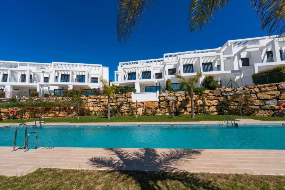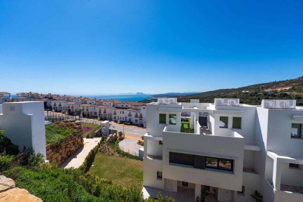 - Elegant Townhouse with Panoramic Sea Views! Discover exceptional living in this stunning townhouse within the sought-after urbanisation where breathtaking panoramic views stretch across the Mediterranean Sea to Gibraltar and the Atlas Mountains of Morocco. Designed for comfort, privacy, and modern Mediterranean living, this home offers the perfect balance between tranquility and convenience. Ideally located in a peaceful natural setting, the property is just minutes from the beach, local shops, restaurants, and the prestigious Sotogrande marina, while the vibrant town of Estepona is only a 15-minute drive away. As one of the finest homes in the complex, this spacious townhouse features 4 bedrooms and 3 bathrooms, thoughtfully distributed across multiple levels. A private garage with space for two cars provides direct access to the house and a converted basement, offering ample storage and versatility. The ground floor welcomes you with a bright entrance leading to a bespoke open-plan designer kitchen fitted with state-of-the-art appliances. The elegant living and dining area opens onto a south-facing terrace and private garden, where you can enjoy all-day sunshine and relax by your own infinity pool while taking in uninterrupted sea views. Upstairs, the first floor hosts three bedrooms, including a luxurious master suite with en-suite bathroom, along with two additional bedrooms sharing a modern bathroom. The top floor is dedicated to a fourth bedroom with its own bathroom and walk-in wardrobe, as well as access to a spectacular rooftop terrace—perfect for entertaining or simply soaking in the sweeping coastal views. Residents of this urbanisation also benefit from excellent communal amenities, including a swimming pool, paddle tennis court, and a children’s play area. Whether you are searching for a luxurious holiday retreat or a permanent residence on the Costa del Sol, this exceptional townhouse offers an unparalleled lifestyle defined by space, views, and the beauty of the Mediterranean.