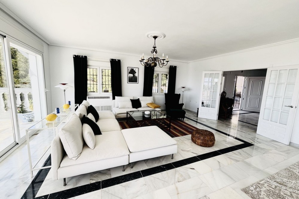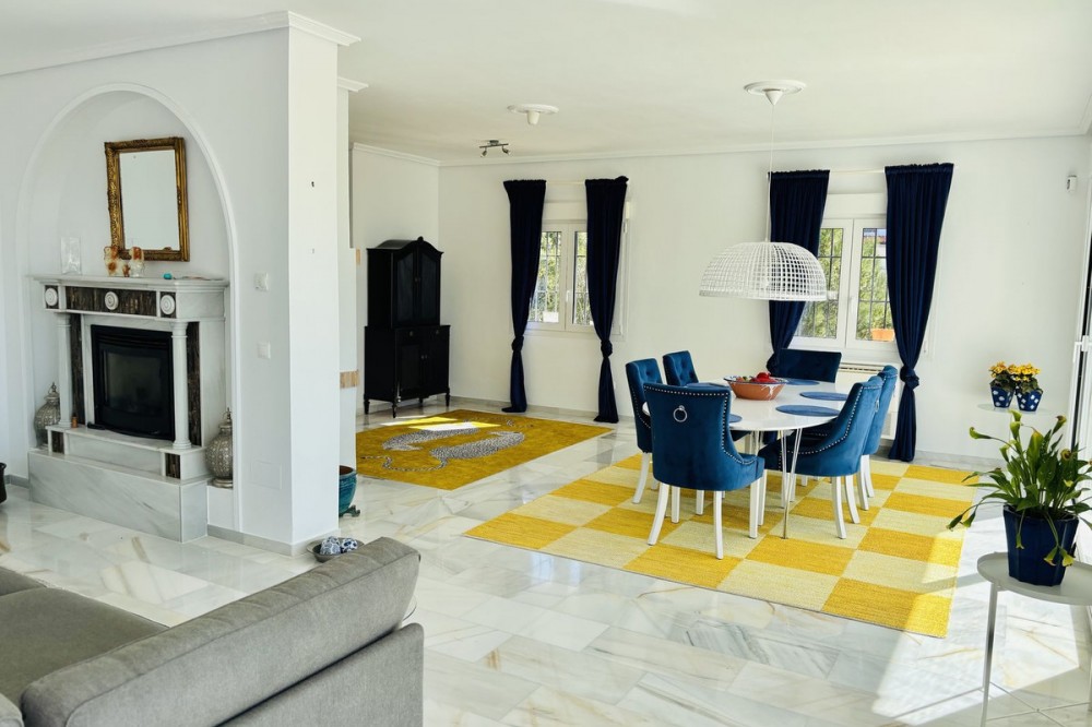 • Nestled in the prestigious urbanisation of Valtocado, this spacious and elegant classic detached villa enjoys an elevated position offering breathtaking panoramic views stretching across the mountains and down to the coast. Located at the end of a quiet street, the property offers exceptional privacy and a serene atmosphere, making it an ideal retreat for those seeking both tranquility and exclusivity. The villa is distributed over two levels and welcomes you through a charming entrance featuring a beautiful staircase that sets the tone for the rest of the home. The main level boasts a generous lounge and dining area with a fireplace, creating a warm and inviting space, alongside a fully fitted kitchen, all designed to take full advantage of the stunning views. From here, you step out onto a spacious south-facing terrace, perfect for enjoying relaxed breakfasts in the morning sun or memorable dinners overlooking the landscape. This level also includes a luxurious master bedroom suite with an en-suite bathroom, built-in wardrobes, 2 more guest bedrooms with extra bathroom and a dedicated office space, ideal for working from home in complete comfort. The outdoor areas are equally impressive, with direct access from the terrace via external staircases leading down to a large swimming pool surrounded by a beautifully maintained garden filled with mature olive trees. The setting is truly exceptional, offering uninterrupted views and a perfect environment for outdoor living and entertaining.In addition, the property features a fully independent guest apartment with its own private entrance. This versatile space includes two bedrooms, two bathrooms, a living and dining area, a small kitchen, and a chill-out or games room. Whether used as guest accommodation, a leisure area, or adapted into additional living spaces such as a gym or extra bedrooms, it offers endless possibilities. The villa is set within a gated 2 plots, ensuring privacy and security, and includes a large basement garage for two cars as well as ample additional parking within the grounds. Combining classic elegance with generous living spaces, stunning views, and flexible accommodation, this exceptional property offers a unique opportunity to enjoy the very best of Mediterranean living. One of the key advantages of Valtocado is its ideal balance between peaceful seclusion and easy access to essential amenities. Despite its tranquil, countryside setting, the urbanisation is just a short drive from the charming village of Mijas Pueblo, typically around 5-10 minutes away, where you’ll find a variety of restaurants, cafés, local shops, and everyday services.