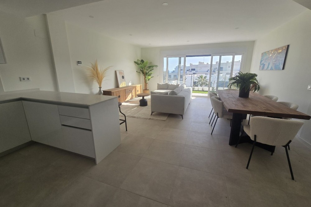 - La Cala de Mijas Townhouse – Stunning Sea Views, Walk to Beach and Town This modern townhouse offers over 160 m² of built space across two levels, with a bright southwest orientation and uninterrupted sea views from both floors. The ground floor features a spacious entrance hall leading into an open-plan living, dining, and kitchen area filled with natural light. From here, you have direct access to the main terrace and private garden with panoramic views of the sea and surrounding landscape. A guest toilet and storage area complete this level. Upstairs, there are four generous bedrooms and two bathrooms, including an en-suite to the master. All bedrooms come with built-in wardrobes and ample storage. Additional features include hot and cold air conditioning and underfloor heating in both bathrooms. Set within a secure gated community, residents enjoy access to a concierge service, communal pool, and a social club with coworking space, pool table, TV lounge, gym, and spa. Ideally located within walking distance to La Cala town and beach, and just 25 minutes from Málaga and 20 minutes from Marbella, this is an excellent property for both permanent living and holiday use.