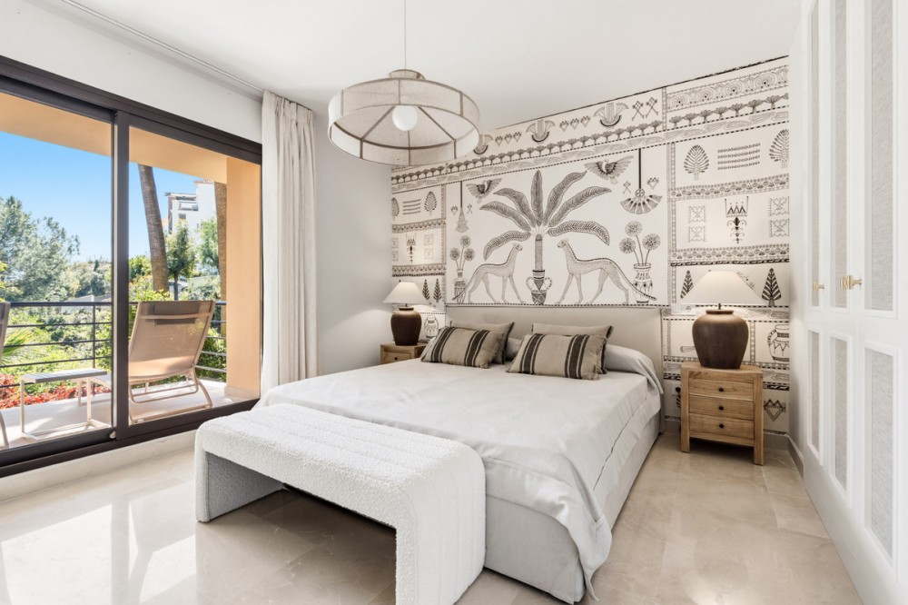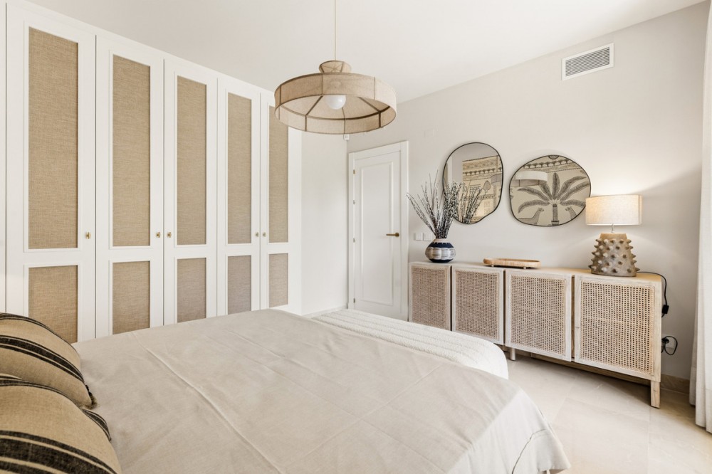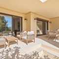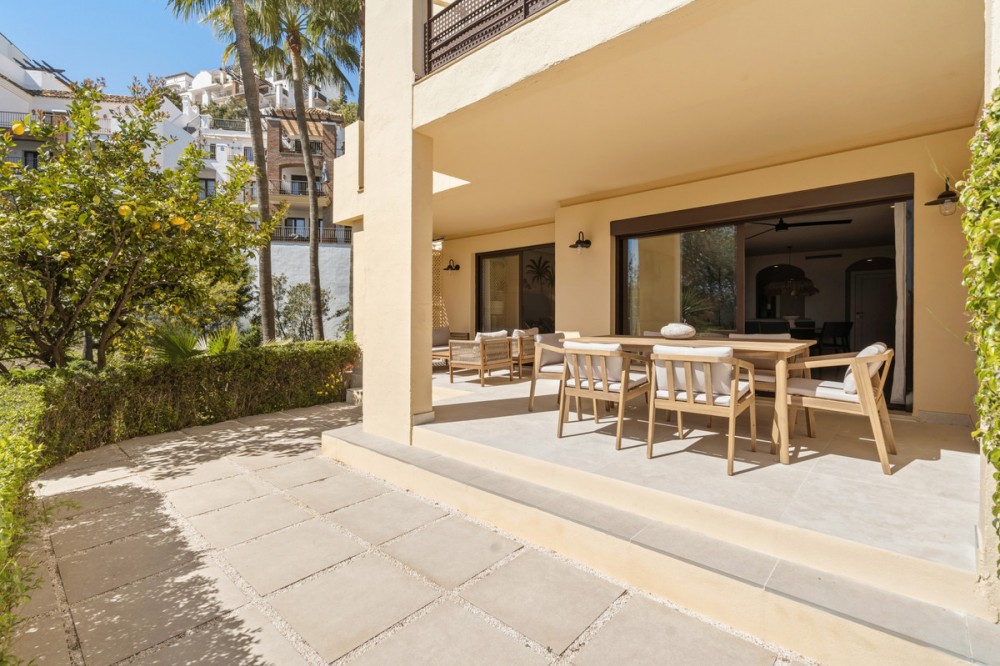 - Discover this bright and elegant 3-bedroom, 2-bathroom ground floor apartment located in the sought-after Los Pinos community within Los Arqueros Golf & Country Club. Set in a peaceful and secure environment, the property enjoys an elevated position with beautiful views of the gardens. Recently refurbished to high standards, the apartment also benefits from carefully curated, detail-oriented décor that enhances its sense of style and comfort. Surrounded by nature, the apartment offers a true sense of tranquility. Although it is a ground floor property, its elevated position gives it the feel of a second-floor apartment from street level. The apartment features a spacious living and dining area, a fully independent equipped kitchen, and two private terraces perfect for al fresco dining, sunbathing, or simply relaxing in total tranquility. Built with quality finishes, the apartment offers comfort throughout the year. The property also includes a storage room and a private parking space for added convenience. Los Pinos is a charming Mediterranean-style development with two communal swimming pools, including one heated, and beautifully maintained green areas. Ideally situated just a short drive from Marbella, Puerto Banús, Benahavís, and Estepona, this property combines serenity, stunning surroundings, and convenient access to the best of the Costa del Sol. The apartment holds a valid tourist rental license, making it an excellent opportunity both as a permanent residence and as a high-potential investment. A unique opportunity in one of the area’s most desirable communities.