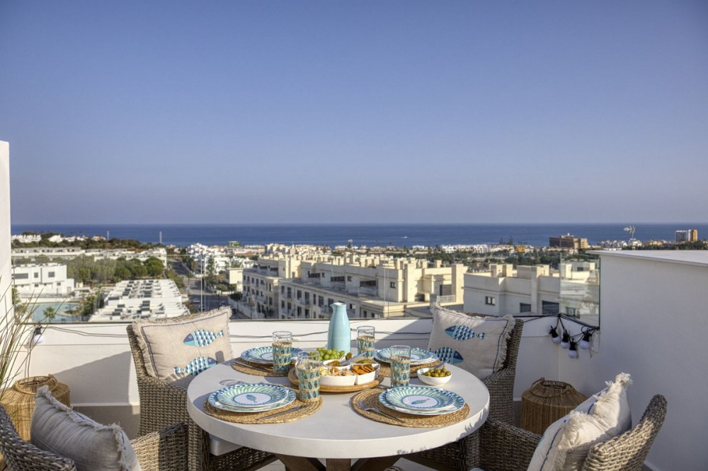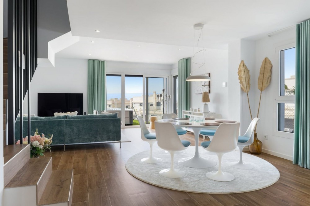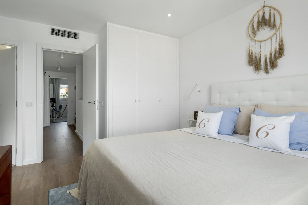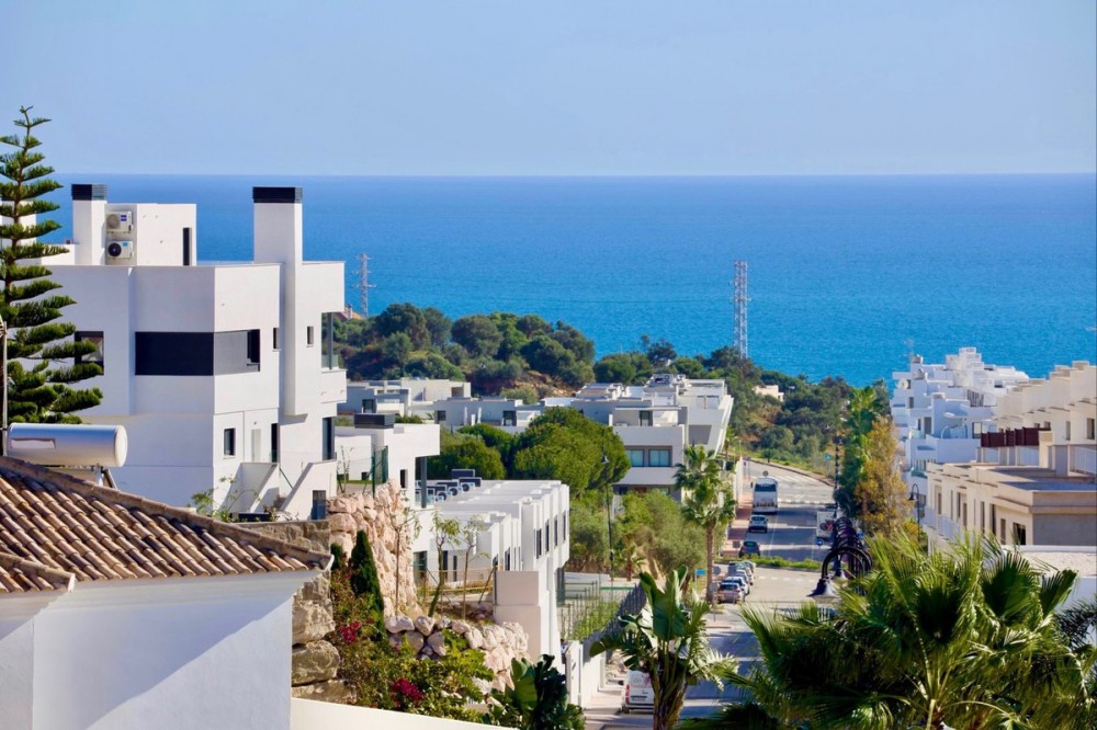- Exclusive Semi-Detached Villa in Cala Serena Village – Newly built home, Stunning Sea Views & Luxury Living Welcome to a home where modern design meets Mediterranean charm. This elegant semi-detached villa offers high-quality-construction, spacious terraces, and breathtaking panoramic sea views from every level. Perfectly positioned on a prime corner lot with unobstructed sea views, the residence enjoys one of the most desirable locations in the highly sought-after Cala Serena Village—a unique blend of style, comfort, and exceptional quality of life. A Home Year-Round Completed in December 2024, this property is ideal for both permanent living and vacation escapes. From the moment you arrive, you will appreciate a perfect blend of convenience and security, with a remote-controlled entrance and your own carport right at the front door. Additional conveniences include a storage room and a laundry area. The entry level features a bright, open-plan living room and a modern kitchen. Expansive glass doors blur the line between indoors and out, leading you to your private garden with a hot tub — perfect for relaxation and entertaining all year long. Upstairs, the master suite offers its own bathroom and balcony, accompanied by two additional bedrooms sharing a second bathroom. From here, a comfortable staircase takes you up to the spectacular rooftop terrace, where you will enjoy 180-degree panoramic views from the sparkling Mediterranean to the beautiful mountains. The Perfect Balance of Tranquility and Vibrancy Every floor offers stunning sea views. The beach is just under a kilometer away via a nearly flat and easy walk. Within a few hundred meters, you will find grocery stores, a medical center, charming cafés, and fine dining in La Cala de Mijas. Golf lovers will appreciate that La Noria Golf Resort is only 700 meters away, along with several other popular courses nearby. Privacy with First-Class Amenities In addition to your private outdoor spaces, you will enjoy access to Cala Serena Village’s shared facilities: a large pool surrounded by lush greenery, a fully equipped gym, a spa with two types of saunas and a jacuzzi, and an elegant gourmet lounge for dinners and events complete with a billiards table. A Rare Opportunity With its prime location, thoughtful layout, and access to both private and shared luxury amenities, this home offers a rare chance to make your dream of a Mediterranean home a reality.