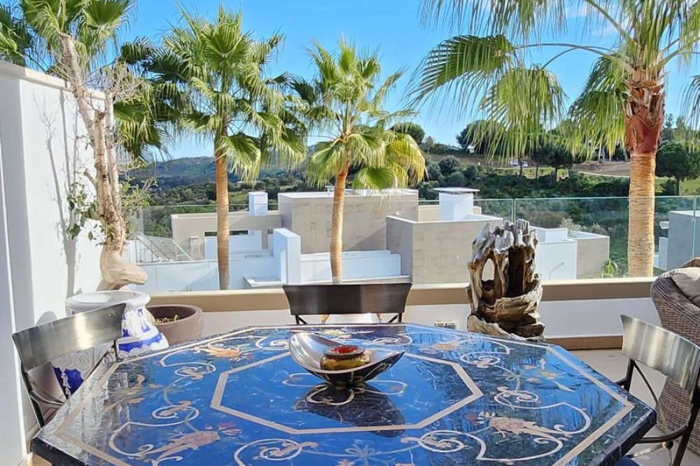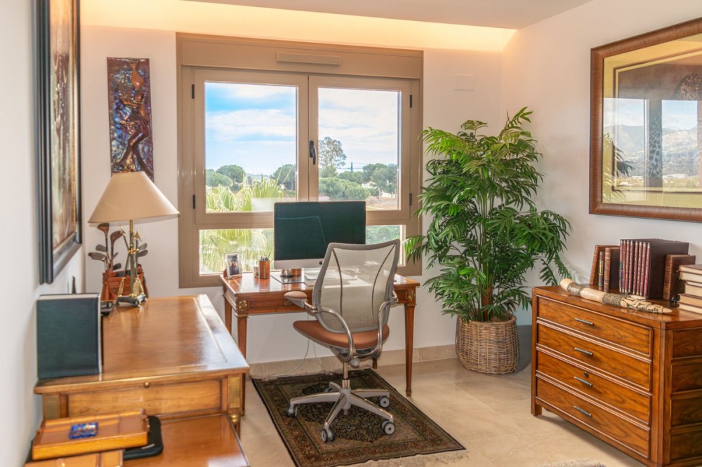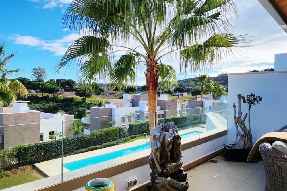 - Exclusive property with golf, mountain, pool and sea views in a luxury resort in La Cala de Mijas✨ Stunning frontline golf property with south orientation and breathtaking open views. Originally designed as a three-bedroom home, the property has been thoughtfully reconfigured into an elegant residence with two spacious en-suite bedrooms and a guest toilet. The bright, open-plan living and dining area flows seamlessly into a fully fitted contemporary kitchen and a sun-filled terrace. A standout feature is the private solarium, offering complete privacy and panoramic views — an ideal setting for both relaxation and entertaining. Located in a gated community with swimming pools, and within walking distance of the Resort’s Clubhouse, hotel and spa, the property offers a secure and exclusive environment. Key features that elevate the living experience: ✔ Private lift (from garage to all floors and solarium) ✔ Private garage for 2 cars + storage room ✔ Independent hot/cold air conditioning per floor ✔ Solar panels ✔ Electric shutters ✔ Fitted wardrobes ✔ Energy rating B A unique property combining modern design, comfort and prime location.