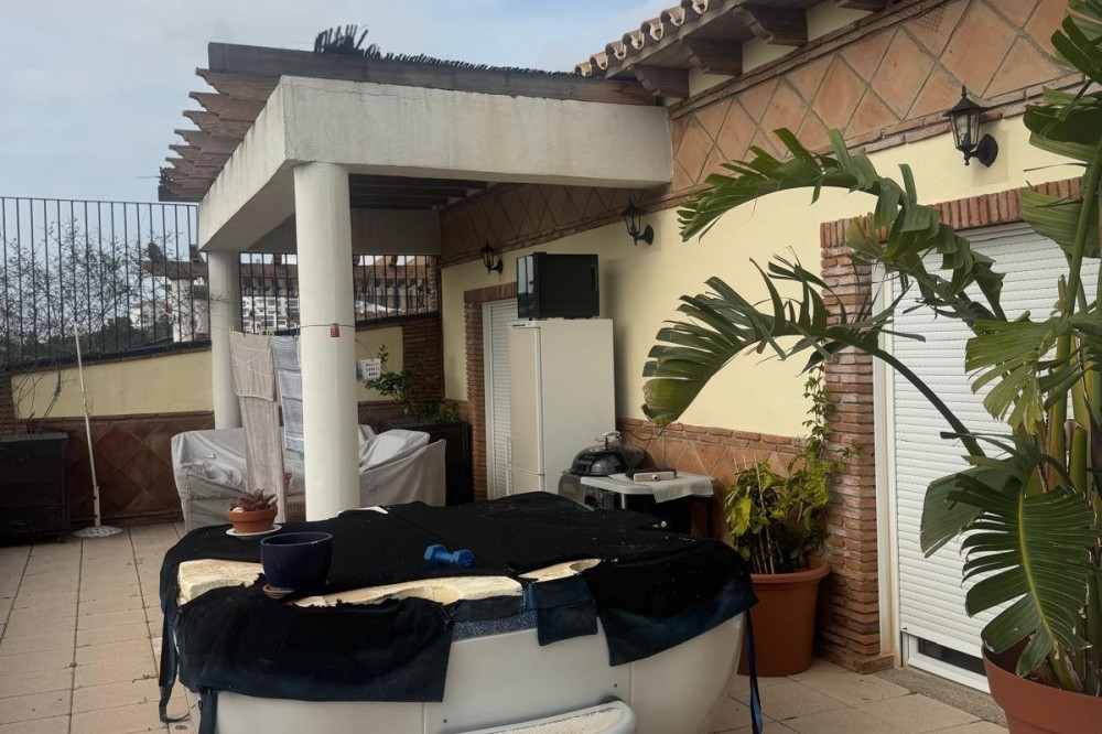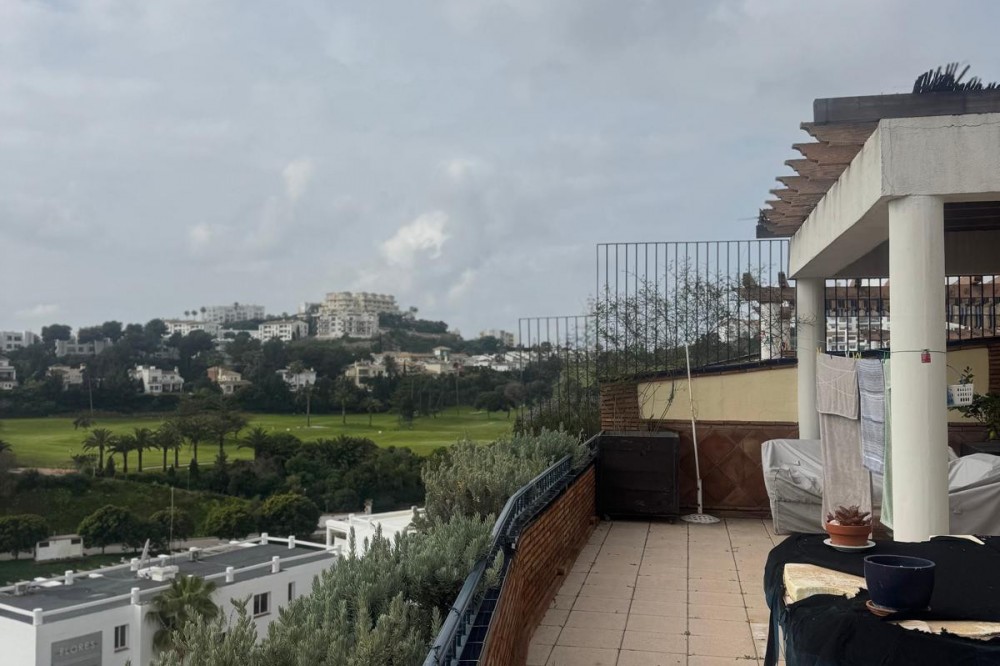 - Should exclusivity, security, spaciousness, and stunning views be of interest to a golf enthusiast, this penthouse may be the ideal solution. This wonderful property is located in close proximity to the Miraflores Golf Club, situated within a distinguished gated community that offers a comprehensive array of amenities and facilities in a tranquil and secure residential environment. The property is composed of three well-lit bedrooms, two bathrooms with excellent finishes (one en-suite), kitchen in separate space, marble floors, and a spacious and comfortable living-dining room that opens onto a large terrace with a jacuzzi, offering views of the Mediterranean and the surrounding area. Furthermore, the penthouse is accompanied by a storage room and a designated parking space. It is important to note that, in addition to the aforementioned features, the complex boasts a communal swimming pool and extensive, well-maintained gardens, much to the delight of residents. Moreover, the community is protected by a security system that is operational on a 24-hour basis, and the premises are subject to surveillance by CCTV cameras. Do not miss the opportunity to check out this wonderful penthouse!