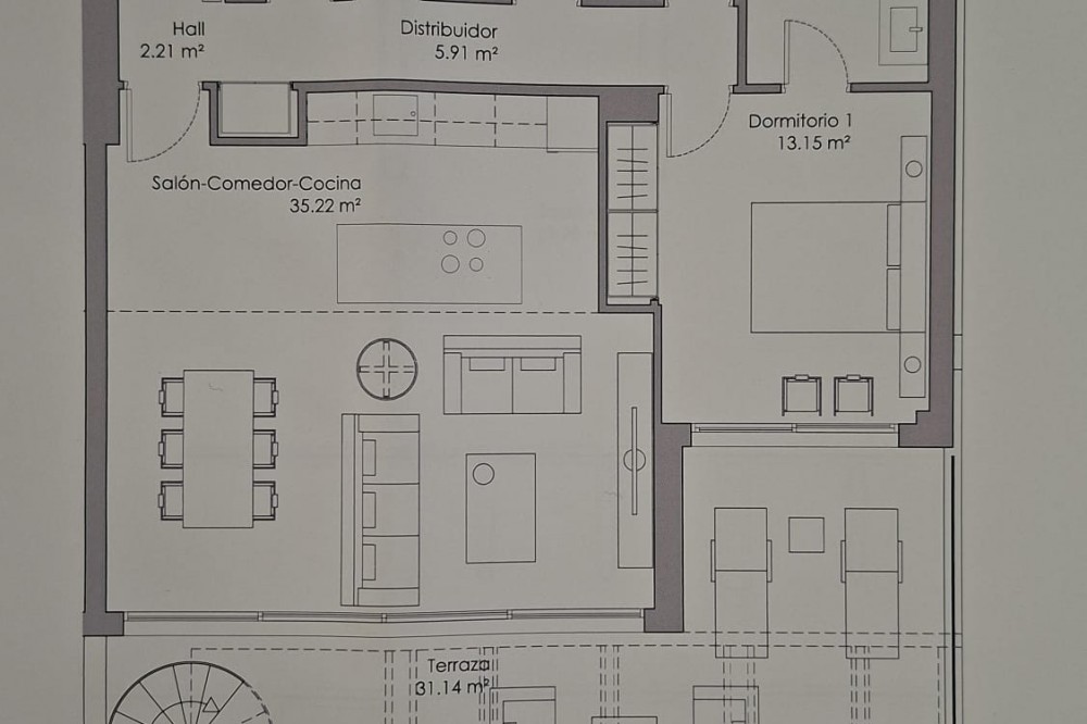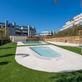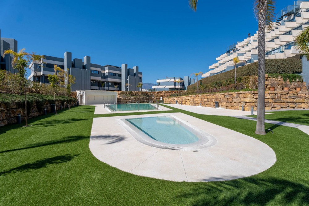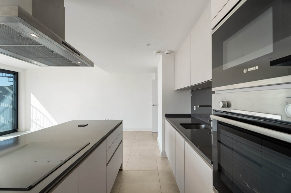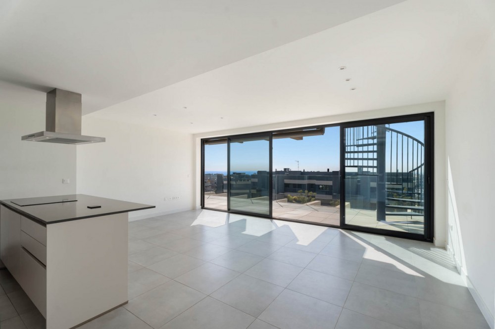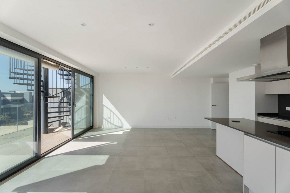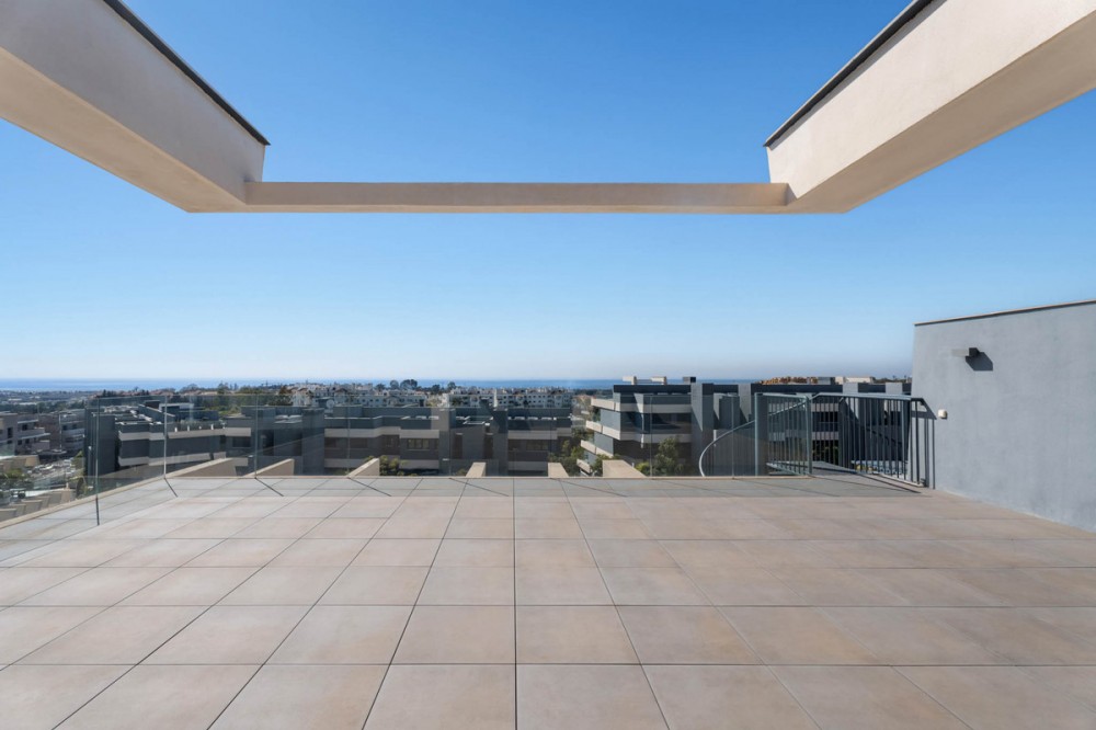 - Penthouse El Oasis is a contemporary three-bedroom penthouse located on the New Golden Mile, in the Selwo area. Positioned within a modern residential complex, this property combines clean architectural lines with functional indoor and outdoor living spaces, designed for comfort and privacy. The interior layout follows an open-plan concept, where the living room, dining area, and kitchen integrate into a single space of approximately 35 m², allowing natural light to flow throughout. The kitchen is open and connected to the main living area, creating a practical setting for everyday living and entertaining. The primary suite features an en-suite bathroom and direct access to the main terrace, establishing a private connection with the outdoor areas. Two additional bedrooms share a separate bathroom, offering flexibility for family or guests. The main terrace, measuring around 31 m², extends the living space outdoors and is directly accessible from the interior living area. A spiral staircase leads to the private solarium of nearly 70 m², where open sea views create a calm setting for outdoor use throughout the year . The property is sold unfurnished, allowing a new owner to define the interior design according to personal preferences. Residents benefit from a range of on-site facilities, including indoor and outdoor swimming pools, a gym, sauna, Turkish bath and a dedicated co-working and social area. These shared amenities complement the private features of the penthouse, offering additional spaces for relaxation and wellness. Penthouse El Oasis presents a clear layout, defined outdoor areas, and access to shared facilities, making it suitable as a primary residence or secondary home on the Costa del Sol. Property Highlights - Penthouse El Oasis on the New Golden Mile, Selwo area - 3-bedroom penthouse with private solarium - Sea views from upper terrace - Open-plan living and kitchen layout - Primary suite with en-suite bathroom and terrace access - Solarium approx. 70 m² - Indoor and outdoor swimming pools - Gym, sauna, Turkish bath, co-working and social area - Sold unfurnished