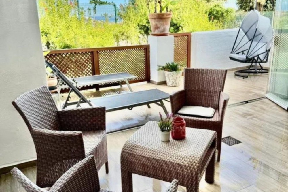 - This elegant two-bedroom, two-bathroom apartment is just 5 minutes from the beautiful beaches of Bahia de Casares and offers you a lifestyle of tranquility and comfort. The apartment is located in Residencial Mirabella within the prestigious Dona Julia Golf Club, with views of the beautiful Sierra Bermeja and partial sea views. Two parking spaces in a closed garage and a storage room are included with the property. The apartment is fully furnished and equipped with all high-quality appliances, and is also air-conditioned to offer the comfort you need. This property features a spacious 27 m2 living room and an 18 m2 master bedroom en suite with a dressing room and a whirlpool bath. It has a large 35 m2 terrace, partially enclosed with glass curtains so you can enjoy the views all year round. The urbanization offers 24/7 private security, a gated community equipped with surveillance cameras and video intercom. The residence has communal gardens and three swimming pools, including children's pools. The apartment is ideally located between Marbella and Gibraltar, just 20 minutes from Marbella, 30 minutes from Gibraltar and 50 minutes from Malaga Airport. A few minutes away from the property, you have all the necessary services you could wish for, such as supermarkets, restaurants, pharmacies, banks, and schools. Ground Floor Apartment, Casares Playa, Costa del Sol. 2 Bedrooms, 2 Bathrooms, Built 160 m², Terrace 35 m². Setting : Close To Golf, Urbanisation. Orientation : South. Condition : Excellent. Pool : Communal, Children`s Pool. Climate Control : Air Conditioning, Hot A/C, Cold A/C. Views : Sea, Mountain, Panoramic. Features : Covered Terrace, Lift, Fitted Wardrobes, Private Terrace, WiFi, Storage Room, Utility Room, Ensuite Bathroom, Access for people with reduced mobility, Double Glazing, 24 Hour Reception, Fiber Optic. Furniture : Fully Furnished. Kitchen : Fully Fitted. Garden : Communal. Security : Gated Complex, 24 Hour Security. Parking : Underground, Garage, Covered, More Than One, Private. Category : Resale.
