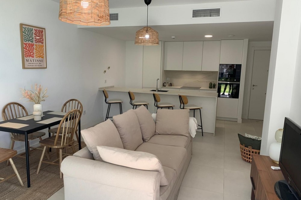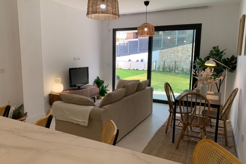 - Ground Floor Apartment, Fuengirola, Costa del Sol. 2 Bedrooms, 2 Bathrooms, Built 90 m², Terrace 60 m². Orientation : South. Condition : Excellent. Pool : Communal. Climate Control : Air Conditioning, Pre Installed A/C, Hot A/C, Cold A/C. Views : Garden. Features : Lift, Fitted Wardrobes, Private Terrace, Double Glazing. Furniture : Fully Furnished. Kitchen : Fully Fitted. Garden : Private. Security : Entry Phone. Parking : Underground. Utilities : Electricity, Drinkable Water.