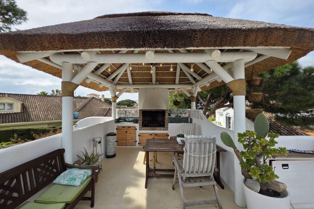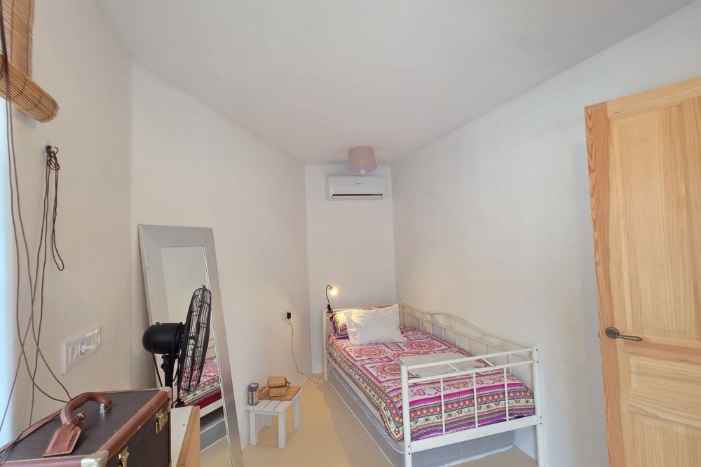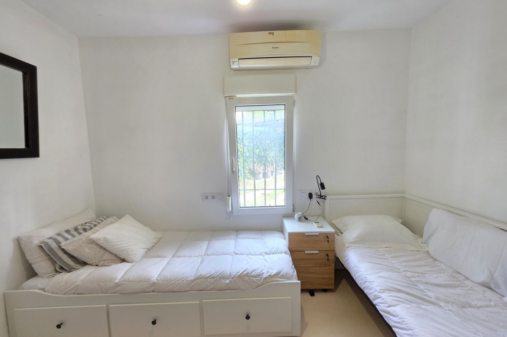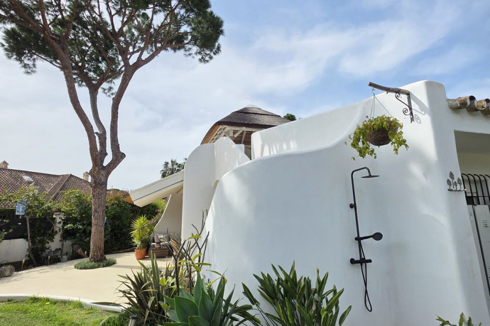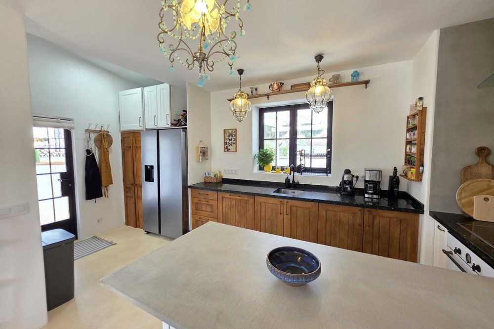 - Live the Andalusian Dream with Ibizan Flair by the Sea! We are pleased to present this exclusive detached corner villa, an architectural gem that has been fully refurbished in an exquisite Ibizan style, combining Mediterranean warmth with the most modern comforts. Located in a privileged setting, just 500 metres from the sea, this property offers a unique lifestyle where design and functionality come together on a single floor, with no stairs. The house has undergone a complete renovation, with every detail carefully considered to create bright, open and welcoming spaces. It sits on a generous private plot of almost 500 m², offering exceptional outdoor space to enjoy the area’s excellent climate in total privacy. Main features: Design & Layout: 3 spacious bedrooms and 2 full luxury bathrooms, finished with high‑quality materials and a contemporary, Ibizan‑inspired aesthetic. The entire property is arranged on a single level, ensuring easy access and a smooth flow between rooms. Private On‑Plot Parking: The property has its own parking area within the plot, with capacity for 2 cars and equipped with an electric gate to ensure maximum security and convenience. Outdoor Oasis: Private plot of almost 500 m² with garden and terrace areas, ideal for creating your own outdoor paradise. Functionality: Includes a utility room and pantry, cleverly integrated for optimal home organisation. Exclusivity & Surroundings: The property is part of a gated and very select community of only 13 villas, guaranteeing a quiet and secure residential environment. In addition, you can enjoy excellent communal areas: – Communal swimming pool open all year round – Social club for events and moments of relaxation – Multi‑sports court for fitness and outdoor activities This house is not just a property; it is a peaceful retreat with the character of Ibizan style and the advantage of a brand‑new, full refurbishment in an unbeatable location. Come and discover your new home by the Mediterranean!