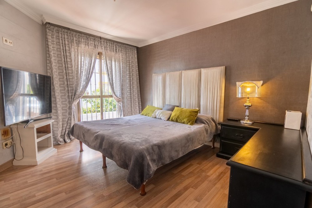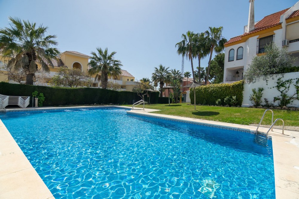 - Exclusive Townhouse in Seghers, Estepona, Just Steps from the Sea Located in the prestigious Seghers area, one of Estepona’s most established and sought-after residential zones, this elegant townhouse stands out for its spacious layout, natural light, and prime location just minutes from Playa del Cristo and the Marina. The property offers an excellent balance between comfort and strong investment potential, making it ideal both as a permanent residence and as a high-value investment. On the main floor, a bright and fully equipped kitchen with a breakfast area welcomes you with abundant natural light. This level also features a stylish living-dining room with parquet flooring, leading to a charming private terrace with a barbecue area — perfect for year-round outdoor living — with direct access to one of the three communal swimming pools. The first floor comprises two bedrooms, including a spacious master suite with a large walk-in wardrobe and a bathroom featuring a hydromassage bathtub and a separate shower. On the upper floor, a third bedroom with vaulted ceilings, a full bathroom, and access to a private terrace offers an exclusive and intimate space. The basement adds significant value to the property, featuring a gym area and a versatile space that can easily be converted into an independent apartment, thanks to its direct access to the garage with street exit. The gated community offers three communal swimming pools surrounded by landscaped areas, ideal for relaxation and enjoyment. A property full of character, in a prime location, with excellent potential in the heart of Estepona.