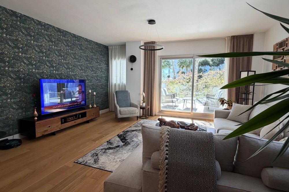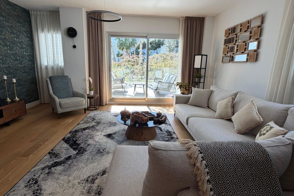 - Modern ground floor apartment with sea views located in the sought-after Residencial Mediterráneo in Mijas Costa. This property offers a well-designed layout with 2 bedrooms and 2 bathrooms (one en-suite), a bright living area, and direct access to spacious outdoor areas including a 20 m² covered terrace and a 45 m² open terrace, perfect for enjoying the Mediterranean lifestyle. Built in 2023, the apartment is sold fully furnished and includes private parking and a very large storage room. An ideal option for both permanent living and investment, combining comfort, outdoor space, and sea views in a prime Costa del Sol location. About the Urbanisation – Residencial Mediterráneo Residencial Mediterráneo is a modern residential complex in Mijas Costa, offering beautifully landscaped gardens, swimming pools, and high-end communal areas designed for relaxation and comfort. The development is located close to the sea and enjoys a peaceful environment with excellent access to nearby amenities.