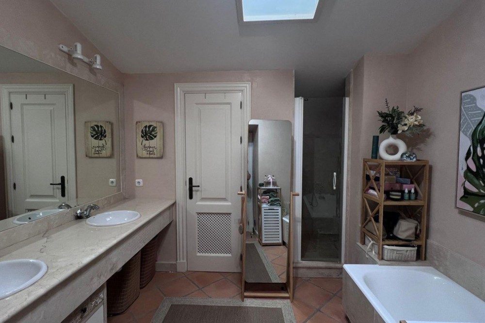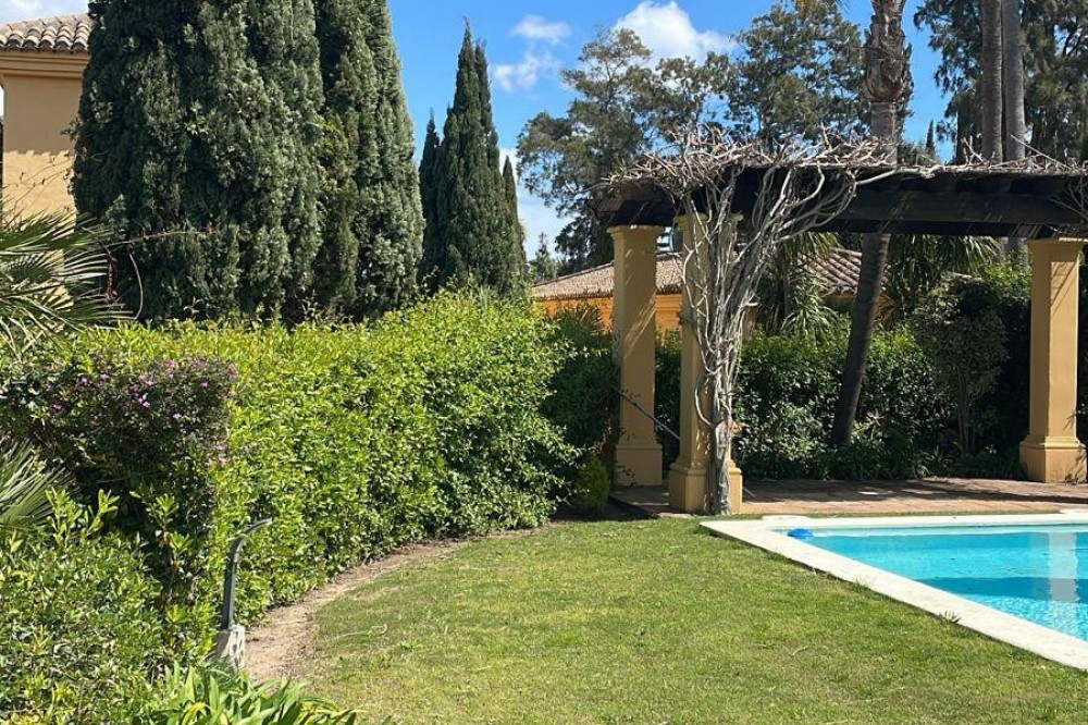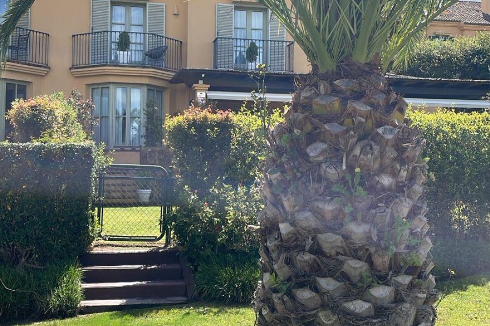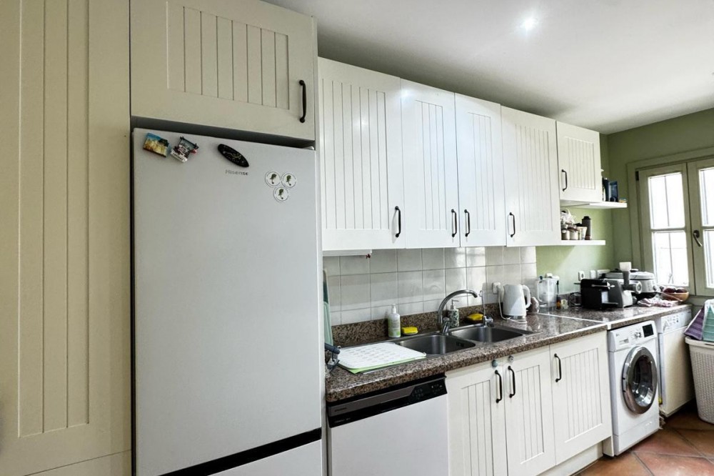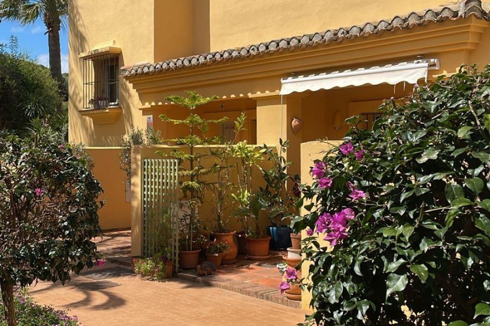 - This impressive four-bedroom town house is situated in the prestigious area of Sotogrande, Cadiz, offering a harmonious blend of comfort, style, and convenience. Encompassing a generous built area of 320m², with 205m² of interior space and an expansive 50m² terrace, the property boasts an enviable location close to local amenities, shops, schools, the town centre, and the port. Its proximity to the sea, beaches, and renowned golf courses further enhances its appeal for those seeking a vibrant yet tranquil lifestyle. The residence is thoughtfully arranged over several levels, providing four spacious bedrooms and four bathrooms, two of which are en-suite, along with an additional guest toilet. The interior is beautifully appointed, featuring air conditioning, underfloor heating throughout, and gas heating to ensure year-round comfort. Marble floors add an elegant touch, while the fully fitted kitchen and included furnishings offer a move-in-ready experience. A charming fireplace in the main living area creates a warm and inviting atmosphere, ideal for relaxing or entertaining guests. Outdoor living is a key highlight of this property, with a private garden, a secluded swimming pool, and multiple terraces including uncovered areas and a balcony. The private terrace is equipped with a barbecue, perfect for al fresco dining while enjoying the stunning views of the surrounding countryside, golf course, lake, and pool. The orientation and design of the house ensure ample natural light and picturesque vistas from many rooms and outdoor spaces. Additional features include a private garage, ensuring secure parking and storage, and the property is presented in good condition throughout. Pets are welcome, making this a versatile option for families. With its blend of luxury features, superb location, and comprehensive amenities, this town house presents an exceptional opportunity in one of Cadiz’s most sought-after residential communities.