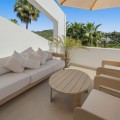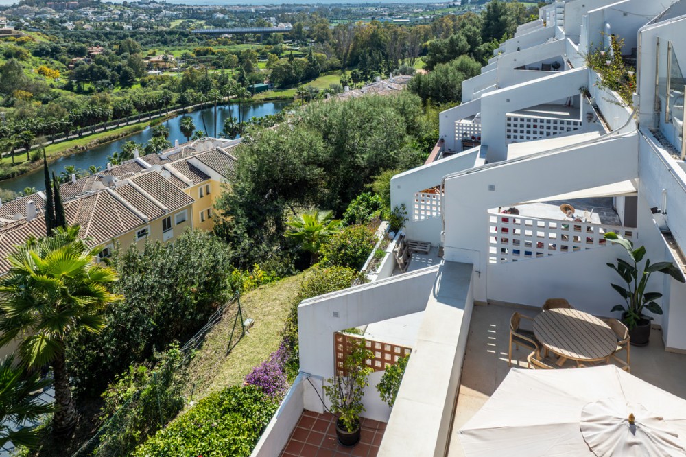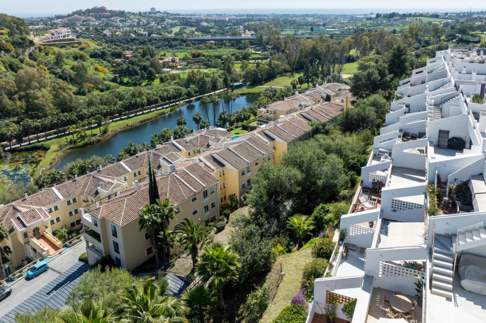 - Please note: For us to provide You with our best possible service, please leave your email and phone number when sending your enquiry. Thank you Situated within a secure gated community, this beautifully presented apartment enjoys meticulously maintained communal gardens and a shared swimming pool, offering a serene and relaxed lifestyle in a peaceful setting. Its prime location in Mirador La Quinta places it in one of the area’s most sought-after residential enclaves, making it perfect as either a permanent home or a ready-to-enjoy holiday retreat. The interior has been fully modernised and finished to a high standard, with a clean, contemporary design throughout. A brand-new furniture package is included, and the open-plan kitchen and living area flows seamlessly onto a private terrace — ideal for unwinding, entertaining, or enjoying meals while taking in the surrounding scenery. Set on the middle floor, the apartment comprises two generously sized bedrooms and two stylish bathrooms. From this elevated position, residents can enjoy sweeping views of the Mediterranean Sea, the rolling fairways of the nearby golf course, and the surrounding mountains, creating an atmosphere of space, light, and tranquillity. 10 min to San Pedro 12 min to Puerto Banus 18 min to Center Marbella 45 min to the Airport LET US MOVE YOU