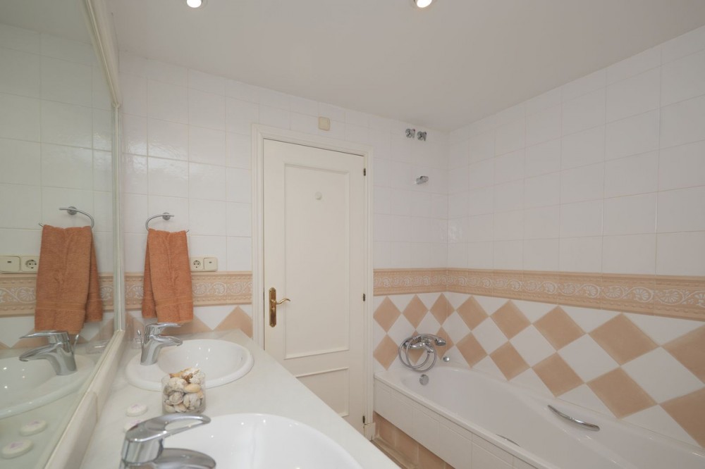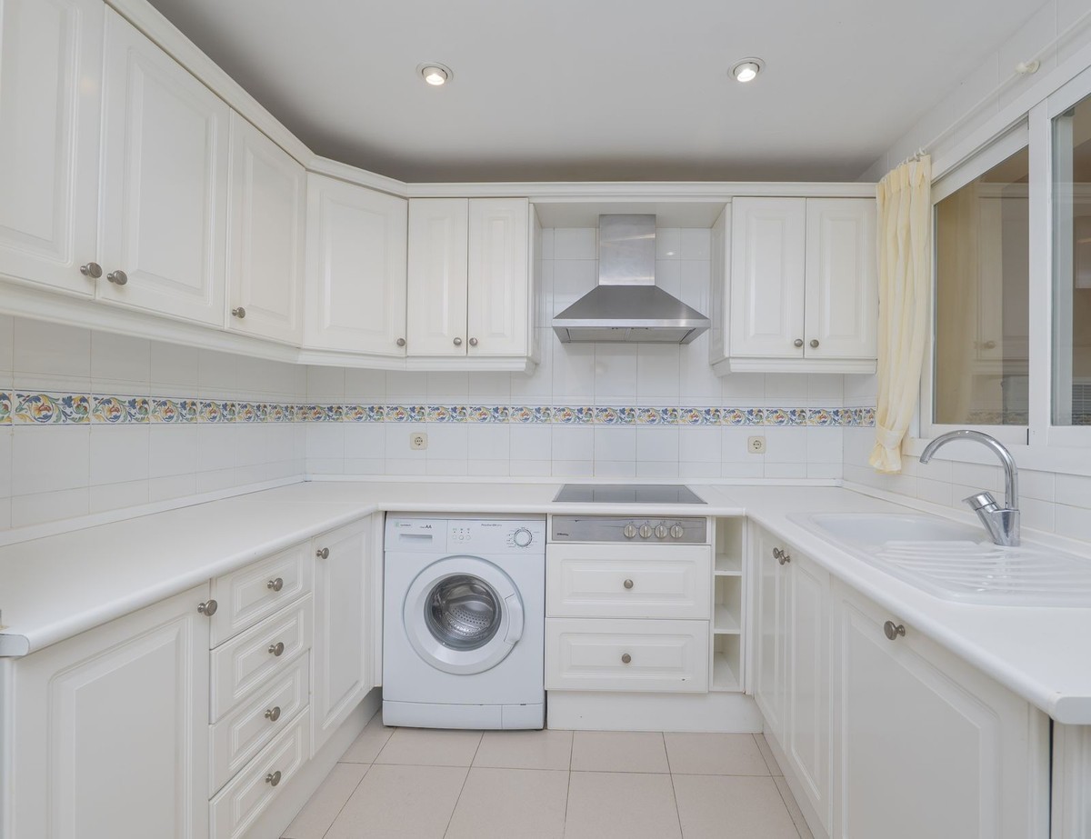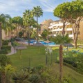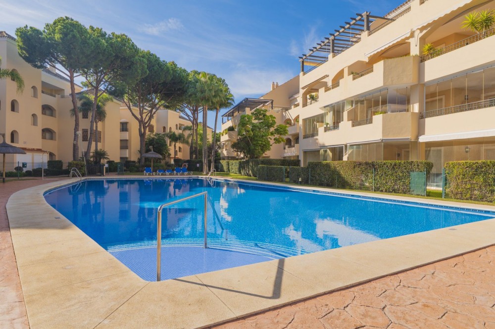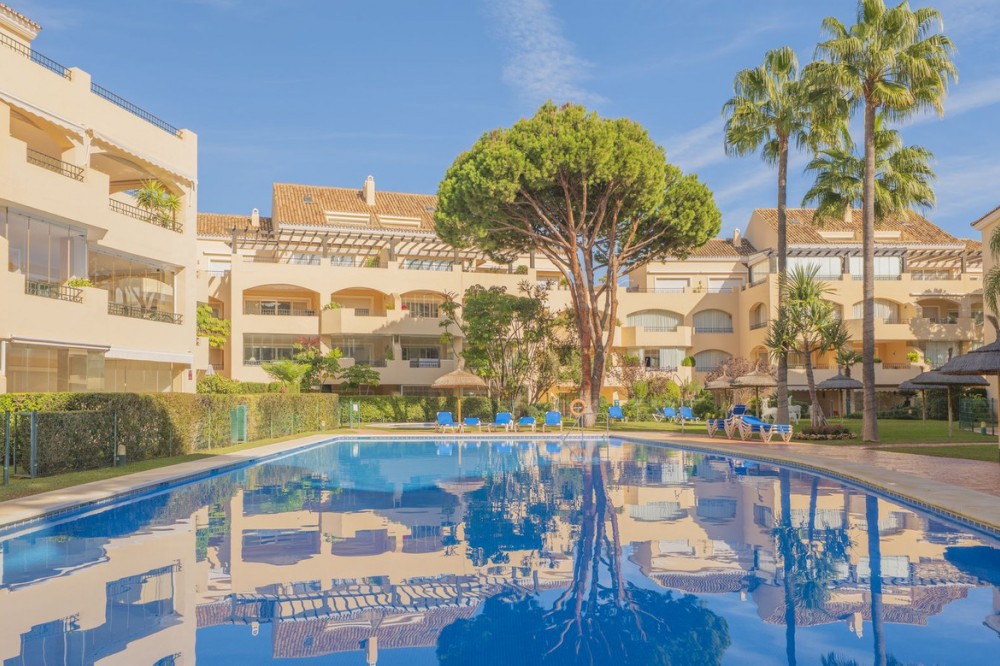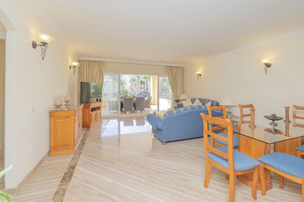 - Great Middle Floor Apartment at Hacienda Playa, Elviria beachside. The best and most important development beachside Elviria would be Hacienda Playa Complex, made up of several phases and boasting high end building materials and finishes, as well as properly taken care of common green areas, with a big adult pool as well as children's. This unit comprises two bedrooms, the main one en suite, and two bathrooms; an ample living room with dining area and access to the huge garden facing covered terrace adding up to 38sqm, besides, a complete kitchen with utility room. A spacious apartment with marble flooring and double glazing. The property includes private underground huge private parking space and storage room. Located at short distance of Elviria's Open Commercial Center offering a plethora of facilities such as pharmacy, supermarkets, hardware store, municipality, etc. Besides, a number of leisure and gastronomic businesses. All in a privileged location beachside the A7 with all the chiringuitos, beach clubs and restaurants of Elviria Beaches. Property Tax: IBI 910€ (dwelling + parking and storage). Community Fee: 172€/month. Garbage Tax: 185€/year.