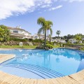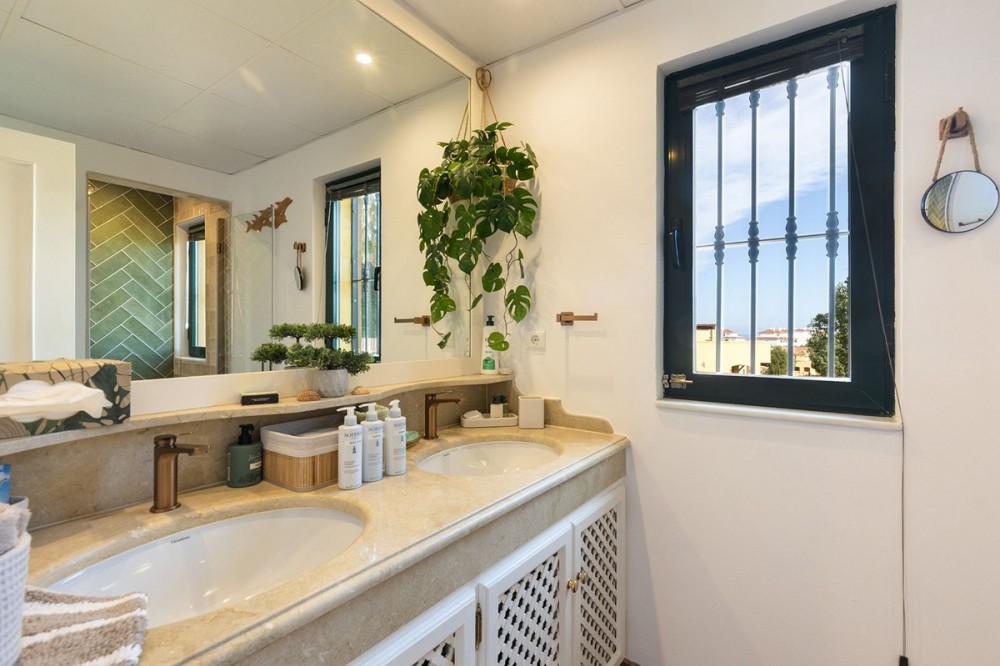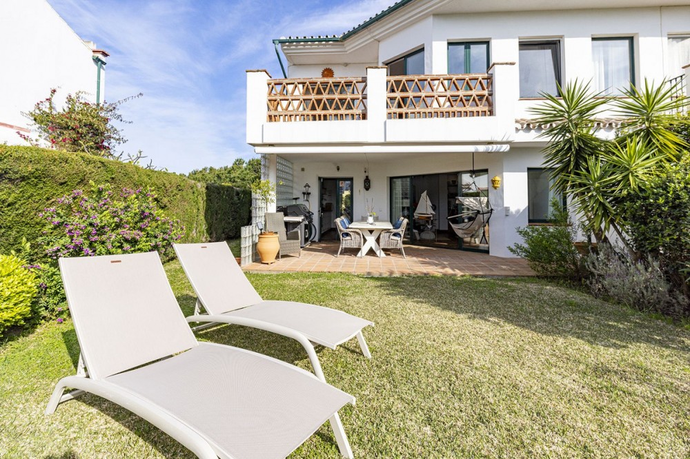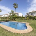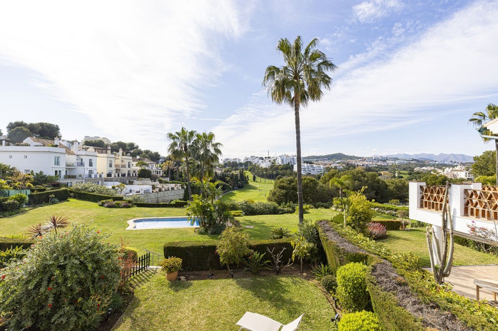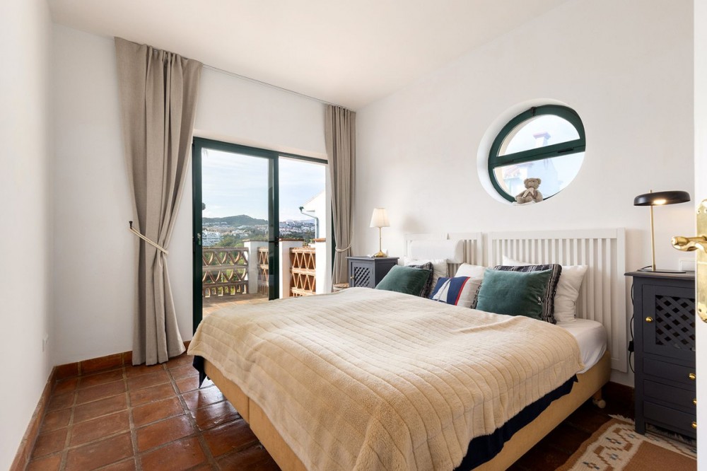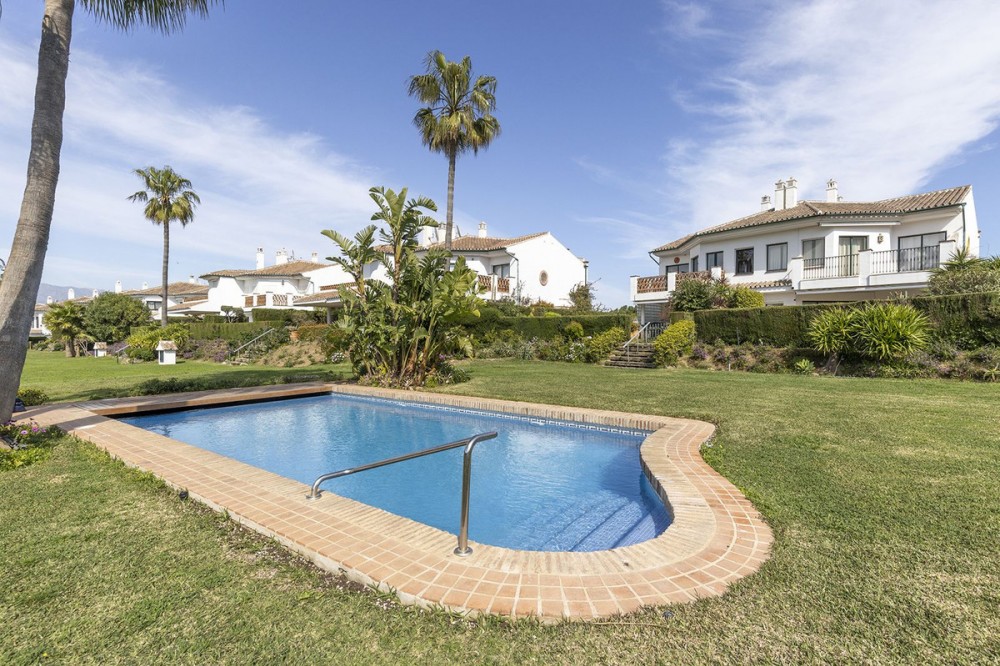 - Discover the perfect blend of comfort and scenery in this charming semi-detached house, situated in the Islas de Miraflores residential development. The property is boasting breathtaking views over the rolling greens of the golf course and distant mountains so typical for the region. From top floor you have partial sea views from various windows. It is well located with only about 10 minutes walk to the beach and very near a commercial complex with supermarket, restaurants, hair and nail salon and more. Even though the main terrace is west facing there are large windows and another terrace area on other side of the property, which enjoys the morning sun giving you sun all day long. Set within over 5,500 m² of lush, landscaped communal gardens, the property offers an outdoor lifestyle like no other, featuring two sparkling swimming pools—including one heated for year-round enjoyment. Inside, the 174 m² layout is bathed in natural light, offering a seamless flow between the spacious living room with its dining area that opens directly onto a private porch. With three well-appointed bedrooms, two bathrooms (one en suite), and a 26 m² private garage with direct access, every detail has been designed for effortless living. Enjoy the best of the Mediterranean sun from your private terrace.
