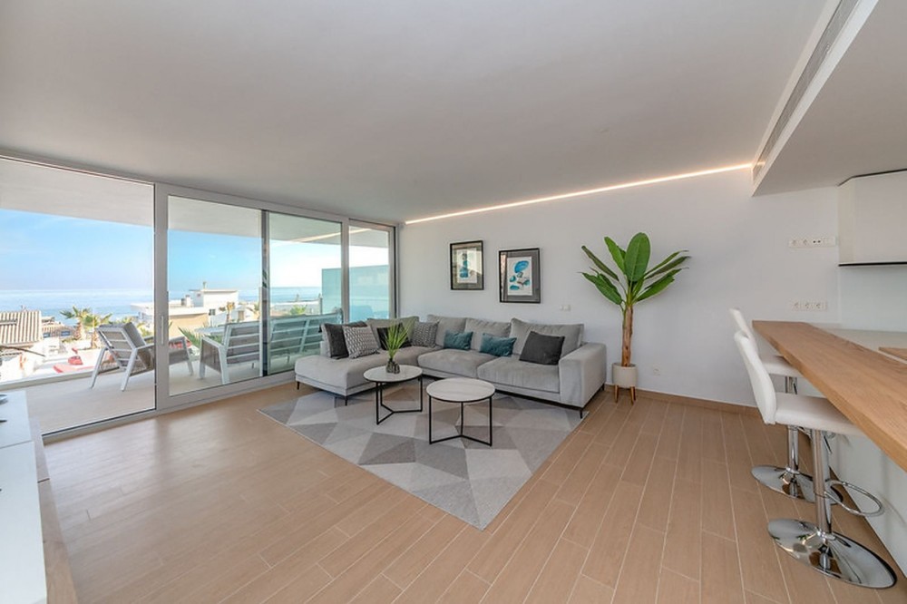 - Carvajal – Fuengirola Newly built apartment with sea views, spacious terrace, pool and garage – just a few steps from the beach Welcome to this modern and stylish apartment in sought-after Carvajal, one of Fuengirola’s most desirable areas. Here you live just around the corner from the beach, with restaurants, the promenade, transport links and all essential services close by. The property offers a bright and well-designed layout with large windows that create an open and airy atmosphere. The modern kitchen is seamlessly connected to the living room, creating a social and inviting space. From here, you access the spacious terrace with beautiful sea views – the perfect spot for breakfast in the sun, dinners with friends or relaxing all year round. The apartment features 2 bedrooms and 2 elegant bathrooms, one of them en-suite. The property has a contemporary standard throughout and is ideal as a permanent residence, holiday home or investment. A private garage space is included, and the well-maintained community offers a communal swimming pool with sunbathing areas for enjoyable days in the sun. Carvajal is known for its excellent beachfront location, popular beach restaurants and beautiful promenade stretching along the coast. Here you live in a peaceful yet highly attractive area with easy access to both Fuengirola and Benalmádena. This is an excellent opportunity for anyone looking for a modern home near the sea in one of the best areas of Costa del Sol. Key features: 2 bedrooms 2 bathrooms Terrace with sea views Communal pool Private garage space Walking distance to the beach Prime location in Carvajal, Fuengirola