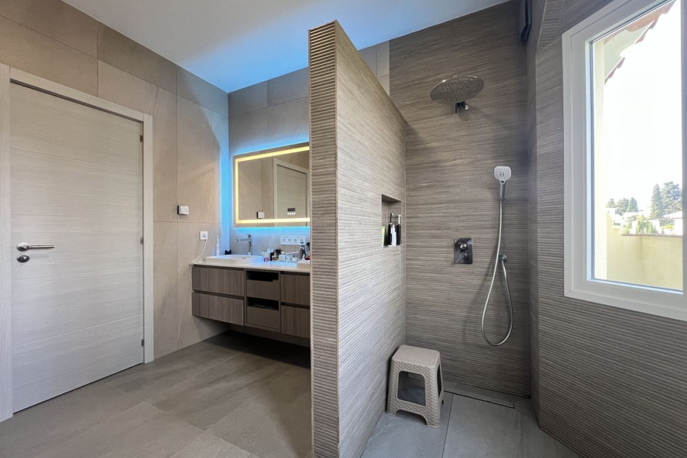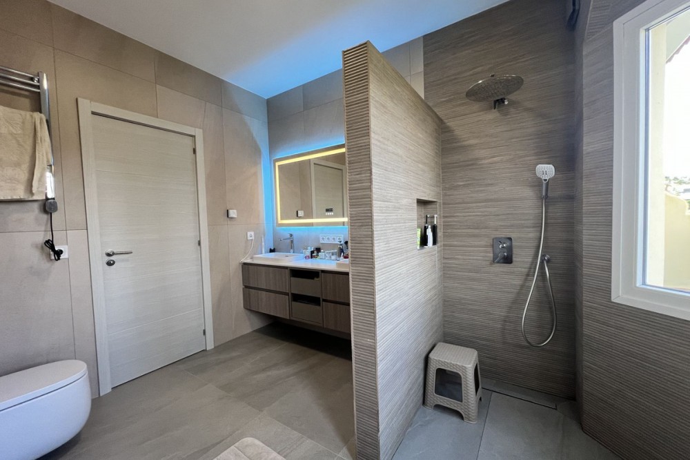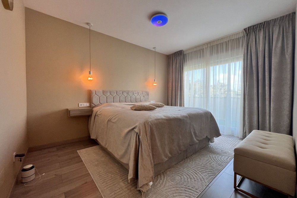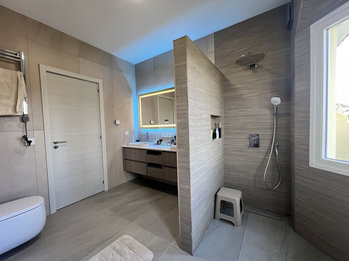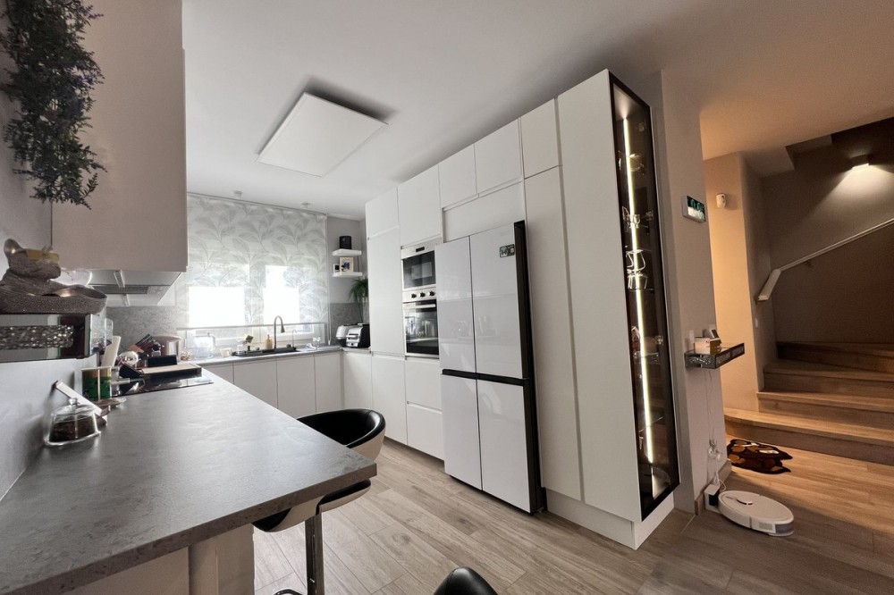 - FULLY RENOVATED TOWNHOUSE IN ATALAYA – READY TO MOVE IN Exclusive townhouse completely renovated in September 2026, combining contemporary design, cutting-edge technology, and maximum comfort. Located in a private and very მშვიდ residential complex of only 16 homes, this property is an excellent opportunity both as a permanent residence, a holiday home, or an investment. The property offers 226 m² built area, distributed across three spacious bedrooms and three fully renovated modern bathrooms. It features a bright and generous open-plan living room with a modern kitchen, creating a welcoming and functional space ideal for everyday living and entertaining. The bedrooms provide a great sense of privacy and comfort, while the bathrooms stand out for their stylish design and high-quality finishes. In terms of specifications and features, the home includes a modern kitchen by IKEA, high-quality laminate flooring, blinds installed on all windows, and completely renewed interior and exterior carpentry. The full renovation carried out in 2026 includes new double-glazed windows, complete replacement of plumbing systems, and improved acoustic insulation to ensure maximum comfort. The property is also equipped with advanced energy-efficient solutions, including a solar energy system by Huawei and an aerothermal climate control system by HTW, providing efficient heating and cooling throughout the year. On the basement level, there is a spacious private garage with capacity for two vehicles, fitted with a premium garage door by Hörmann. This level also includes additional functional spaces such as a laundry area, a separate walk-in wardrobe, a technical room, and a storage area. The property also features a private garden and terrace, perfect for enjoying the outdoor lifestyle all year round. The gated community offers a communal swimming pool, a very peaceful atmosphere, and low community fees of just €133 per month. Ideally located in Atalaya, close to golf courses, schools, supermarkets, and all essential amenities, this home perfectly combines location, design, and comfort in a unique, move-in-ready opportunity.