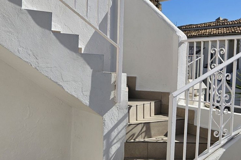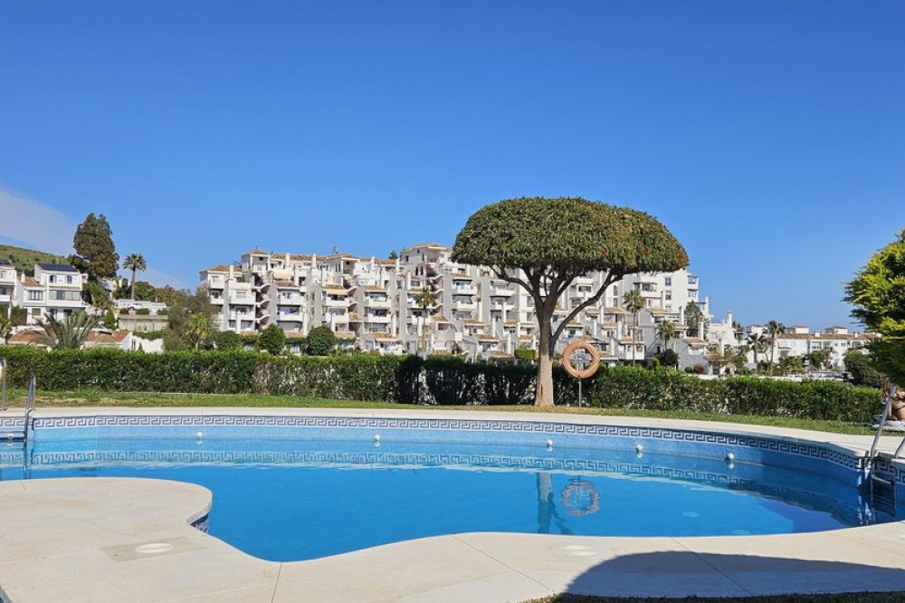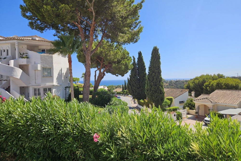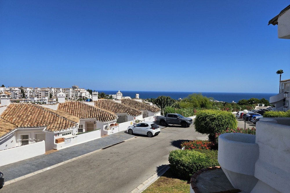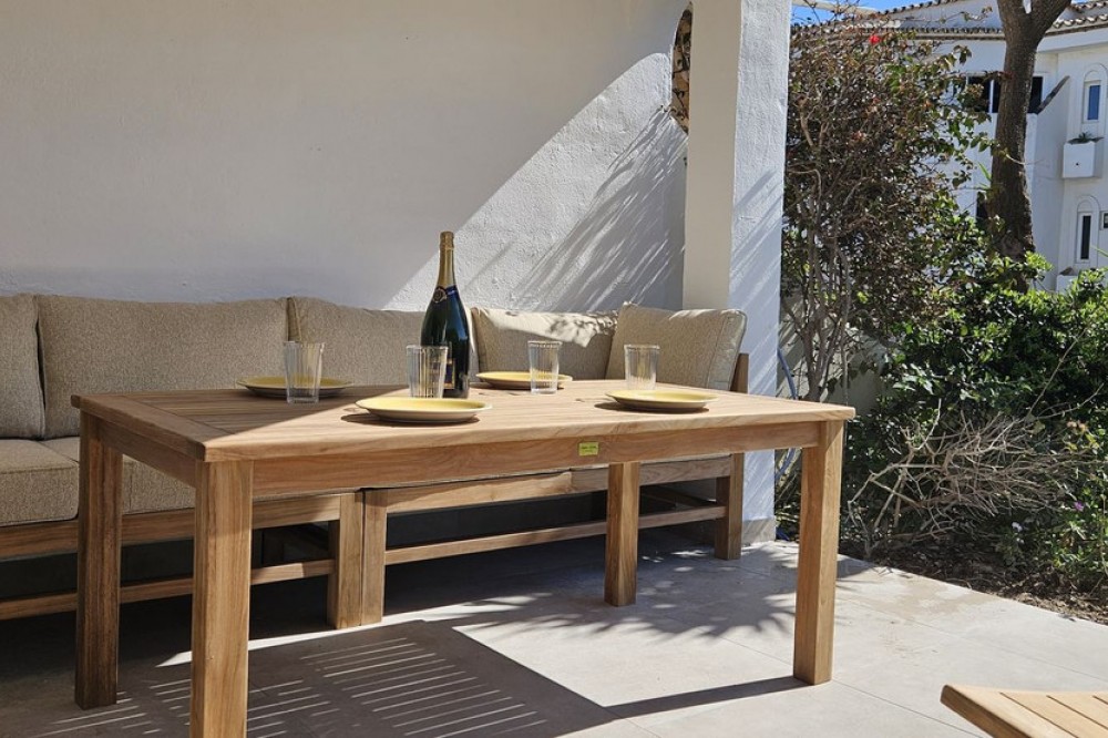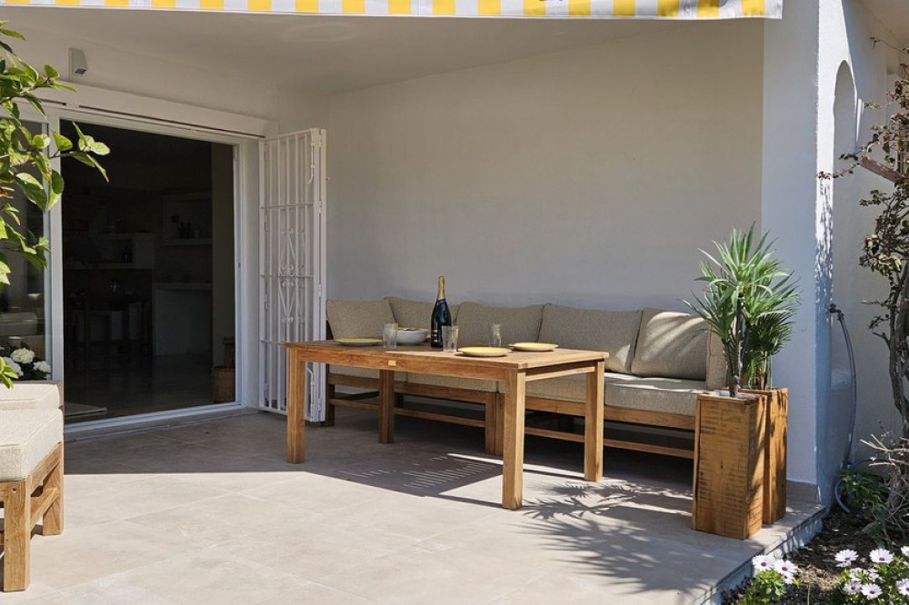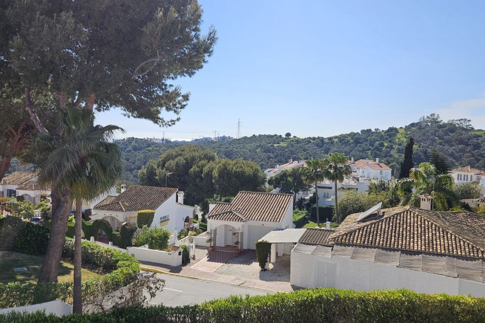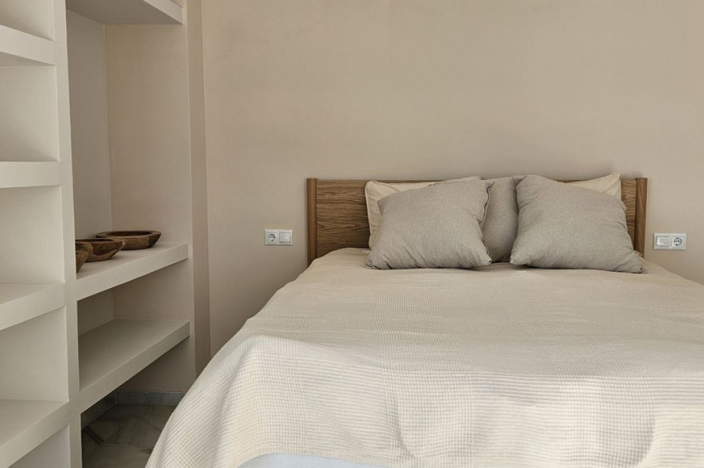 - Elegant and charmingTownhouse with Open Views in Calahonda Set within the highly sought-after urbanisation of La Cornisa, this beautifully renovated townhouse offers an effortless blend of style, tranquillity, and Mediterranean charm—surrounded by lush greenery and a lovely sense of openness. The entrance level welcomes you into a refined open-plan living space, where a newly renovated kitchen flows seamlessly into the lounge. The interior is thoughtfully curated in a sophisticated bohemian style, featuring brand-new, carefully selected furnishings—all unused—creating a fresh and inviting atmosphere. Large openings lead directly onto a charming terrace, where views of the manicured gardens are complemented by partial sea views—an ideal setting for relaxed outdoor living. A tastefully updated guest toilet completes this level. Upstairs, two serene bedrooms each open onto their own private terraces, both enjoying beautiful green views combined with partial views of the Mediterranean. Between the bedrooms, you will find a spacious, fully renovated bathroom finished to a high standard. From the master bedroom terrace, a private staircase leads to an exclusive rooftop terrace—an exceptional space designed for complete privacy, all-day sun, and a lovely open outlook. A perfect setting for quiet moments, entertaining, or simply embracing the Costa del Sol lifestyle. Ideally positioned in the heart of Calahonda, La Cornisa offers the rare combination of convenience and calm, with easy access to local restaurants, cafés, and shopping, while maintaining a distinctly peaceful ambiance. The urbanisation features expansive communal pool areas, ideal for enjoying long sunny days, social gatherings, or relaxed afternoons by the water. The property is offered fully furnished, allowing for a seamless and immediate move-in experience.