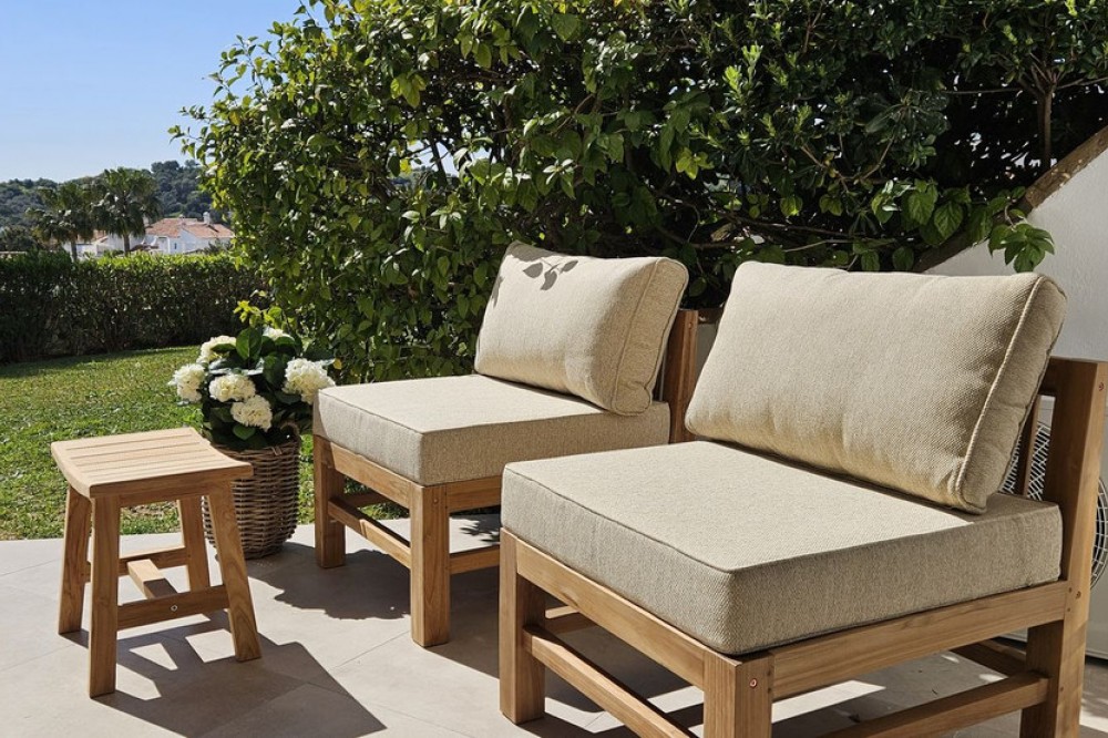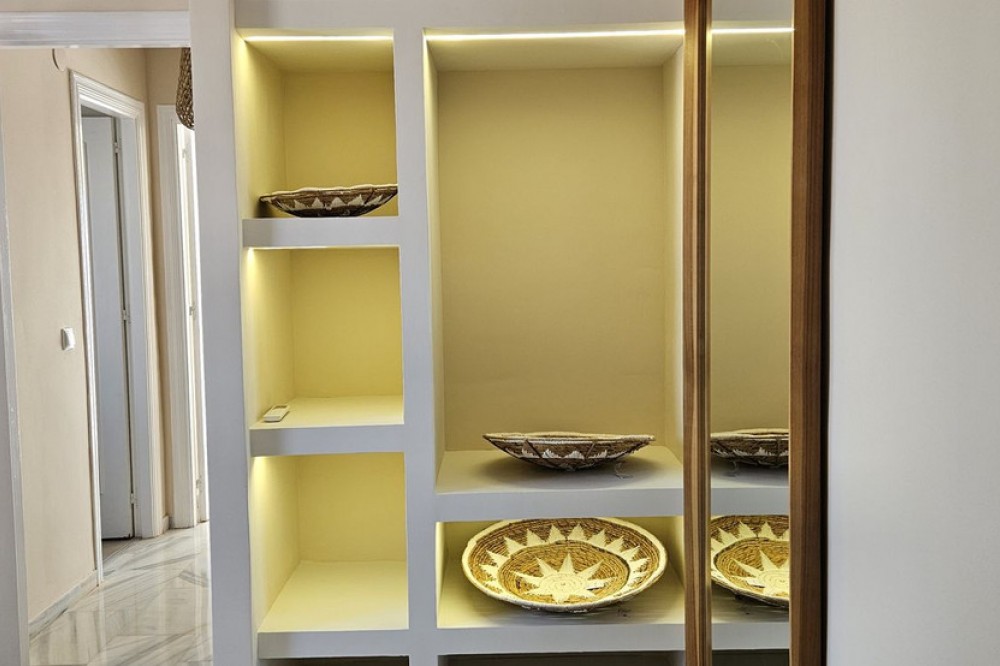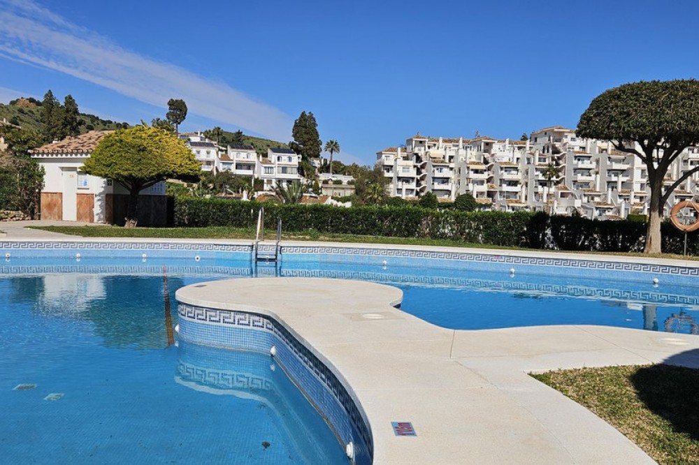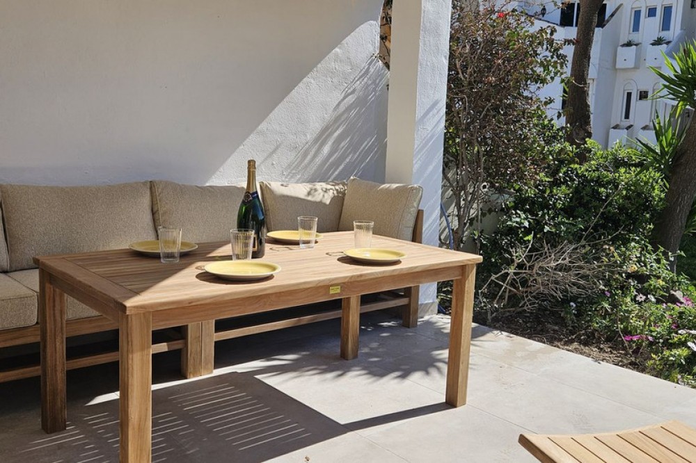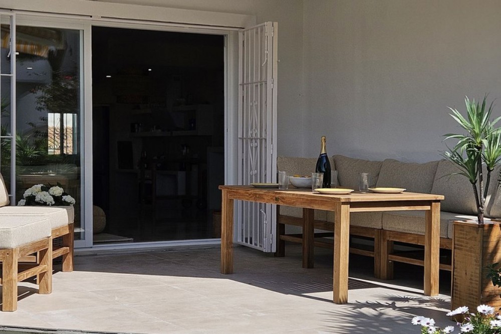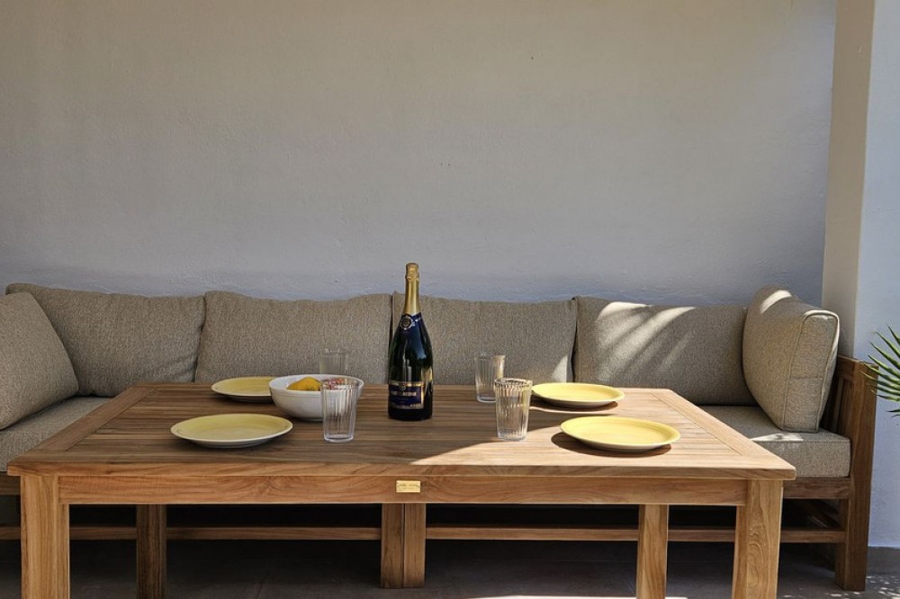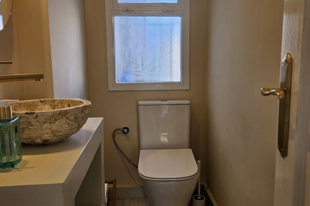 - Elegant and charmingTownhouse with Open Views in Calahonda Set within the highly sought-after urbanisation of La Cornisa, this beautifully renovated townhouse offers an effortless blend of style, tranquillity, and Mediterranean charm—surrounded by lush greenery and a lovely sense of openness. The entrance level welcomes you into a refined open-plan living space, where a newly renovated kitchen flows seamlessly into the lounge. The interior is thoughtfully curated in a sophisticated bohemian style, featuring brand-new, carefully selected furnishings—all unused—creating a fresh and inviting atmosphere. Large openings lead directly onto a charming terrace, where views of the manicured gardens are complemented by partial sea views—an ideal setting for relaxed outdoor living. A tastefully updated guest toilet completes this level. Upstairs, two serene bedrooms each open onto their own private terraces, both enjoying beautiful green views combined with partial views of the Mediterranean. Between the bedrooms, you will find a spacious, fully renovated bathroom finished to a high standard. From the master bedroom terrace, a private staircase leads to an exclusive rooftop terrace—an exceptional space designed for complete privacy, all-day sun, and a lovely open outlook. A perfect setting for quiet moments, entertaining, or simply embracing the Costa del Sol lifestyle. Ideally positioned in the heart of Calahonda, La Cornisa offers the rare combination of convenience and calm, with easy access to local restaurants, cafés, and shopping, while maintaining a distinctly peaceful ambiance. The urbanisation features expansive communal pool areas, ideal for enjoying long sunny days, social gatherings, or relaxed afternoons by the water. The property is offered fully furnished, allowing for a seamless and immediate move-in experience.