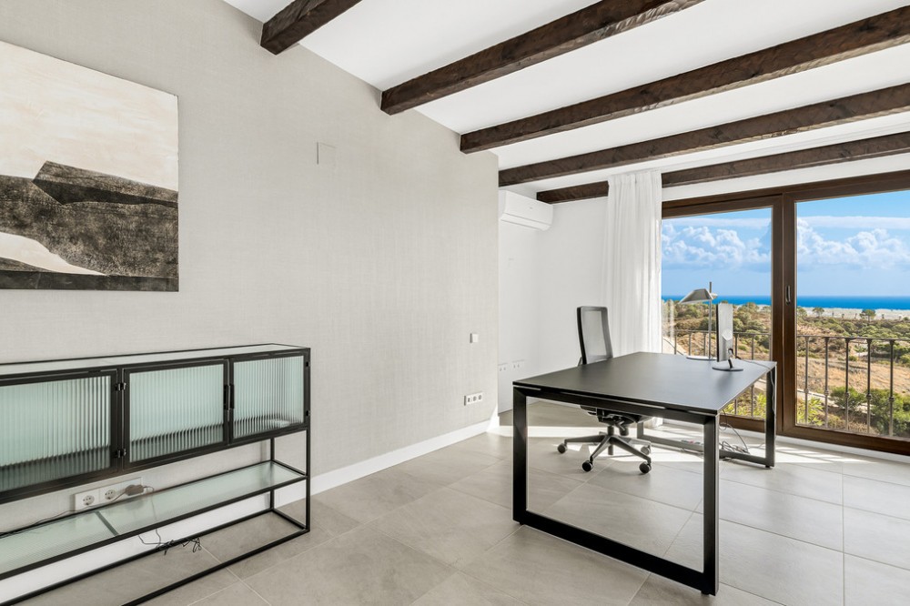 - Modern Andalusian Treasure with Breathtaking Sea and Mountain Views We are delighted to offer this exquisite modern Andalusian residence, boasting sweeping views of the sea and surrounding mountains. Set above one of Europe’s largest Safari Parks, this home blends elegance and serenity with contemporary luxury and design. Entering through grand wooden doors, you’re welcomed into a warm hallway that leads to a stylish office space, offering incredible views over the lake and coastline—an ideal work-from-home setting. The hallway flows into a spacious open-plan lounge and elevated dining area that comfortably seats 12, both enjoying panoramic vistas. The modern kitchen is fully open-plan with a generous island and plenty of seating—perfect for entertaining. Also on this floor is a charming double guest bedroom with its own ensuite, ideal for visitors or staff. Step outside onto a vast 120 m² terrace featuring an outdoor bar, fully equipped kitchen, and BBQ area, all surrounded by lush mature gardens and a private pool—again, with stunning mountain, sea, and lake views. Upstairs are two generous double bedrooms and a large family bathroom. A few steps further lead to the expansive master suite occupying nearly 120 m², complete with a luxurious bathroom, walk-in wardrobe, spacious bedroom with dual aspect views, Juliet balcony, and private sun terrace. The lower level offers a self-contained guest apartment with kitchen, bathroom, and beautiful views. Adjacent is a versatile leisure space, perfect for a home cinema, gym, spa, or creative studio. A private double garage with separate access makes it easy for guests to come and go freely. Located near a new American international school, just 15 minutes from Puerto Banús, 5 minutes from Estepona, and close to beaches and golf. This is a rare opportunity to enjoy nature, privacy, and modern luxury in one exceptional Andalusian home.