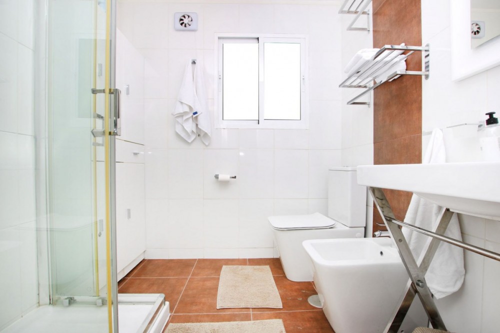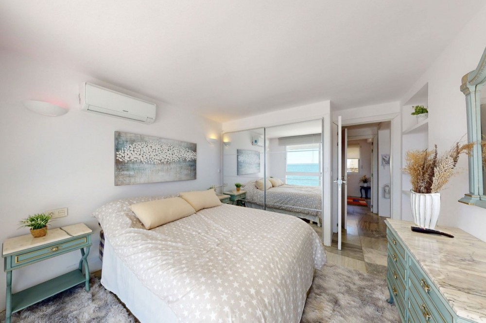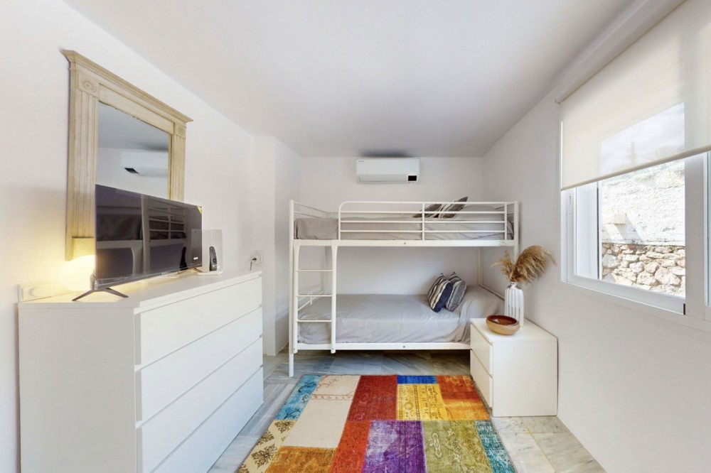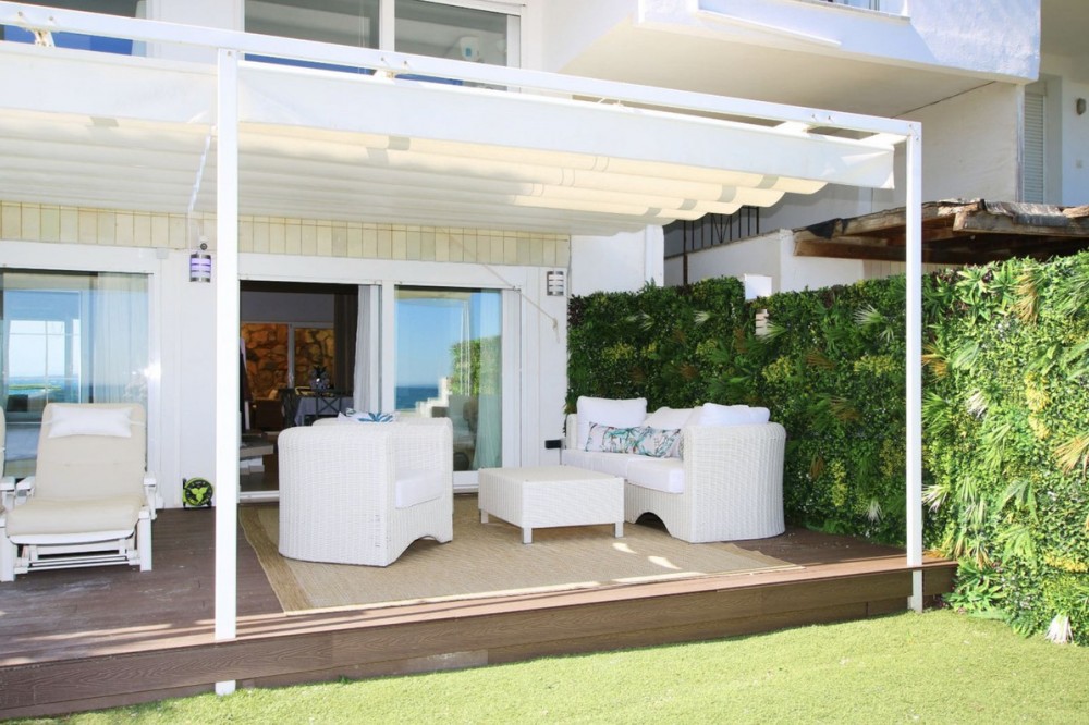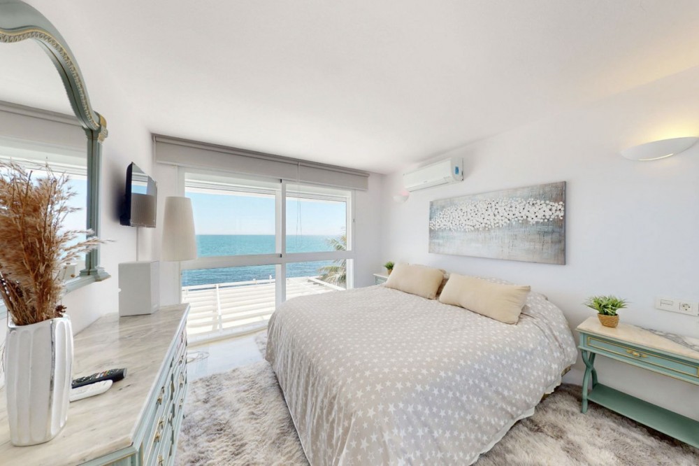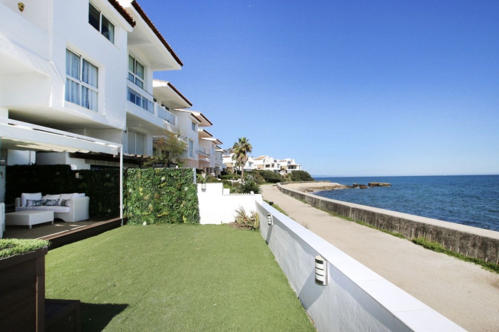 - This is a truly amazing home just a few meters from the sea. It is a one-of-a-kind property that was fully renovated in March 2025, so everything is brand new and ready for you to move in. Inside, this duplex has four bedrooms and two bathrooms spread across two floors. The main living space includes a brand-new, modern kitchen equipped with high-end appliances and the dining area is very impressive with ceilings that are five meters high, making the whole space feel bright and open. Everything has been finished with high-quality materials, like large modern floor tiles and beautiful polished marble. The outdoor spaces are perfect, one on the front garden that faces the sea and has its own private saltwatter pool and a new deck where you can relax and enjoy the view, and on the back, there is a charming private patio with a very large BBQ area, which is great for cooking and eating outside with friends. The house also has plenty of storage and a separate area for your washing machine and dryer. This is a "smart home". It has five new Samsung AC units to keep you comfortable, fast fiber-optic internet, and a new smart lock on the front door. The music System by Sonos/IKEA consists of 7 speakers controlled by Sonos app (iPad), and is included in the price. Even though this is a luxury home, it is very affordable to keep. The monthly community fees are only €150, and you also get access to five more swimming pools in the quiet residential area. You are only 10 minutes away from Estepona town and about 55 minutes from Malaga Airport. This home comes fully furnished, so you don't need to do anything but move in and enjoy living right by the Mediterranean!