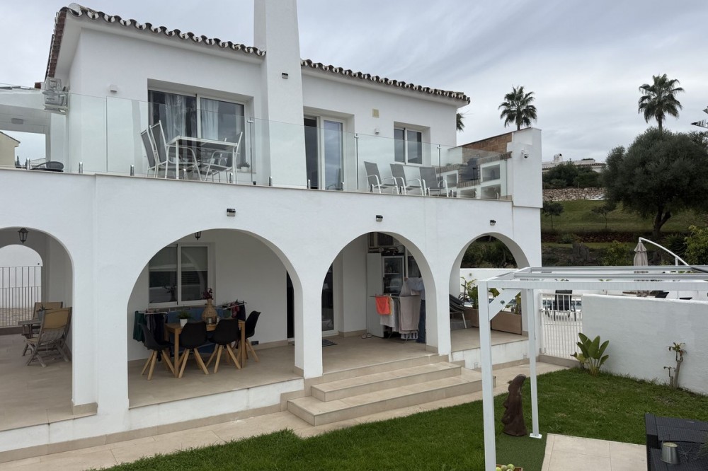 - Welcome to this newly renovated villa in the popular Cerros del Aguila! This newly renovated villa has a sunny location with one of the better locations in the Urbanization with everything from restaurants, shops and sports activities close by. The villa is divided into two completely independent floors perfectly adapted for rental with all permits in place. In the vicinity there is everything you could wish for such as hiking trails, a large city park with activities, a grocery store and restaurants. For those interested in sports, there are several golf courses, paddle facilities and beaches within easy reach. This is the optimal villa for the large family or those who want to combine an income from part of the home while having their own separate floor. Detached villa, Mijas, Costa del Sol. 5 Bedrooms, 4 Bathrooms, Size 170 m², Terrace 50 m². Wind direction: South, Southwest. Condition: Recently renovated. Pool : Communal pool, Private pool. Climate control : Air conditioning, Fireplace. View : Garden view, Pool view. Features : Covered terrace, Fitted wardrobes, Close to transport, Private terrace, WiFi, Guest apartment, En-suite bathroom, Marble floors, Close to restaurant, Fiber. Furnishing : Partly furnished. Kitchen : Fully equipped. Garden : Private, Low maintenance garden. Security : 24 hour security. Parking : Garage. Electricity, water, gas and telephone : Electricity, Drinking water, Solar panels. Category : Investment.