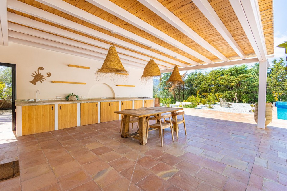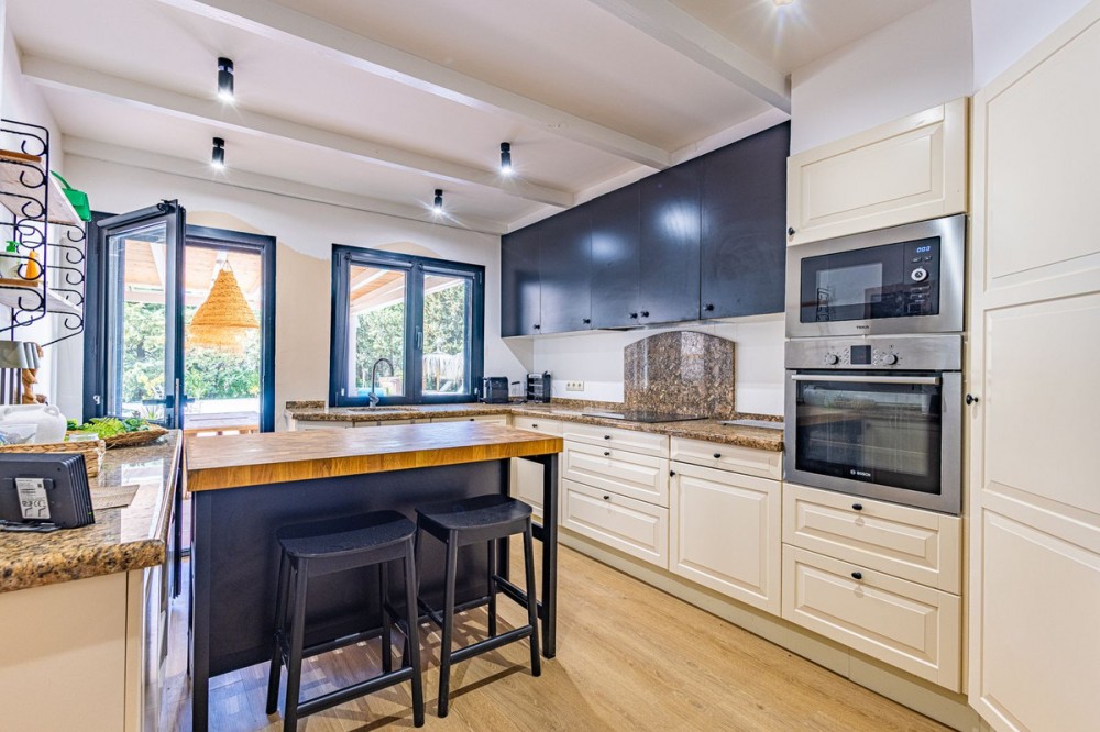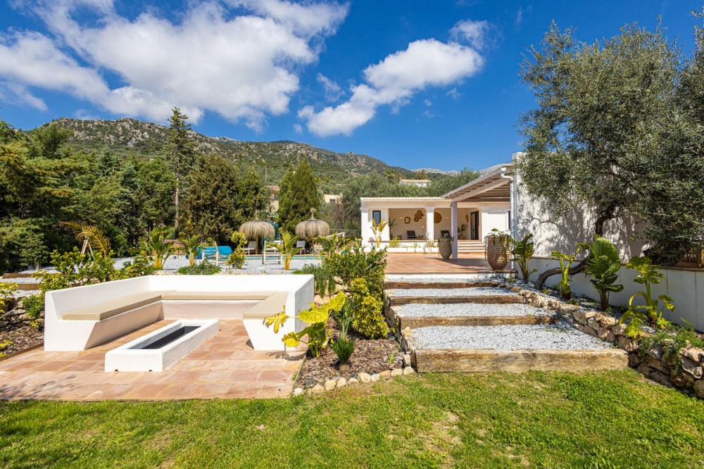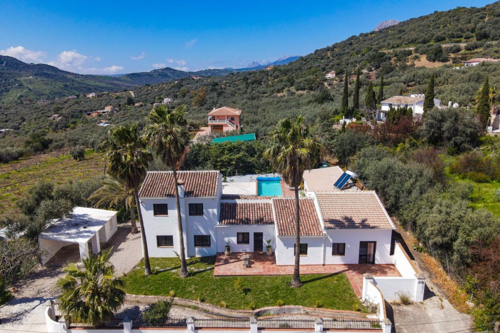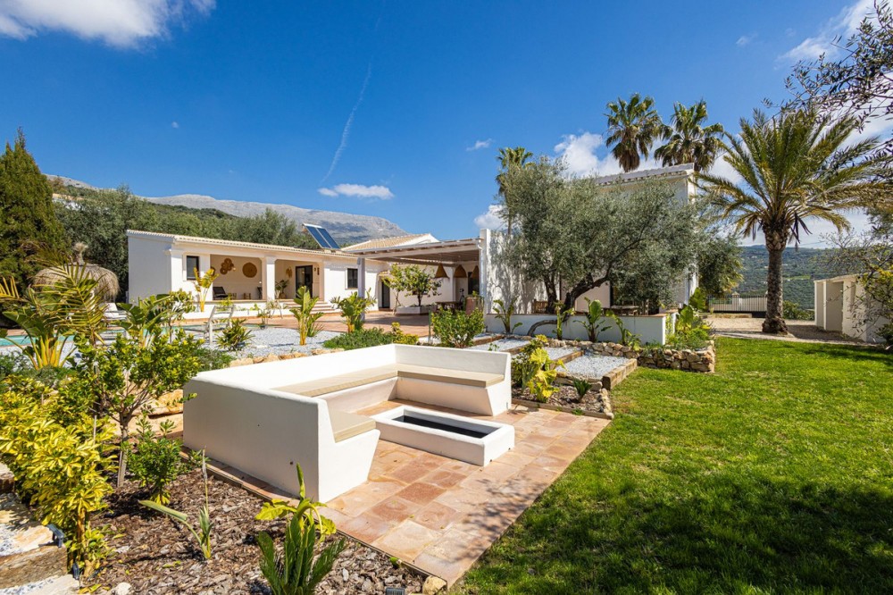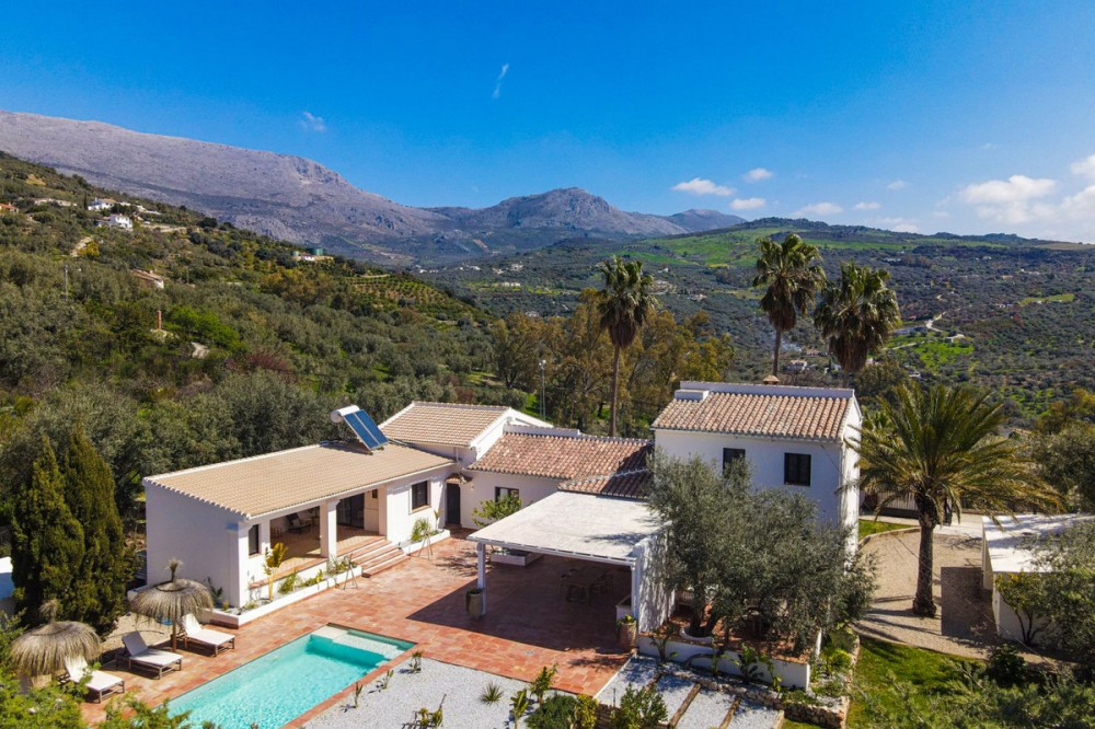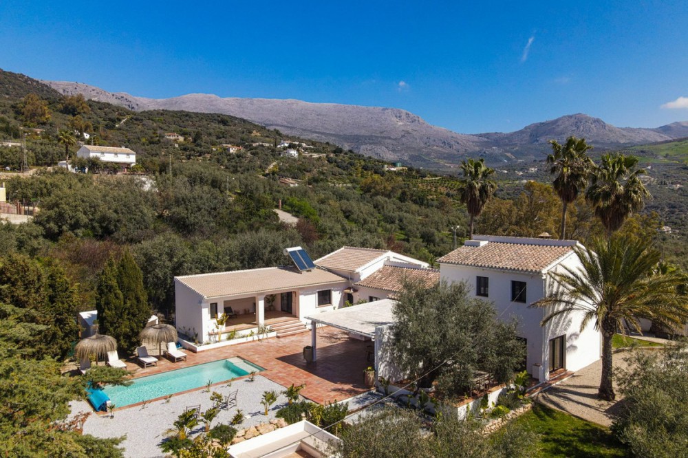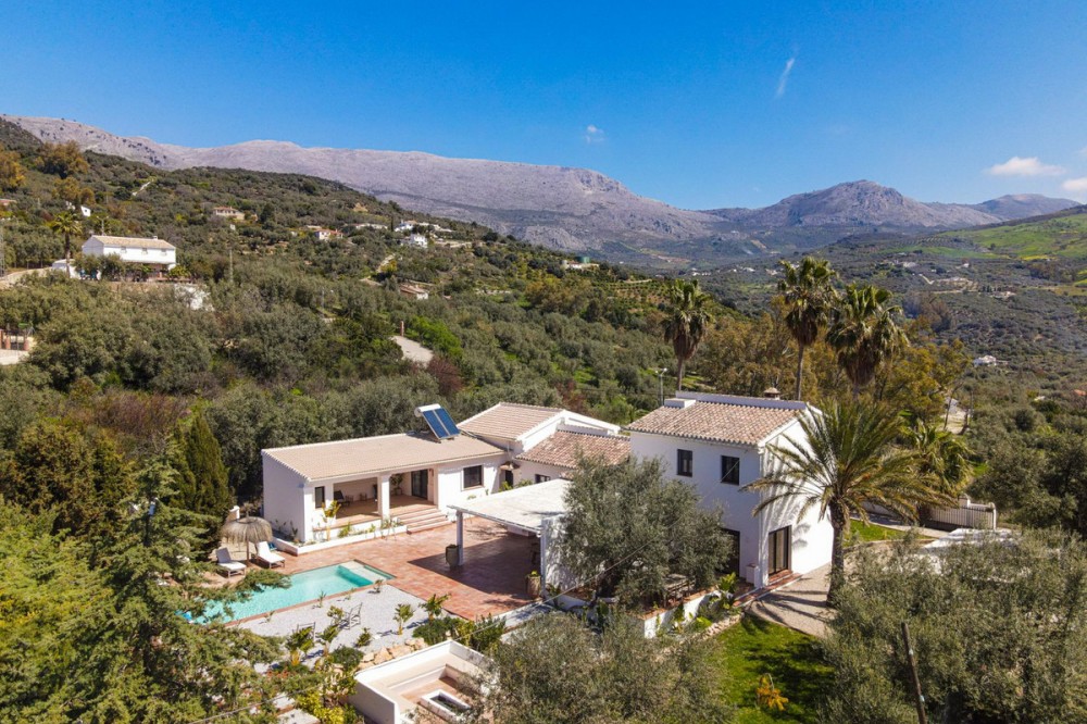 - Luxurious Cortijo with Endless Potential in the Heart of Andalusia Are you dreaming of an exclusive lifestyle in Southern Spain? This beautifully renovated estate offers the perfect balance between authentic Andalusian charm and modern luxury. Whether you are looking for a prestigious private residence, a high-end investment for holiday rentals, or a turnkey boutique B&B; this cortijo adapts to your vision. Located just 300 meters from the main road via a smooth concrete driveway, this unique property offers total tranquility. Thanks to a recent renovation with high-standard finishes, this estate is completely move-in ready and offers a rare opportunity for those seeking luxury and relaxation. Versatile Living: One Luxurious Estate, Three Possibilities The smart layout and high-quality finish make this property suitable for various purposes: Exquisite Private Residence: A grand family home where you can enjoy peace, privacy, and the Mediterranean climate in style. Boutique B&B: A ready-to-go business with separate guest rooms and a private owner's wing. The existing professional website can be taken over (subject to a small annual fee). Premium Investment: Ideal for the lucrative luxury rental market, offering guests a unique experience with high-end amenities. Private Wing: Modern Living with Privacy The entire property is designed for maximum comfort and offers complete privacy. Main house: Living Area: A spacious, modern lounge with floor-to-ceiling windows providing stunning natural light and direct access to the private terrace. Kitchen: Designed from a passion for gastronomy; the current owner is a professional chef, which is reflected in the premium finish. The kitchen features a cooking island, induction hob, and all imaginable appliances. The basement also houses an extra cool storage room. Bedrooms & Layout: A beautiful staircase leads you to the upper floor. Here you will find two spacious bedrooms, a large dressing room (which can easily be converted into an extra bedroom), and a spacious luxury bathroom with a walk-in shower. Extras: A private office for remote work or administration and a separate guest toilet on the ground floor. Guest Accommodation & Facilities In the main building: A separate lounge entrance leads to 3 bedrooms, each equipped with its own en-suite bathroom. Detached Guest Cottage: Located by the pool, this cottage features a bedroom with an en-suite bathroom. Very practical: the toilet and shower are located across from the cottage, directly accessible for pool users. It also features a lounge area with a stunning view of the garden and the pool. Outdoor Living & Wellness Pool & Wellness: Saltwater pool (10 x 4m) with an automatic cover and a wonderful jacuzzi for relaxing under the stars. Garden: A beautifully landscaped plot with mature olive trees, several cozy seating areas (including one with a stone fire pit), and a fully automated irrigation system. Lighting: The garden is beautifully illuminated with integrated spotlights, creating a unique atmosphere in the evening. Covered Outdoor Kitchen: Fully equipped with a gas stove and refrigerator, ideal for entertainment and enjoying shade during the warm summer days. Parking & Comfort: Very spacious parking area and a characterful stone carport with a charging point for electric vehicles, including a convenient locked storage space. Technical Highlights & Quality High-End Renovation: The entire cortijo has been renovated to the highest standards (high-standard finishes). Only luxury materials have been used, including completely new windows and doors with double glazing in stylish black aluminum. Climate: Individual, recent air conditioning units throughout and fly screens for optimal comfort. Water Supply: The cortijo is connected to the mains water supply and also features two large reserve water deposits of 10,000 liters each. Security: Fully fenced plot with an electric entrance gate and an installed alarm system. Top Location: Tranquility & Amenities While you live here in total peace, the charming village of Periana is only 2 km away. Here you will find everything you need: Cozy local bars and restaurants, a supermarket, pharmacy, bank, schools, and parks. Just a 10-minute drive from the well-known, stunning Lake Viñuela. The coast of Torre del Mar is 40 minutes away, and Málaga Airport is less than an hour's drive. Are you ready for a new chapter in sunny Andalusia? Contact us for more information or to schedule a viewing of this rare pearl.