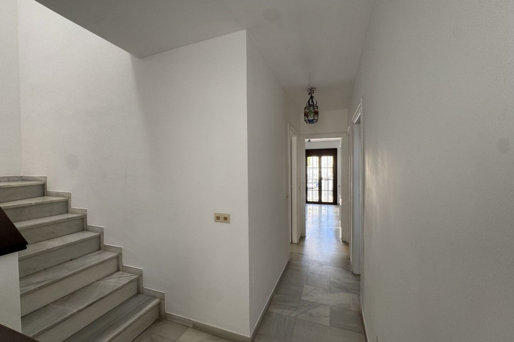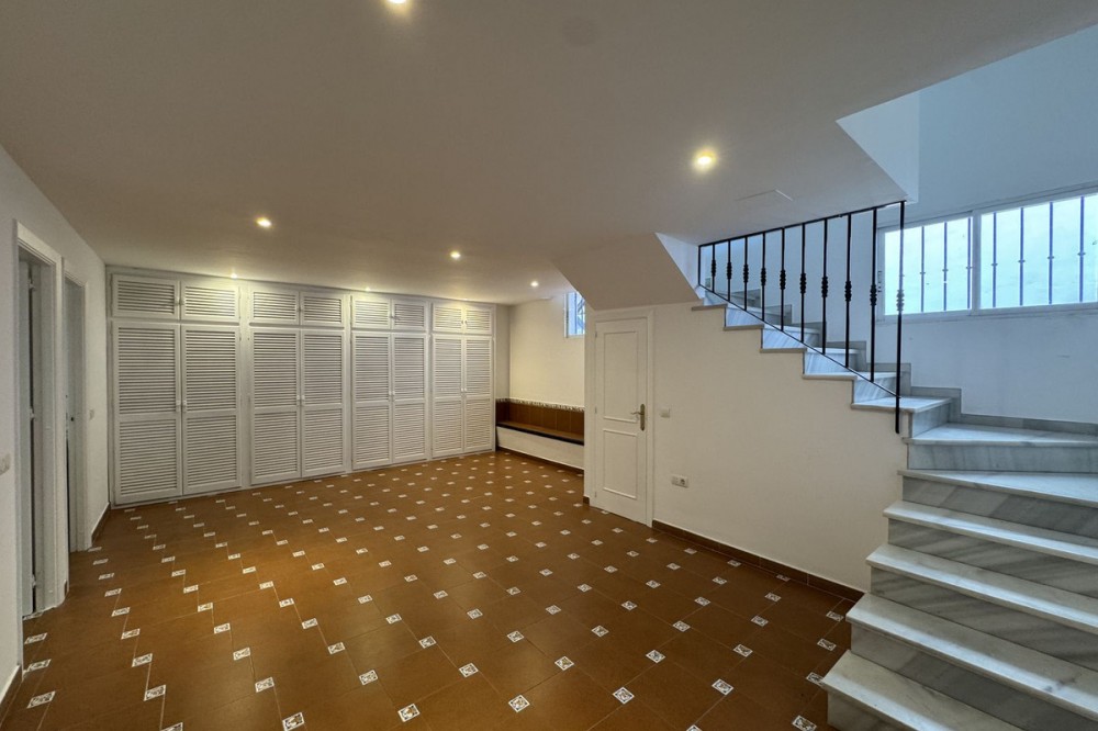 - Exclusive townhouse in Marbella with sea views and prime location Discover this magnificent townhouse located in a well-maintained private urbanization in Marbella, featuring landscaped gardens, a communal swimming pool, and a gated complex that ensures privacy and security. The property is distributed over four floors and stands out for its spaciousness, natural light, and excellent layout: The attic floor offers a cozy bedroom with a full bathroom and pleasant views of the gardens and pool. The second floor includes the master bedroom with an en-suite bathroom, two additional bedrooms, and another full bathroom, all generously sized and filled with natural light. On the main floor, you will find a bright and spacious living-dining room with a fireplace, perfect for family living, along with a large independent kitchen, also very bright, with direct access to the outdoor area. There is also a guest toilet on this floor. The semi-basement floor features three additional bedrooms, all with natural light and built-in wardrobes, as well as a practical storage space under the stairs. All bedrooms are especially spacious and bright, some with balconies and pleasant views. Outside, the property offers space for two vehicles, adding extra convenience. The home enjoys partial sea views and an unbeatable location, close to supermarkets, restaurants, bars, and schools, and just a 5-minute walk from Marbella’s old town and the beach. A unique opportunity to enjoy the Costa del Sol lifestyle.