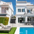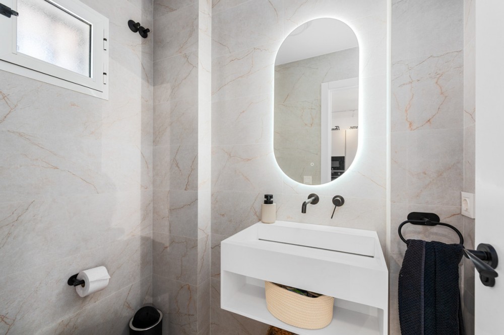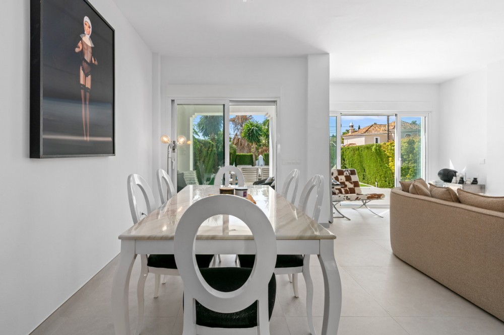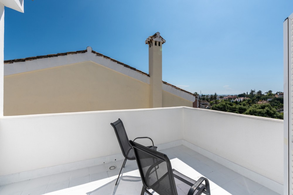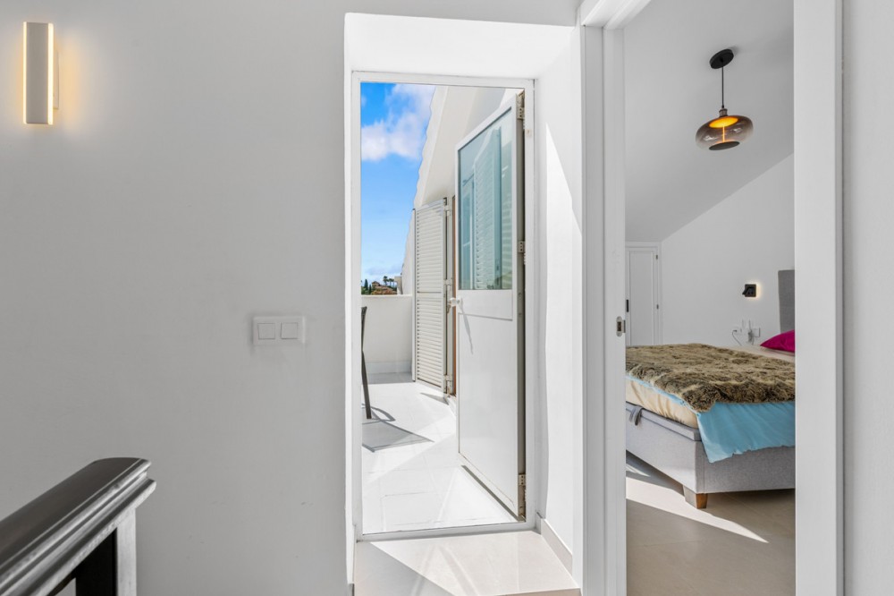 - Stunning Fully Refurbished 4-Bedroom, 3-Bathroom Villa in Bel Air Cancelada This exceptional villa has been completely renovated in 2024 and is presented to an outstanding standard, offering a seamless layout across three thoughtfully designed levels. The ground floor features an elegant entrance hall, guest cloakroom, and a charming wine bodega. A spacious, fully fitted open-plan kitchen flows effortlessly into a bright and expansive living and dining area, with double doors opening onto a generous terrace. This leads to a beautifully landscaped garden with a private swimming pool, ideal for outdoor living and entertaining. On the first floor, the property offers a luxurious master suite with en-suite bathroom, fitted wardrobes, and direct access to a private terrace. Two additional double bedrooms, both with fitted wardrobes, share a well-appointed family bathroom. The top floor hosts a further large bedroom with fitted wardrobes, an en-suite bathroom, and access to two private terraces, perfectly positioned to enjoy both morning and afternoon sun. Multiple terraces throughout the home enjoy stunning mountain views, enhancing the sense of space and tranquillity. Set within an exclusive gated community of just 13 residences, the property benefits from two private parking spaces at the front, as well as a side driveway with potential to be converted into a carport. This is an ideal opportunity for a luxurious holiday home or a stylish permanent residence. Keys are held for convenient viewings.