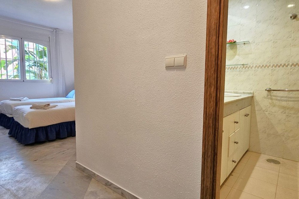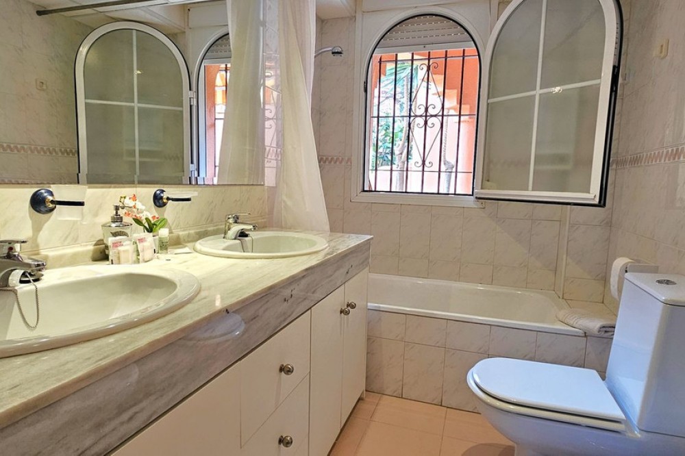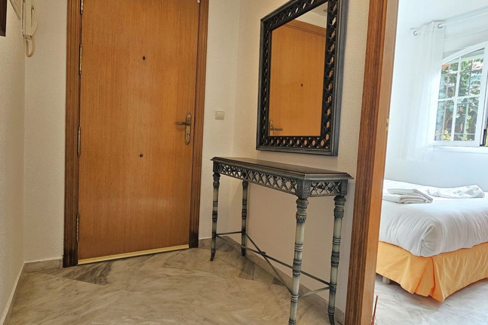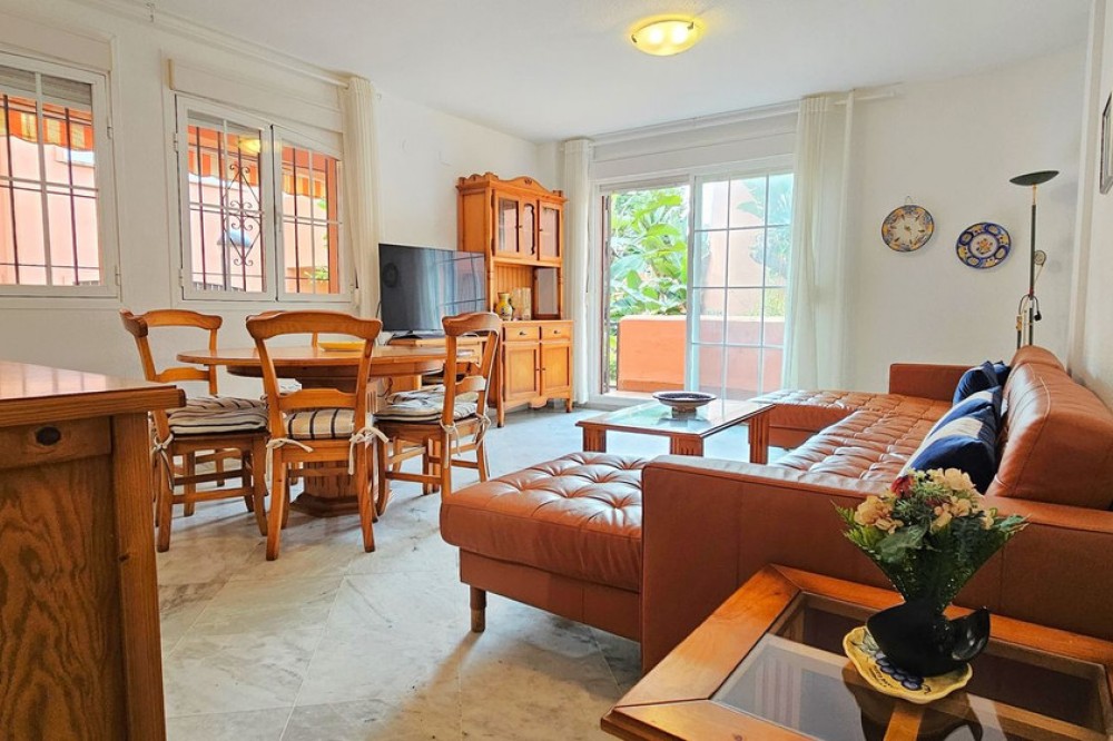 - Fantastic, spacious and bright seaside elevated ground floor corner apartment, in a beachfront residential complex, located on one of the best beaches in Marbella. It features a large, very pleasant terrace that surrounds the entire property, perfect for enjoying breakfast, lunch, or dinner while making the most of Marbella’s sunny climate. The apartment overlooks the lush, beautifully maintained tropical communal gardens. There are three exterior double bedrooms, all bright and airy, and two full bathrooms. The master bedroom is very spacious and includes an en-suite bathroom. The property also comes with a private parking space and a large, very practical storage room. The Alvarito Playa residential complex is highly sought-after due to its prime location next to some of Marbella’s finest beaches, with natural sand dunes and crystal-clear waters. It is a quiet, family-friendly, and exclusive community featuring three swimming pools and beautifully maintained tropical gardens. There is 24-hour security, direct access to the beach, two tennis courts, and a natural grass football field. It is perfect for families looking to enjoy a peaceful and privileged beachfront setting, while still having easy access to amenities such as supermarkets, restaurants, a pharmacy, schools, nurseries, a petrol station, hairdresser, car rental services, and more — including two renowned golf clubs and a clay tennis club. All of this is just 6 km from Marbella, reachable in only 5 minutes by car. An unbeatable investment opportunity thanks to its high rental potential, both for holiday and long-term residential lets. Apartment is sold with a private parking spot and a storage room included in the price.