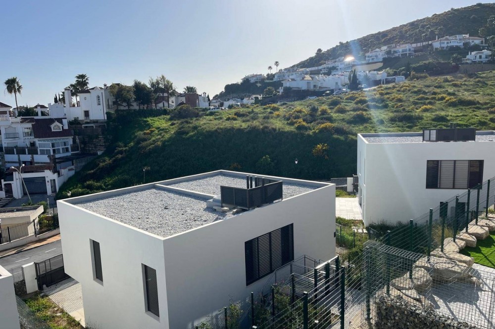 - NEWLY BUILT (2025) SEMI-DETACHED HOUSE IN REVIERA DEL SOL Newly built (2025) semi-detached house in Reviera Del Sol with a really good location. The house was completed in December 2025 and is on 2 floors and a small garden (110m2). There is a private parking space with space for 2 cars. You enter the upper floor of the house, where you have an entrance hall and a guest toilet and then you go into the kitchen and living room and from the living room you have a partial view of the sea. In extension of the living room there is a 24m2 terrace that is south facing, so with lots of sun. From the living room you go down a good large straight staircase to the lower floor, where you have a good large entrance hall with separate access to the garden, in addition there are 3 bedrooms and 2 bathrooms, one en suite. One bathroom has a bathtub and the other has a shower cabin. There is also a large closet where you have drainage and water as well as electricity for a washing machine and dryer. There is also space for a vacuum cleaner, etc. From the hallway on the ground floor there is access to the garden, where there is a smaller covered terrace of 9m2 and a garden of 110m2. You also have access to a communal pool area as well as a co-working area and gym. There is also a play area for children. The beach is approx. 2.7 km away. This house is really worth a closer look, so please contact us for a viewing.
