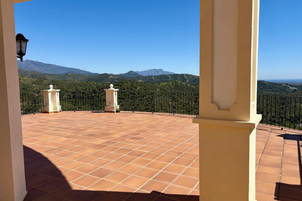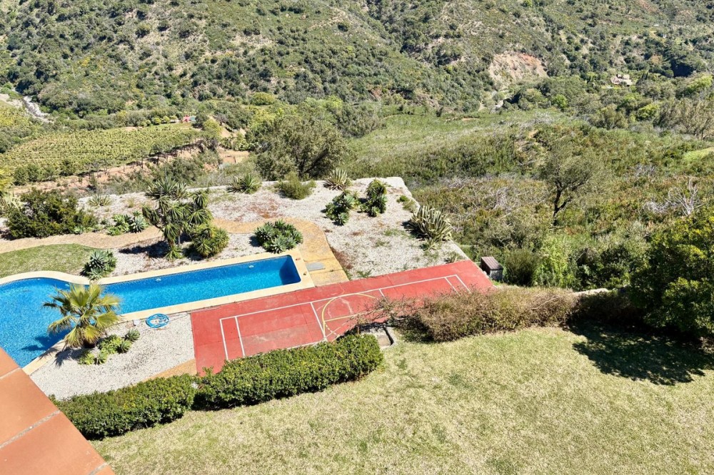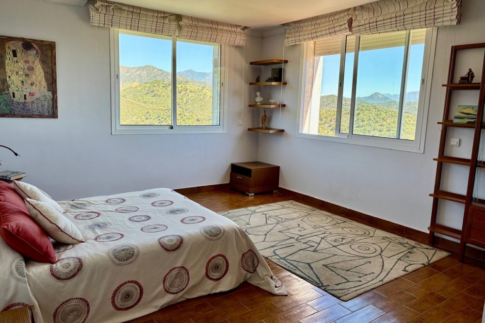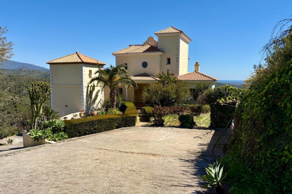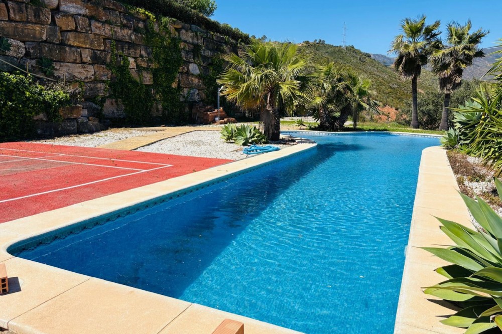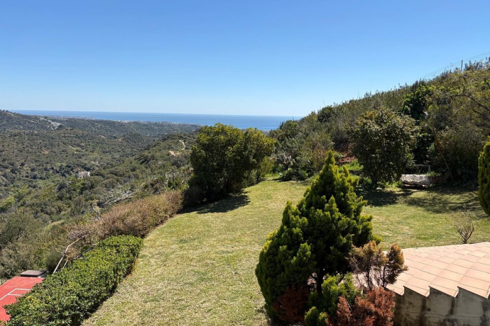 - Stunning Villa with Sea and Mountain Views in Forest Hills (Estepona) For sale: an exclusive, spacious, and bright contemporary villa located in a quiet residential area of Forest Hills, just minutes from the center of Estepona and the best beaches on the Costa del Sol. Surrounded by nature, this property offers privacy, spaciousness, and panoramic sea and mountain views. Layout The villa is distributed over three levels and also includes a separate guest apartment. Main Floor: • Spacious living room with fireplace and direct access to a terrace with breathtaking views. • Separate dining room and fully equipped kitchen. • Guest toilet, office, and bedroom with en-suite bathroom. Lower Floor: • Two storage rooms. • Three bedrooms, a full bathroom, and a large games room or cinema room with access to the terrace and private garden. • Direct access to the garage. • Stairs leading to an additional lower level, ideal for creating a living area, gym, or leisure space. Upper floor: • Master bedroom with dressing room, en-suite bathroom, and private terrace with open views. • From this terrace, you can access the rooftop solarium, which offers 360° views of the sea, mountains, and natural surroundings. Guest apartment: A cozy space with a living room, bedroom, and bathroom, perfect for guests or staff. Exterior • Mature and beautifully maintained garden with abundant vegetation and an avocado tree. • Private swimming pool and paddle tennis court. • South-facing, guaranteeing sun and light throughout the day. Extras • Underfloor heating. • Cinema and games room. • Large plot of 60,000 m². Location Situated in the exclusive Forest Hills area, just a 10-minute drive from the center of Estepona and the beach. A very quiet area, with easy access to the highway and surrounded by nature, ideal for those seeking space, privacy, and stunning views, without sacrificing proximity to all amenities.
