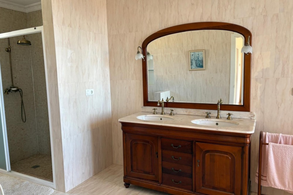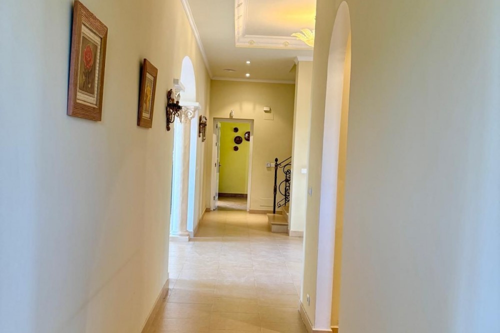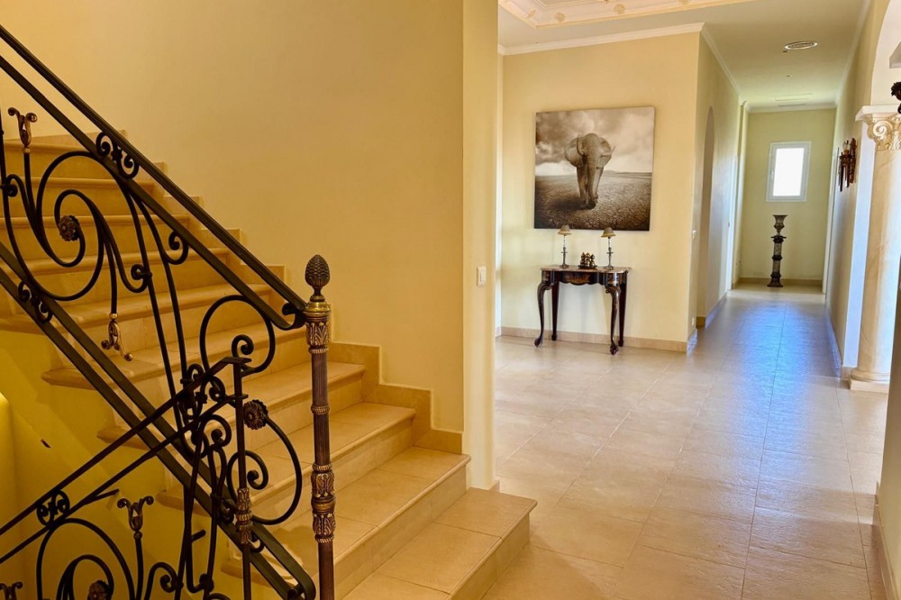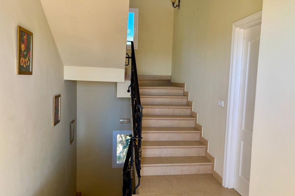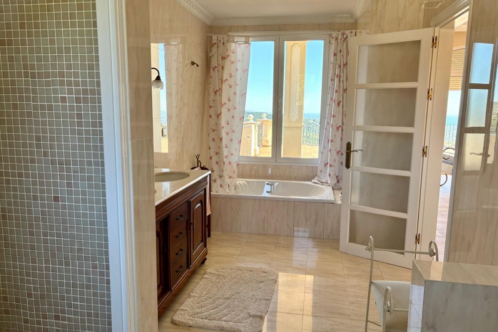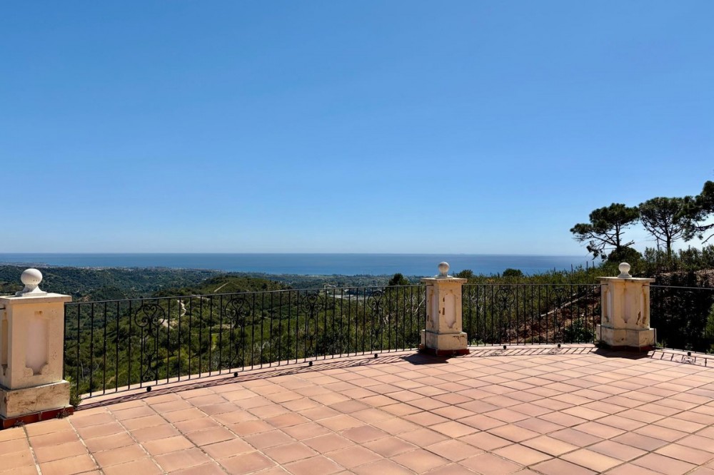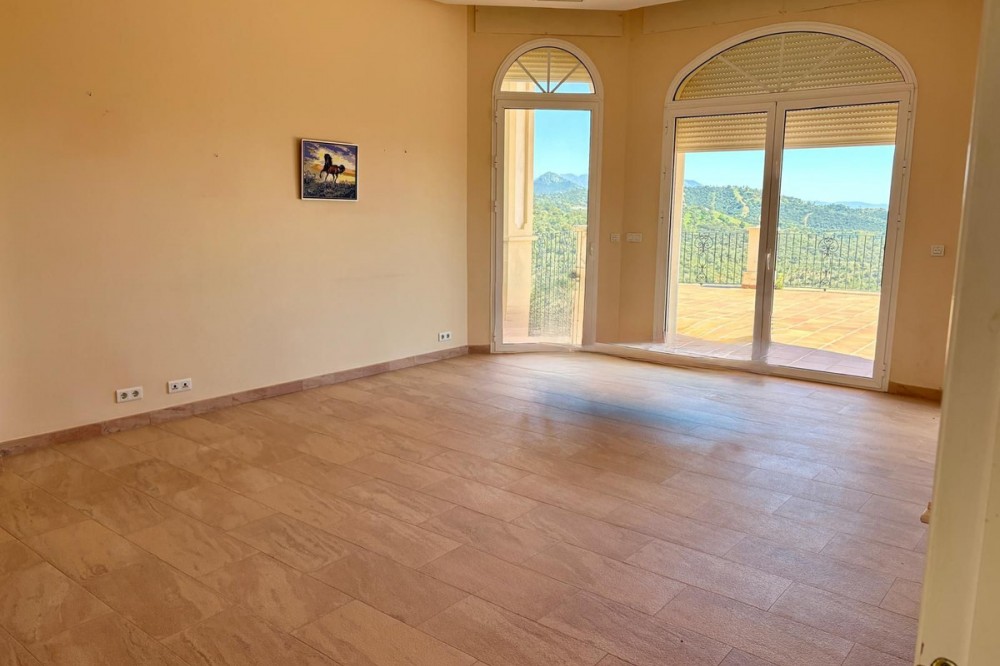 - Stunning Villa with Sea and Mountain Views in Forest Hills (Estepona) For sale: an exclusive, spacious, and bright contemporary villa located in a quiet residential area of Forest Hills, just minutes from the center of Estepona and the best beaches on the Costa del Sol. Surrounded by nature, this property offers privacy, spaciousness, and panoramic sea and mountain views. Layout The villa is distributed over three levels and also includes a separate guest apartment. Main Floor: • Spacious living room with fireplace and direct access to a terrace with breathtaking views. • Separate dining room and fully equipped kitchen. • Guest toilet, office, and bedroom with en-suite bathroom. Lower Floor: • Two storage rooms. • Three bedrooms, a full bathroom, and a large games room or cinema room with access to the terrace and private garden. • Direct access to the garage. • Stairs leading to an additional lower level, ideal for creating a living area, gym, or leisure space. Upper floor: • Master bedroom with dressing room, en-suite bathroom, and private terrace with open views. • From this terrace, you can access the rooftop solarium, which offers 360° views of the sea, mountains, and natural surroundings. Guest apartment: A cozy space with a living room, bedroom, and bathroom, perfect for guests or staff. Exterior • Mature and beautifully maintained garden with abundant vegetation and an avocado tree. • Private swimming pool and paddle tennis court. • South-facing, guaranteeing sun and light throughout the day. Extras • Underfloor heating. • Cinema and games room. • Large plot of 60,000 m². Location Situated in the exclusive Forest Hills area, just a 10-minute drive from the center of Estepona and the beach. A very quiet area, with easy access to the highway and surrounded by nature, ideal for those seeking space, privacy, and stunning views, without sacrificing proximity to all amenities.