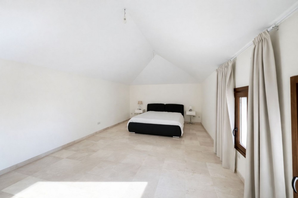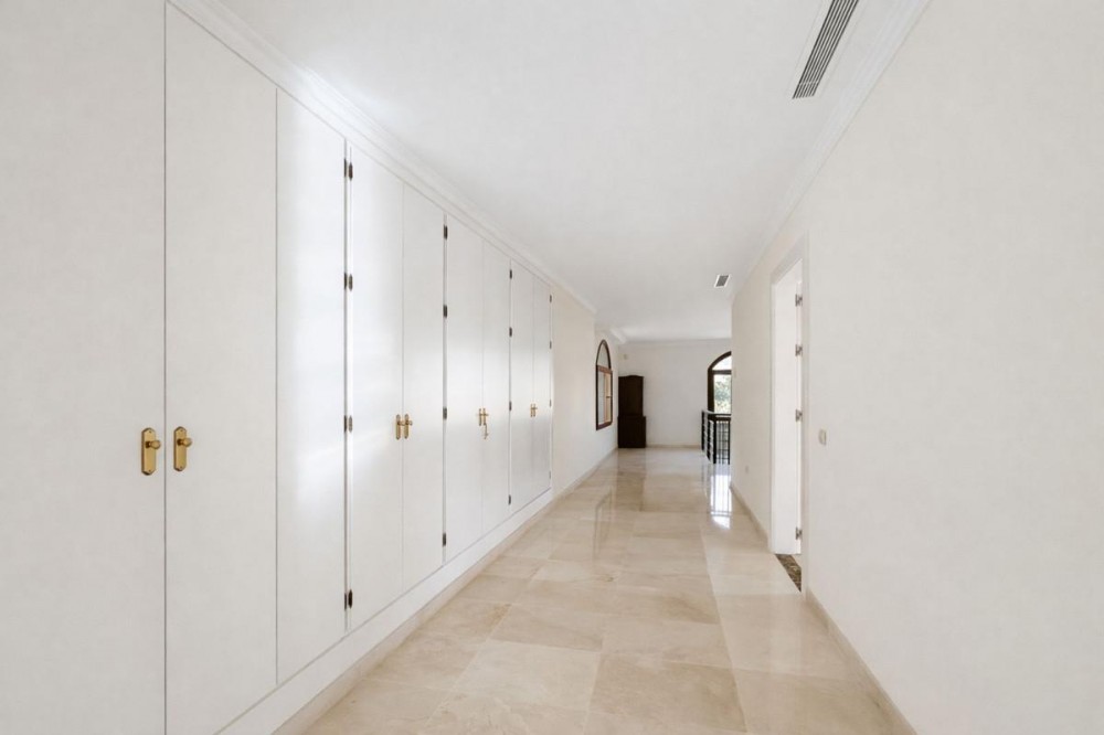 - EXCLUSIVE LISTING! SUPER OFFER! THE BANK ESTIMATES THE VILLA HAS A VALUE OF €4,600, 000, THE OWNER WANTS TO SELL IT QUICKLY AND THEREFORE THE LAST MINUTE OFFER IS ONLY €3,495, 000 This villa is located in the El Paraiso urbanization, approximately 18 km west of Marbella, near the El Paraiso Golf Club. On the ground floor, upon entering, you will find a staircase leading to the first floor and another leading to the semi-basement. On this floor there are 4 bedrooms, two of which share a bathroom and terrace. On the first floor there is another bedroom with a window, and on the other side of the hallway is the master suite with its private south-facing terrace, with sea views. The semi-basement is the main living area, located at garden level, with French doors on the left leading outside. Next to it is the dining kitchen, as well as a separate space that could be used as staff accommodation. This space can also be accessed from the semi-basement, which has its own independent entrance. The electrical room is also on this floor. The semi-basement has parking for at least three large cars, as well as the machine room and water tanks. This property is undergoing a major renovation and there are plans to change the layout of the 4-level house.