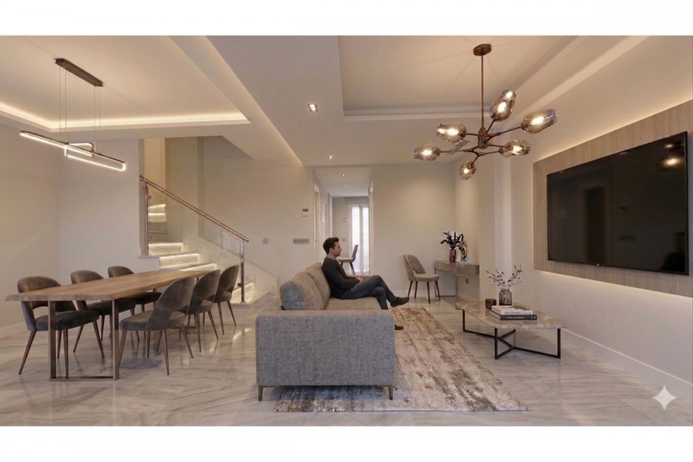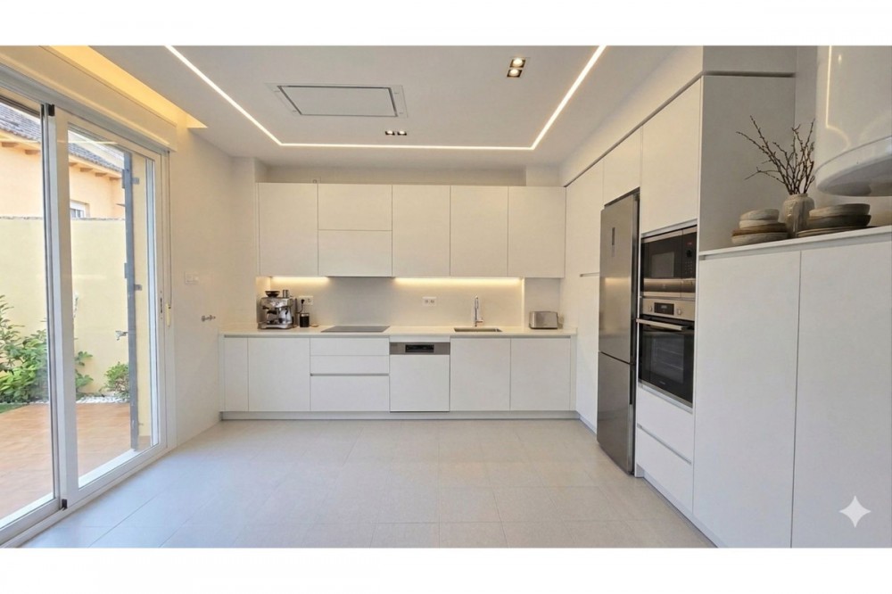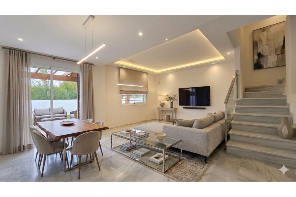 - CALAHONDA, MIJAS Great opportunity to acquire one (or more) of the 6 properties available for sale (most are adjoining, making them ideal for large families) in this small development of townhouses in the commercial area of Calahonda, within walking distance of shops and the beach. Strategically located between Marbella and Fuengirola, with excellent access to the A-7 motorway. Just a 10-minute walk to the beach and right next to the Los Olivos Shopping Centre, where you will find supermarkets, restaurants, a pharmacy, and shops. The homes are part of a quiet, private development offering a communal swimming pool, landscaped gardens, and a communal elevator from the lower level of the parking area to the communal areas, providing easy access to the homes. Each property includes two private underground parking spaces. These properties represent an excellent renovation opportunity, ideal for both designing a custom home and investing in a highly sought-after area of the Costa del Sol. The photos with furniture are AI-generated to give an idea of the possibilities these properties offer. The homes are built on four levels: Basement - Private garage with space for two vehicles and direct access to the house. Spacious 33 m² room with en-suite bathroom, high ceilings, and natural ventilation, perfect as a gym, playroom, office, or additional bedroom. Main Floor- Large living-dining room with direct access to the outside. Covered terrace of approximately 15 m². Private garden of approximately 20 m², perfect for enjoying the outdoors. Separate kitchen. Laundry room. Guest toilet. First Floor- Two guest bedrooms, master bedroom with en-suite bathroom and dressing area, shared full bathroom. Top floor – Total area approximately 20 m²: 12 m² room ideal as a bedroom, office, or studio. 8 m² solarium with sea views. Overall, a property with great potential, perfect as a primary residence, second home, or investment project near the sea. Legal information: In accordance with Decree 218/2005 of October 11, please note that notary fees, registration fees, property transfer tax (ITP), and other expenses related to the sale are not included in the price. The information provided is for guidance only, is not legally binding, and has no contractual validity.