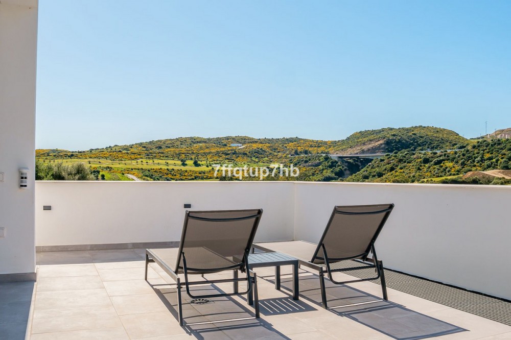 - New villa in Valle Romano, Estepona We are pleased to present this elegant, contemporary-style villa situated on the golf course, in one of the quietest and most sought-after areas of Estepona. The property sits on a 553 m² plot and offers 219 m² of floor space, laid out in a comfortable and functional manner. It features 3 bedrooms, all with en-suite bathrooms, as well as a guest bathroom. The master bedroom boasts a spacious walk-in wardrobe, adding that extra touch of comfort. The heart of the home is its bright living-dining room with a modern open-plan kitchen, which opens directly onto a pleasant terrace and private garden, perfect for enjoying the natural surroundings and the Costa del Sol climate. The villa also includes a heated swimming pool and a cinema area, ideal for both relaxation and leisure. Key features include parking for two cars and a unique design, built to the highest standards and designed to offer year-round comfort. An ideal opportunity for those seeking privacy, design and a prime location next to the golf course.