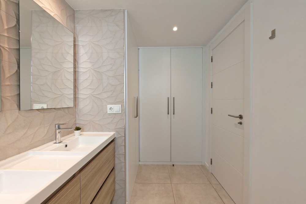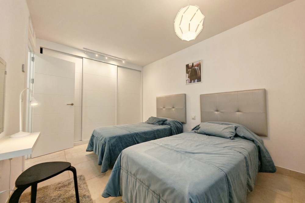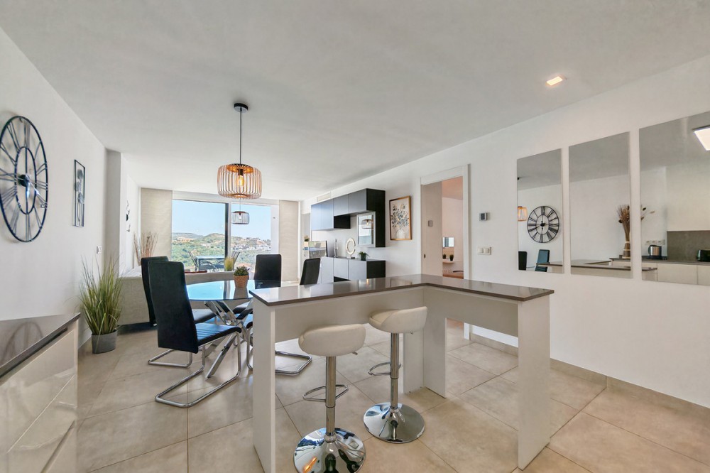 - Apartment for sale in , Mijas Costa with 3 bedrooms, 2 bathrooms, 1 on suite bathroom and with orientation south/east, with communal swimming pool, private garage (1 parking spaces) and communal garden. Regarding property dimensions, it has 112.15 m² built, 97.43 m² interior and 21.61 m² terrace. Has the following facilities transport near, air conditioning, fully fitted kitchen, jacuzzi, sauna, guest room, storage room, gym, solarium, double glazing, video entrance, security service 24h, guest toilet, private terrace, kitchen equipped, living room, sea view, mountain view, golf view, indoor pool, heated pool, automatic irrigation system, security shutters, internet - wi-fi, covered terrace, 24h service, electric blinds, fitted wardrobes, gated community, lift, panoramic view, tennis / paddle court, doorman, underfloor heating (bathrooms), close to children playground, close to sea / beach, close to golf, uncovered terrace, glass doors, open plan kitchen, balcony, optional furniture, spa, wheelchair-accessible, excellent condition, close to shops, close to town, close to schools and pets allowed.