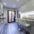 - This is a fantastic 3-bedroom, 2.5-bathroom ground floor apartment located in Hacienda del Sol, one of the most sought-after beachside urbanisations on the Costa del Sol. The community offers excellent facilities including five swimming pools, an indoor gym, sauna, padel courts, and 24-hour gated security, along with underground parking and a private storage room. The property itself was originally built in 2005 and renovated three years ago, now presented in very good condition with quality fixtures and fittings throughout, being sold fully furnished. One of the standout features is the layout. Upon entering, there is a guest toilet, which is not commonly found in this urbanisation. The fully renovated kitchen found to your right as you enter is modern and well-equipped, with access to a large rear terrace and separate utility area. The main living space is bright and spacious, combining a dining and lounge area with modern finishes and integrated lighting. This leads out to a large south-facing terrace, perfect for outdoor dining and relaxation. From here, you step directly onto a very private communal garden area that feels almost like your own, and is conveniently located close to one of the 5 pools. In addition, the property benefits from a second, north-facing terrace, providing further outdoor space and flexibility. There are three well-proportioned bedrooms. The master bedroom includes an en-suite bathroom and walk-in wardrobe, while the second and third bedrooms both have built-in cupboards and share a spacious family bathroom with bath and shower. The apartment is filled with natural light throughout and offers a comfortable and practical layout, making it ideal as a holiday home or rental investment. The location is excellent, just 150 metres from the beach, with a selection of beach bars, restaurants, and shops within easy walking distance. A great opportunity in a well-established and highly regarded community.