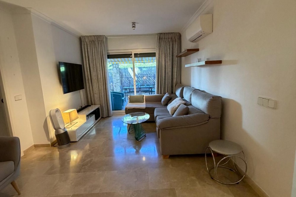 - Exclusive ground-floor apartment on Marbella’s Golden Mile Situated in the prestigious Las Lomas development of the Marbella Club, this elegant ground-floor apartment is located in one of Marbella’s most sought-after areas, just 2 km from Puerto Banús and the renowned Puente Romano beach. Its prime location, a mere 500 metres from Epic by Fendi and Design Hills — where Dolce & Gabbana’s new luxury developments are taking shape — makes it an excellent investment opportunity. The property forms part of a high-end residential complex, notable for its tranquillity, 24-hour security and concierge service (from 8:00 am to midnight, and 24 hours a day during the summer months). The development features well-maintained tropical gardens and attractive communal swimming pools. The apartment features a cosy entrance hall leading to a modern, fully fitted kitchen with top-of-the-range appliances (Bosch and Smeg). The spacious and bright living-dining room provides an ideal space for relaxation and socialising. It comprises two bedrooms with fitted wardrobes and two full bathrooms, one of which is en suite. The property is complemented by a magnificent 44 m² terrace, with direct access from the kitchen, living room and both bedrooms, perfect for enjoying the Mediterranean climate. It is sold fully furnished and equipped, ready to move into. Key features include: Daikin inverter air conditioning throughout the property Translated with DeepL.com (free version)