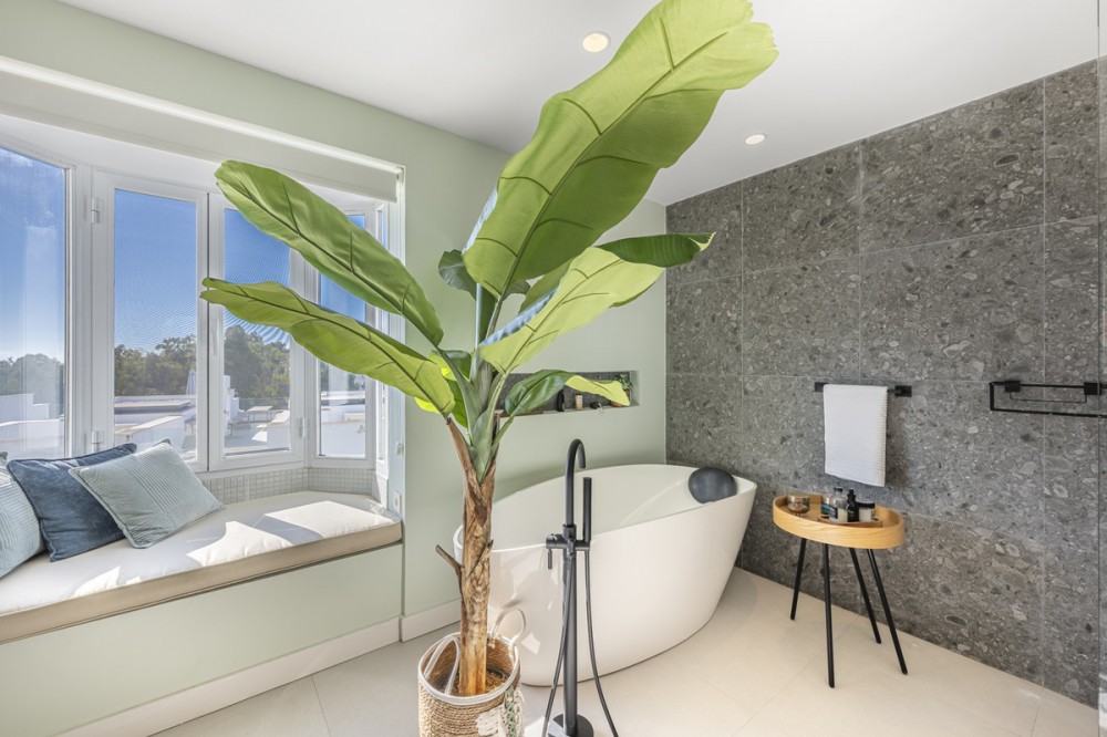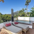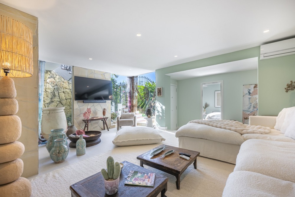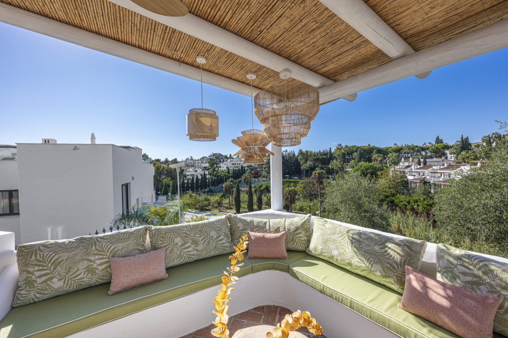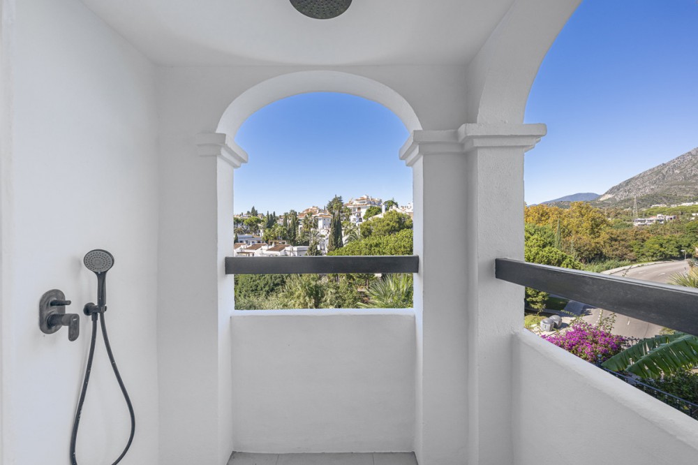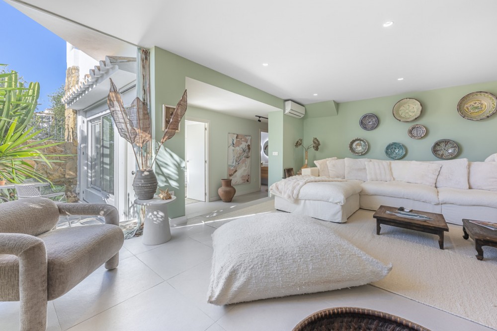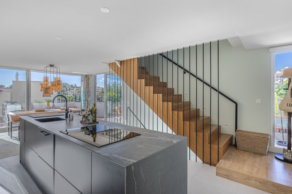 - Situated in the sought after urbanisation of Arco Iris in Altos de Puente Romano, this exceptional townhouse offers a rare opportunity to own one of the most spacious homes within the community. Set in the heart of Marbella Golden Mile, just a short walk from the renowned Puente Romano Resort, the beach promenade, and the dining venues at Forum Marbella, its prime location provides convenience, prestige, and a refined Mediterranean lifestyle. Presented in immaculate condition, the property spans an impressive 250 square metres of interior space, featuring a contemporary design defined by comfort, natural light, and generous proportions. The main living area offers a large open plan kitchen and dining space that flows seamlessly to the outdoor terrace and private pool, creating an ideal setting for both relaxation and entertaining throughout the year. The home comprises four bedrooms and three bathrooms, including two en suite, along with a guest toilet. Each space has been carefully designed to ensure privacy and a calm living environment. A distinctive feature of the property is the private spa area, complete with sauna and jacuzzi, offering a dedicated wellness space within the residence. The property enjoys open views from every level, with the iconic La Concha forming a striking natural backdrop, while the upper floors benefit from sea views extending across the coastline. Additional features include private parking for two vehicles and a large storage room, enhancing practicality for both permanent living and holiday use. Combining contemporary design, a prime location, open views, and amenities such as a private pool and spa, this townhouse represents a compelling opportunity within one of Marbella’s most prestigious residential areas. Christie’s Insight: From our expert Sten Goosen, the property is distinguished by its rare combination of scale, positioning, and lifestyle amenities within a well established enclave on the Golden Mile. The generous interior proportions, together with private wellness facilities and outdoor living spaces, position the residence as a rare offering in this segment of the market, appealing to both end users and investors seeking long term value in a prime coastal setting.