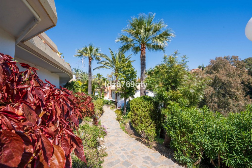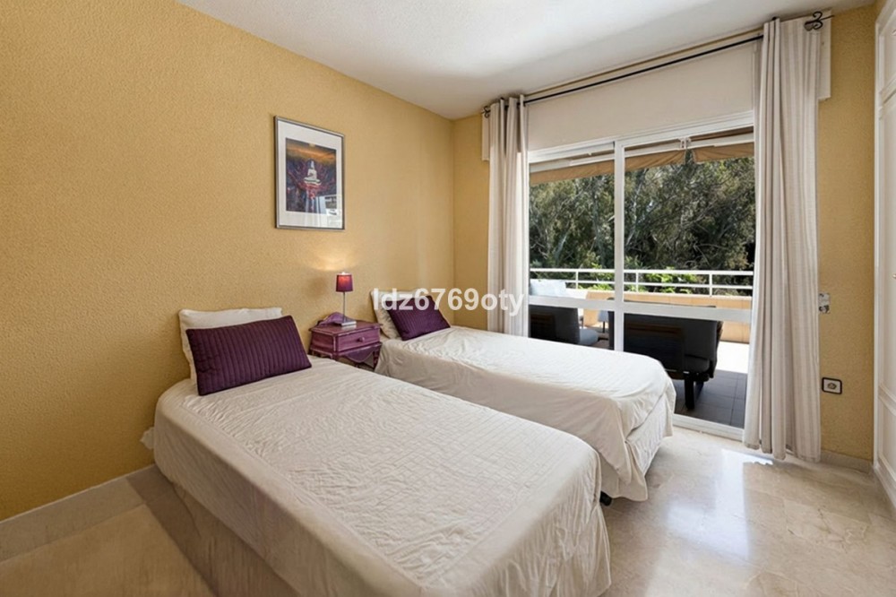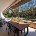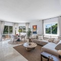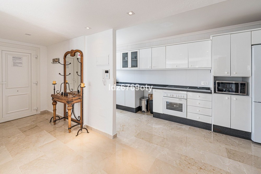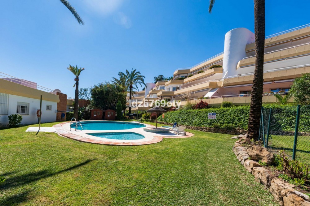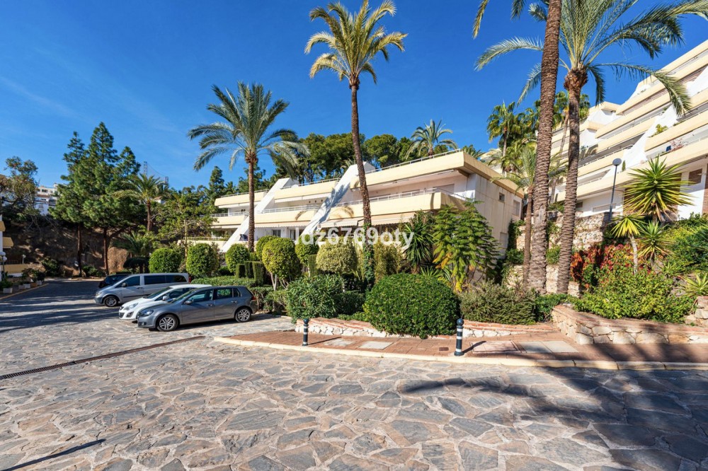 - A spacious and very well-maintained luxury apartment in a prime location next to the popular Torrequebrada Golf Course in Benalmádena Costa! This spacious and light-filled corner apartment is situated in the beautifully maintained small-scale ‘Palmeras del Golf’ urbanisation, featuring numerous palm trees and gardens and boasting two swimming pools. The 3-bedroom apartment features a large master bedroom with an en-suite bathroom with double sinks and built-in cupboards, a bath and a toilet. The other two spacious bedrooms share a second bathroom, which also features double sinks and built-in cupboards, a large walk-in shower and a toilet. All bedrooms are fitted with spacious built-in wardrobes and air conditioning units for both cooling and heating. The spacious and light-filled living room has large windows, is fitted with a fibre-optic connection and connects to a semi-open-plan kitchen with various built-in appliances. From the living room and all bedrooms you have direct access to the large outdoor terrace of approximately 65 m², which offers ample space for a seating area for six people and sun loungers. The terrace faces south/east,offering ample opportunity to enjoy the sun or the sweeping views over the golf course and the surrounding area. Both the living room and the three bedrooms are fitted with roller shutters. From the so-called ‘garden apartment’, a staircase leads to the car park with a dedicated parking space. The property is being sold partially furnished. This luxury apartment is situated in the popular Torrequebrada neighbourhood, within walking distance of the beach, a supermarket and various restaurants. Benalmádena’s popular marina, ‘Puerto Marina’, with its many restaurants and entertainment options, is a 10-minute drive away. Málaga Airport is 15 km away and Marbella 35 km. A unique, quietly situated (family) home with a very spacious outdoor terrace to enjoy the sun, sea, beach, golf and relaxation to the full! Book your viewing now!