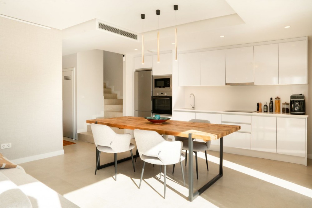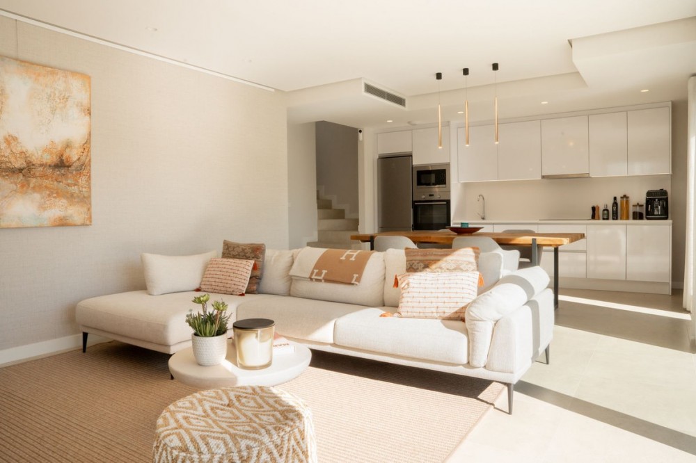- This duplex penthouse is located within the contemporary Ágora development in Altos de la Resina, Estepona, an area that is quietly gaining a lot of attention for its space, views and proximity to everything. The apartment is distributed over two levels and immediately feels bright and open. The main living area flows naturally into a spacious terrace through large sliding doors, which makes the entire space feel bigger and more connected to the outdoors. It’s the kind of layout that works just as well for everyday living as it does for hosting. There are three comfortable bedrooms and three bathrooms, which gives a lot of flexibility whether you’re using it as a main residence or a second home. Upstairs, the private solarium really completes the property. It’s a space where you can fully enjoy the climate here, whether that’s relaxing during the day or having dinner in the evening with complete privacy. With around 120 m² built and close to 92 m² of outdoor space, there is a very nice balance between interior comfort and outdoor living, which is exactly what most buyers are looking for in this area. The property is sold fully furnished, so it’s ready to move into straight away without needing to think about anything else. It also includes underground parking, a storage room and benefits from a modern, energy efficient construction. Overall, this is a very complete penthouse in a growing area of Estepona, offering both tranquillity and easy access to golf, beaches and all daily amenities.